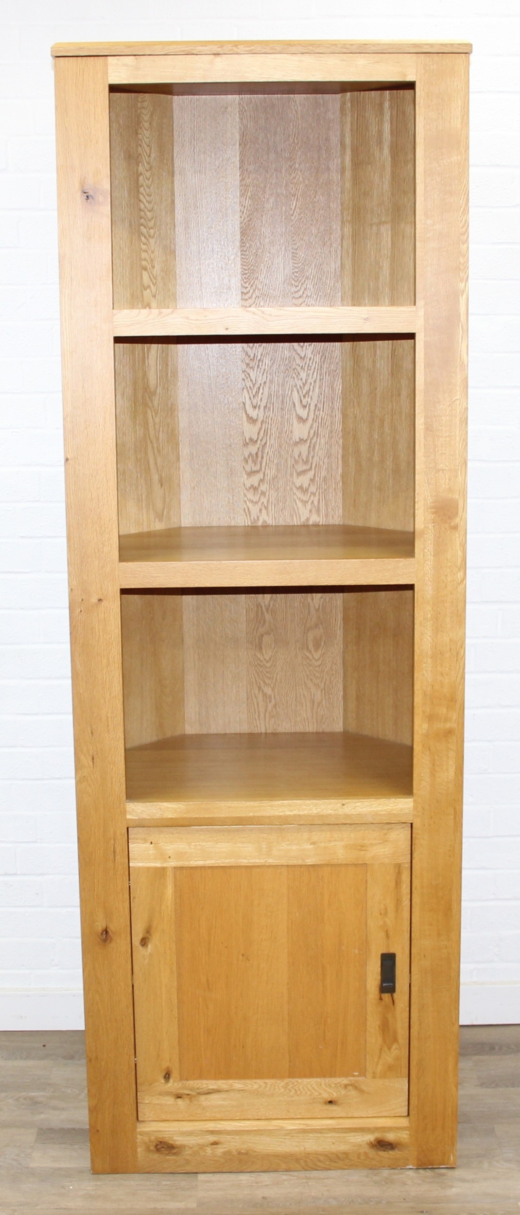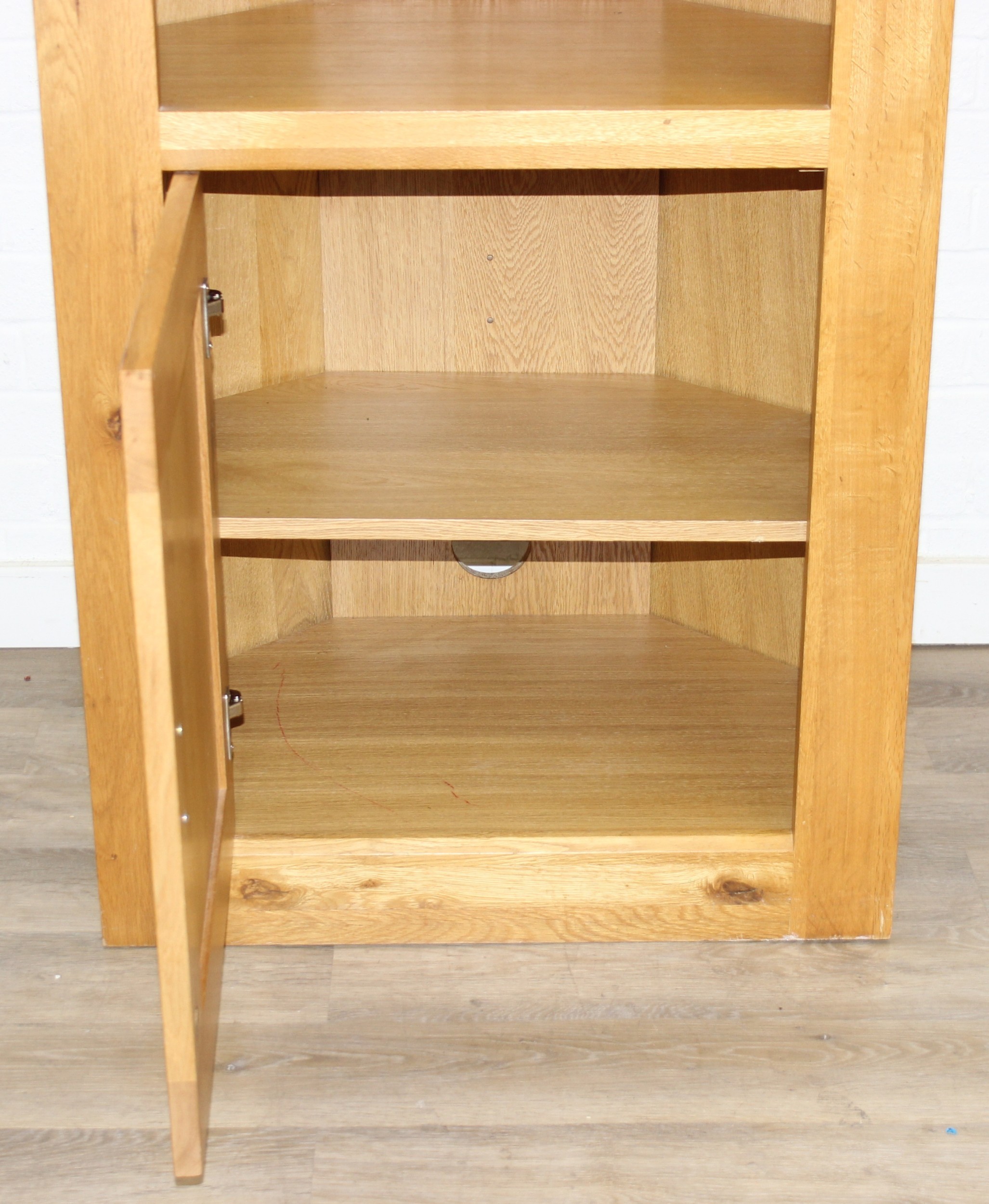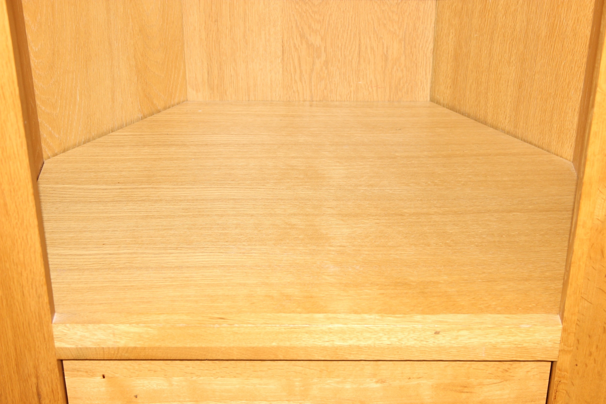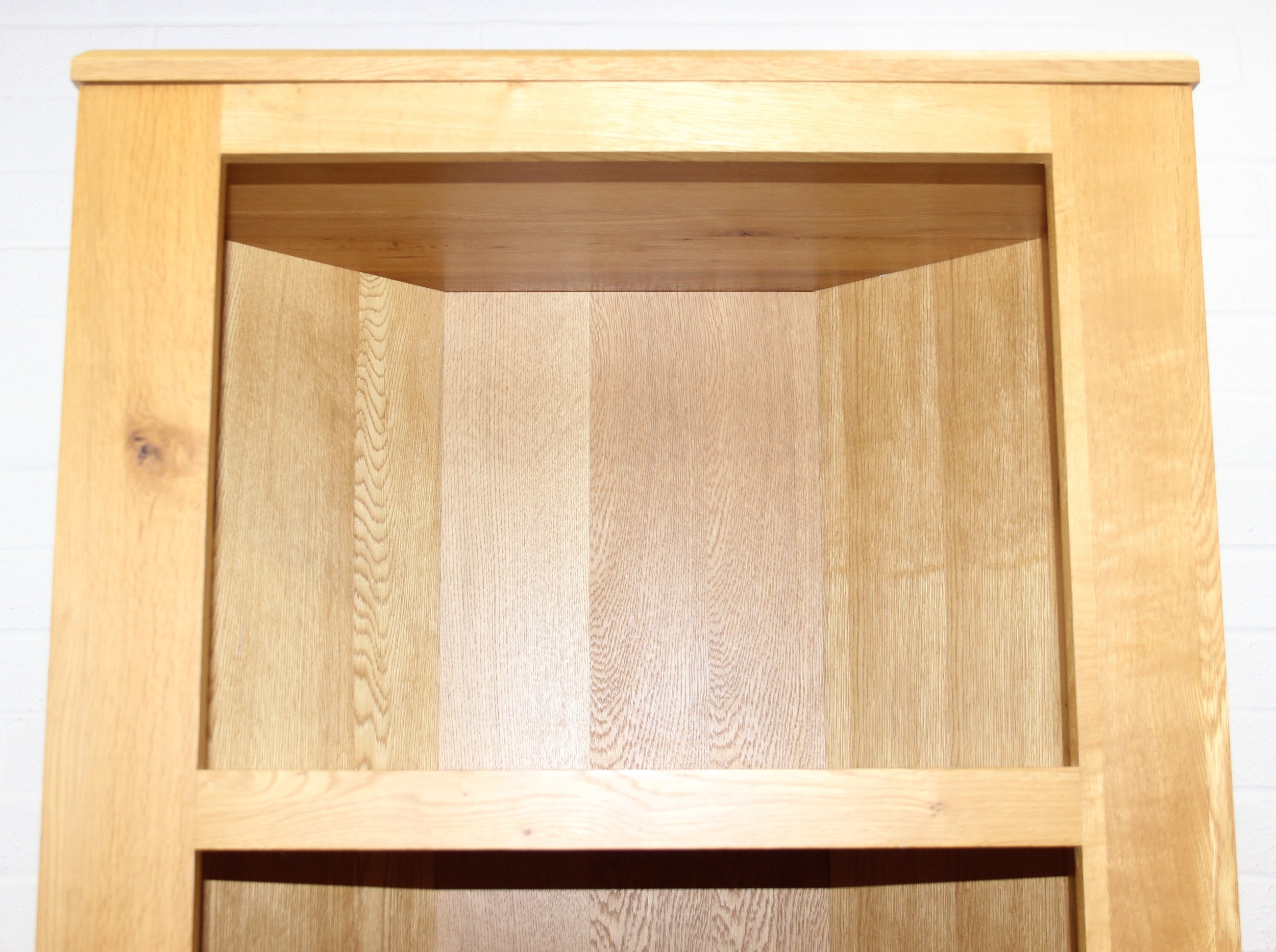 A large good quality modern light oak book shelf or display shelf, 70cm x 50cm x 206cm