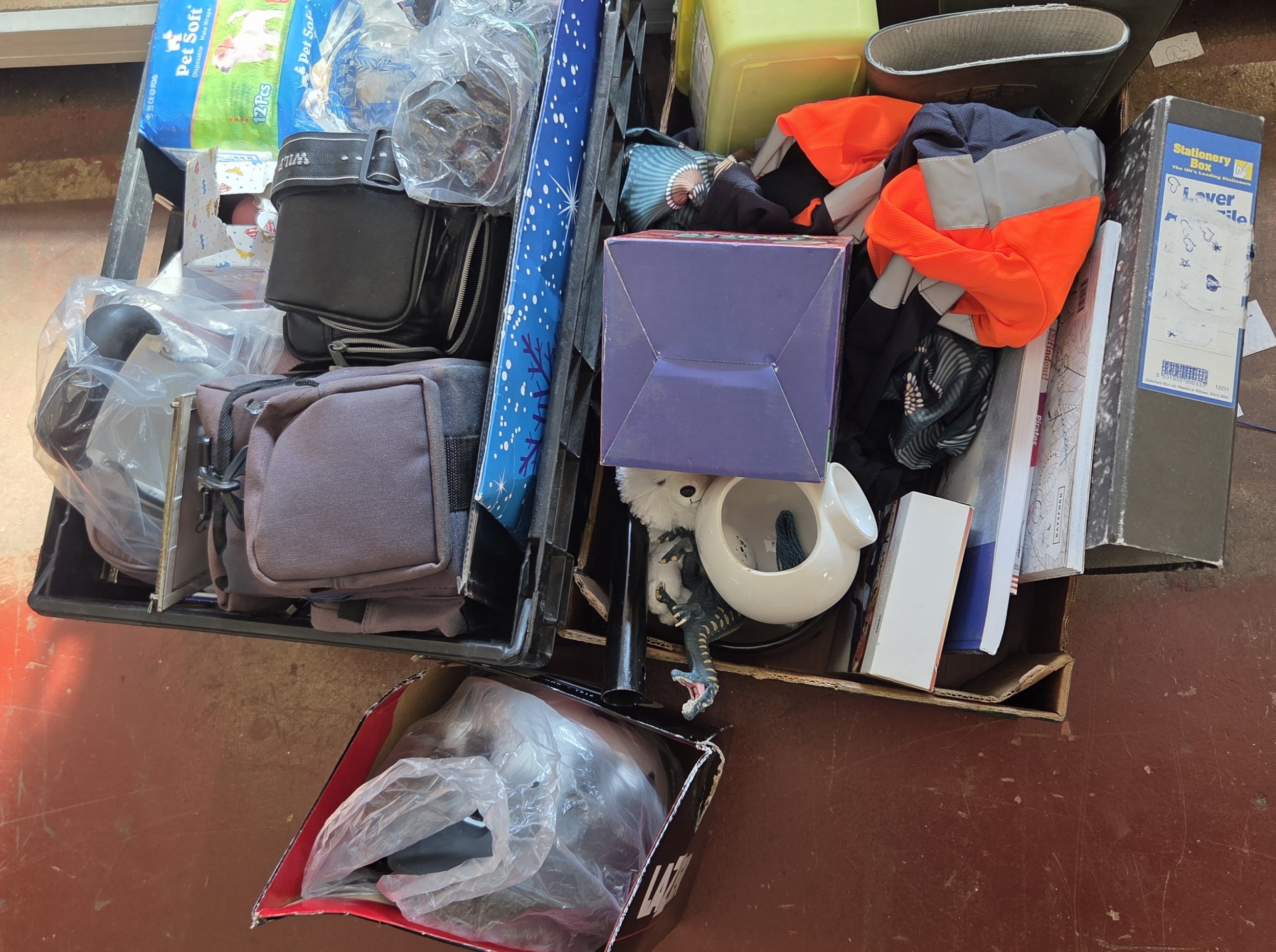 Two Boxes of Household Goods, Pet Supplies, Workwear and Miscellaneous Items