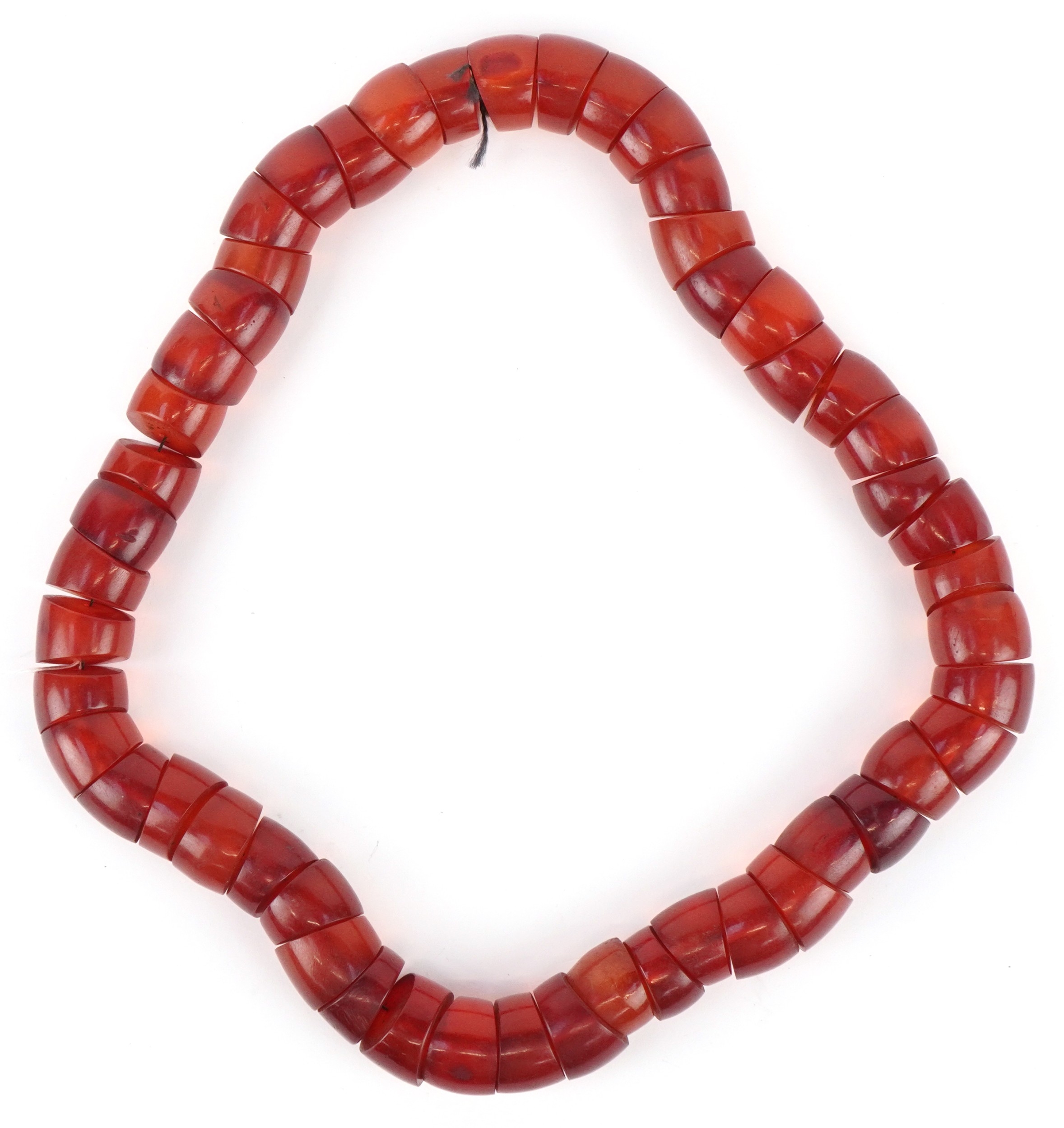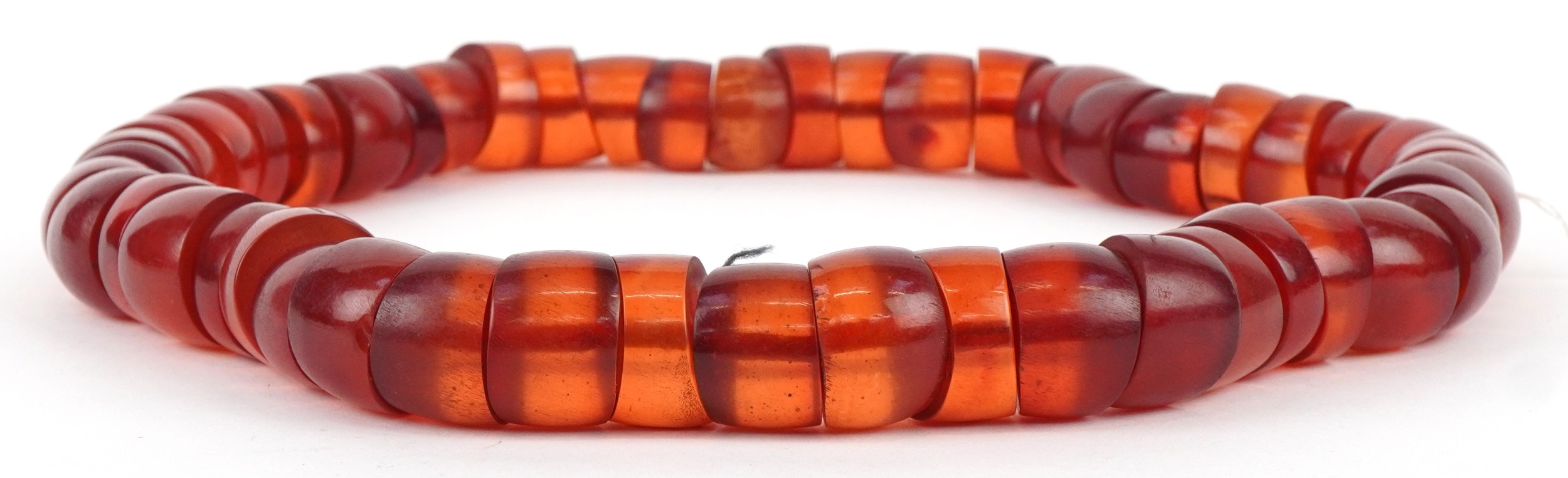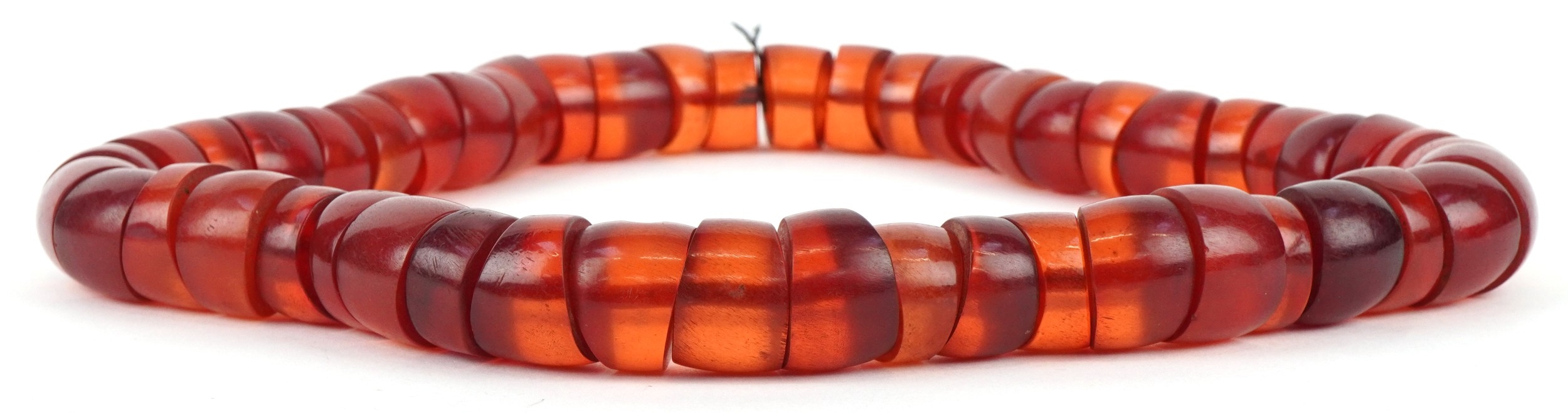 A large cherry amber coloured segmented necklace, 60cm in length x 2.5cm wide, 445.0g.