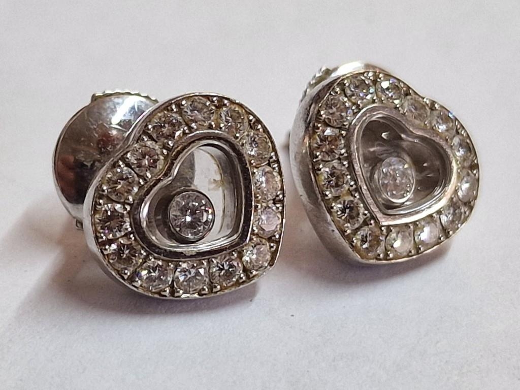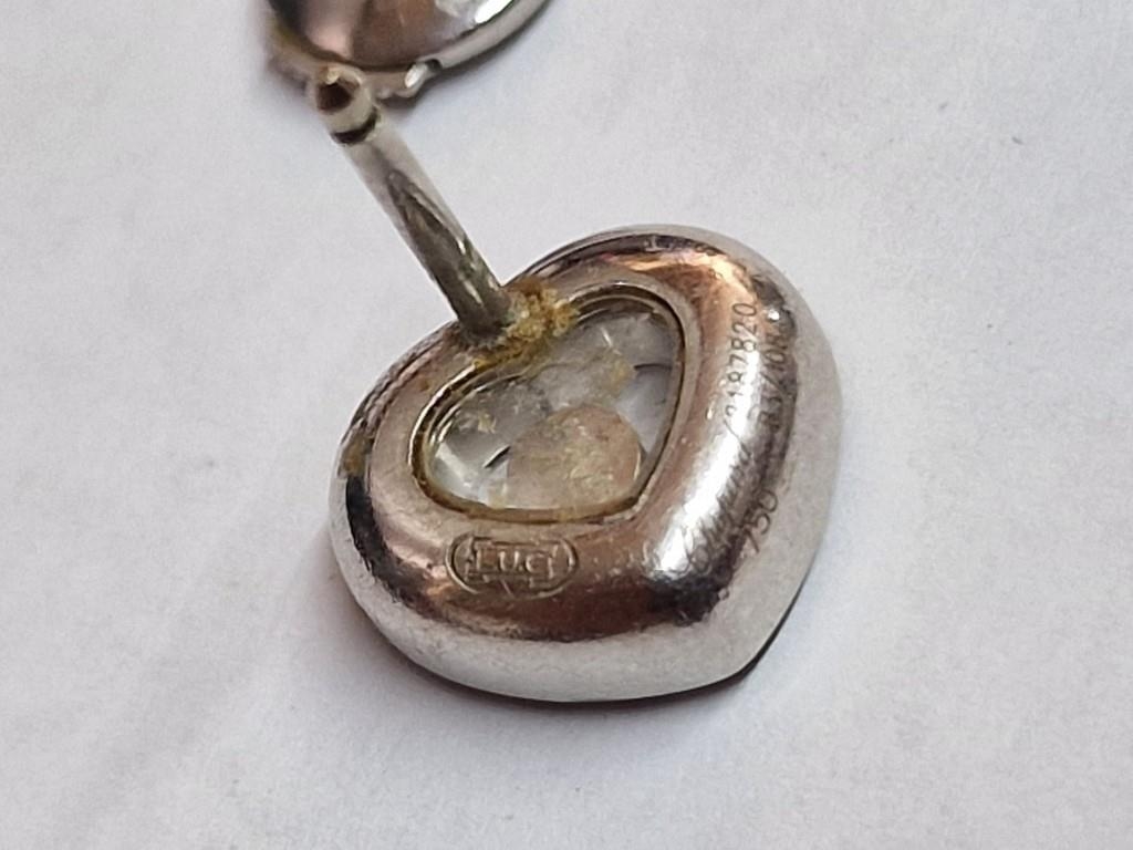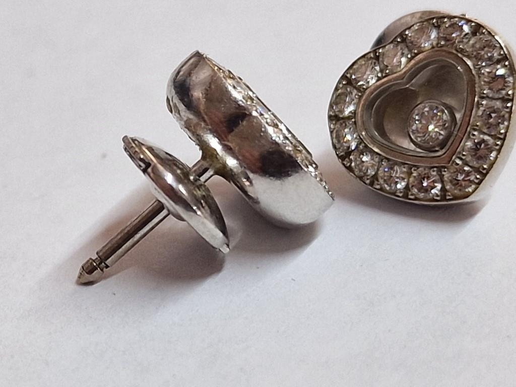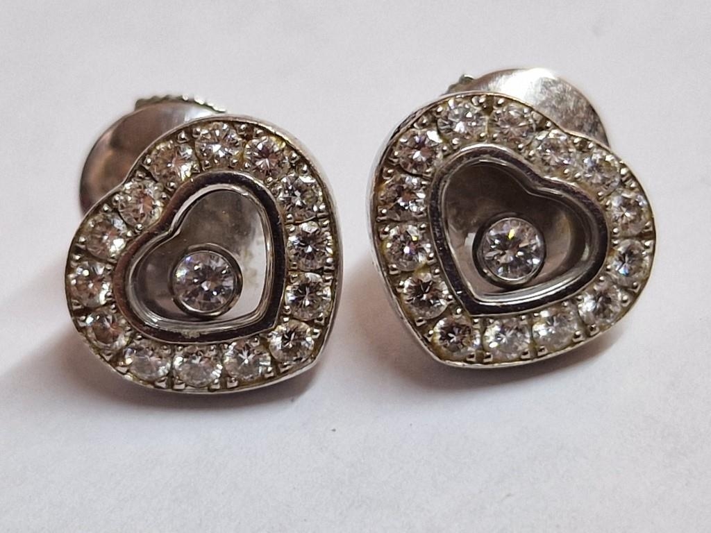 Pair of Chopard 'Happy Diamond' 18ct White Gold & Diamond Heart Shaped Earrings with Floating Diamond, (Approx. W: 10mm, 6.7g)