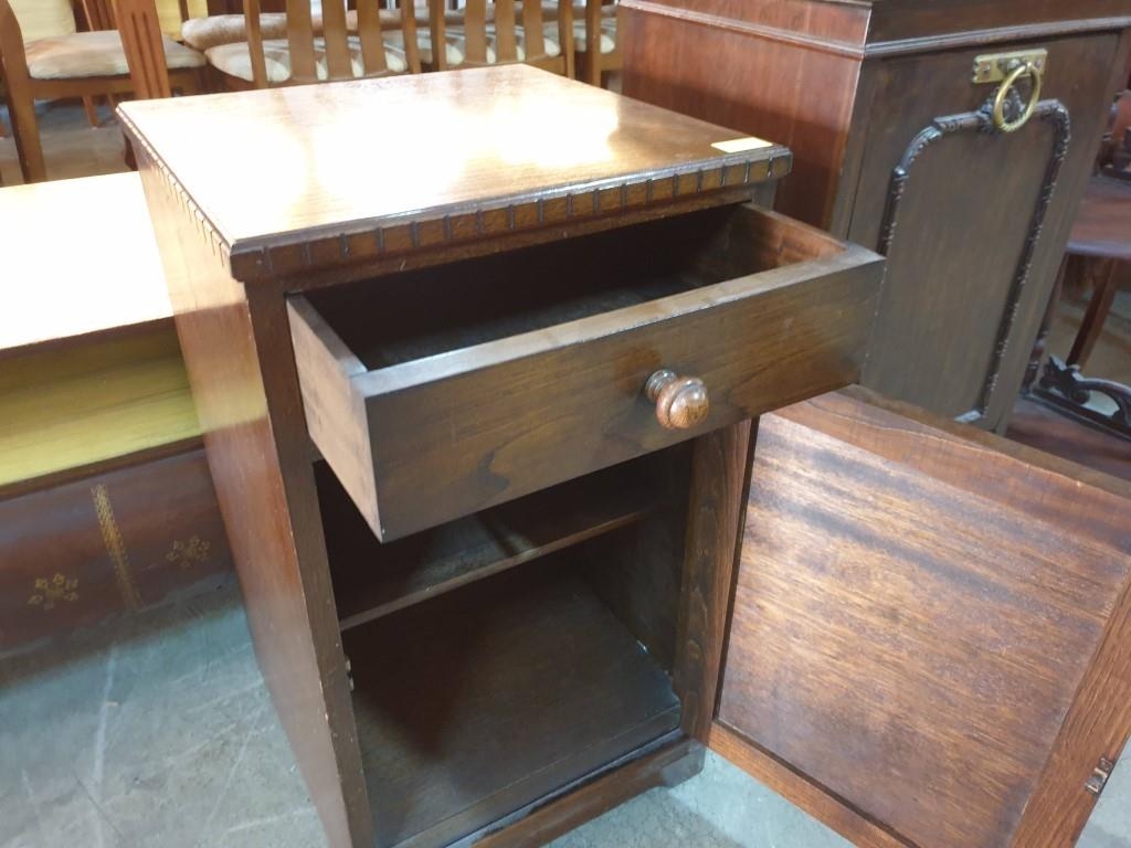 Antique Pot Cabinet / Bedside Unit with Cupboard & Drawer (39cm x 39cm x 66cm)