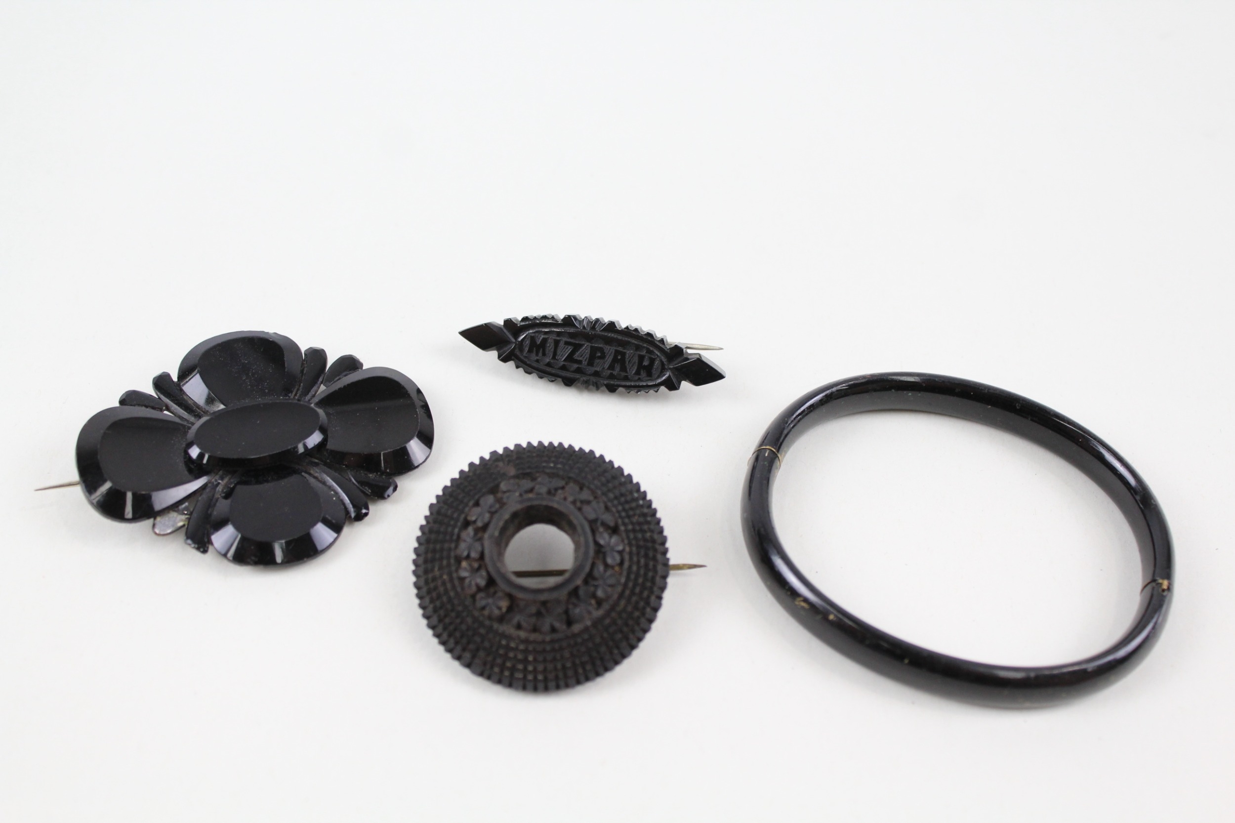 Collection of Jet Jewellery inc. Carved, Mourning, Mizpah x 4 57g