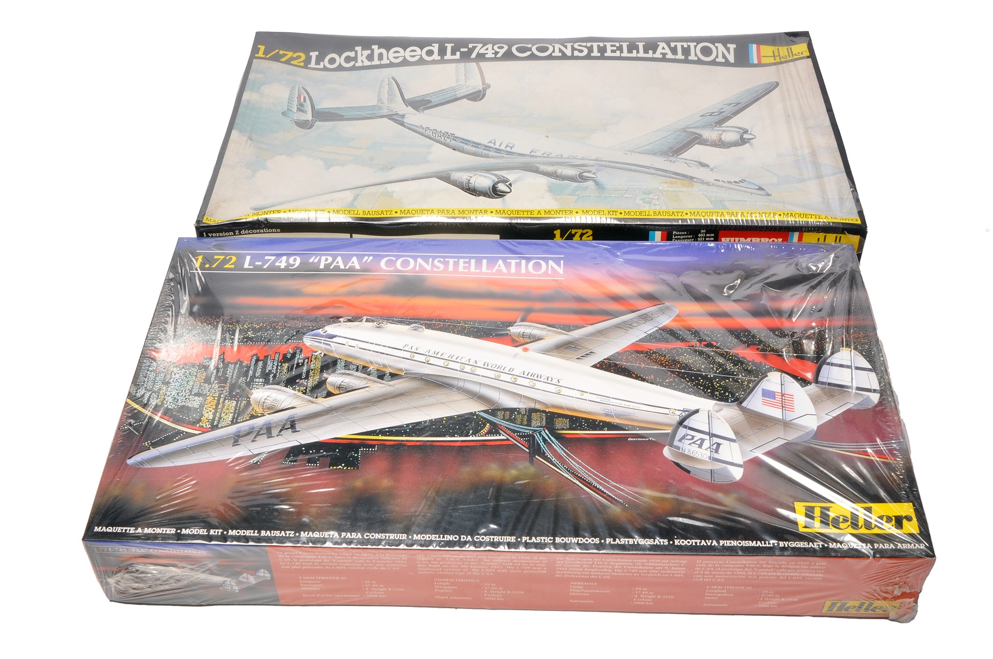 Heller 1/72 plastic model aircraft kit duo comprising Lockheed Constellation L-749 x 2 (different variations). Both sealed.