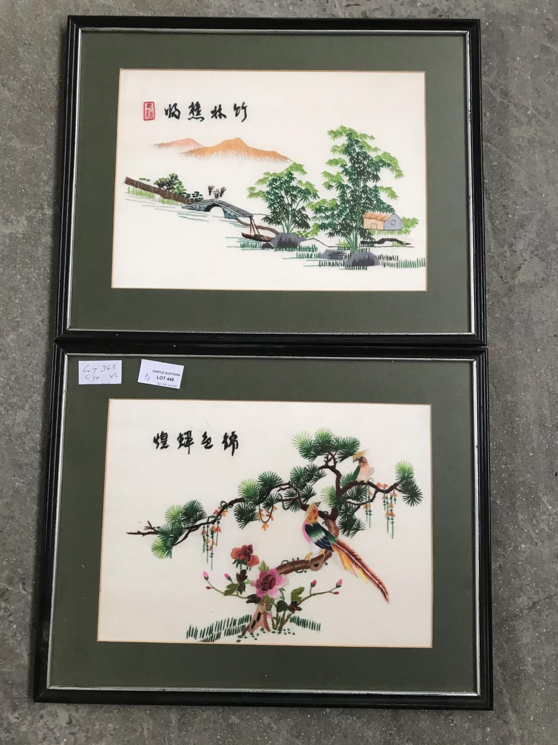 x2 Vintage Oriental Artworks Framed (39 x 31cm Each)