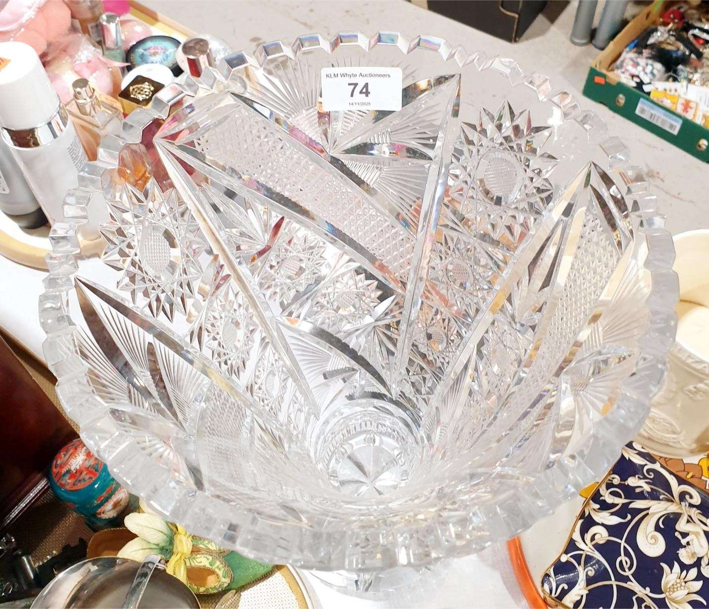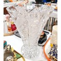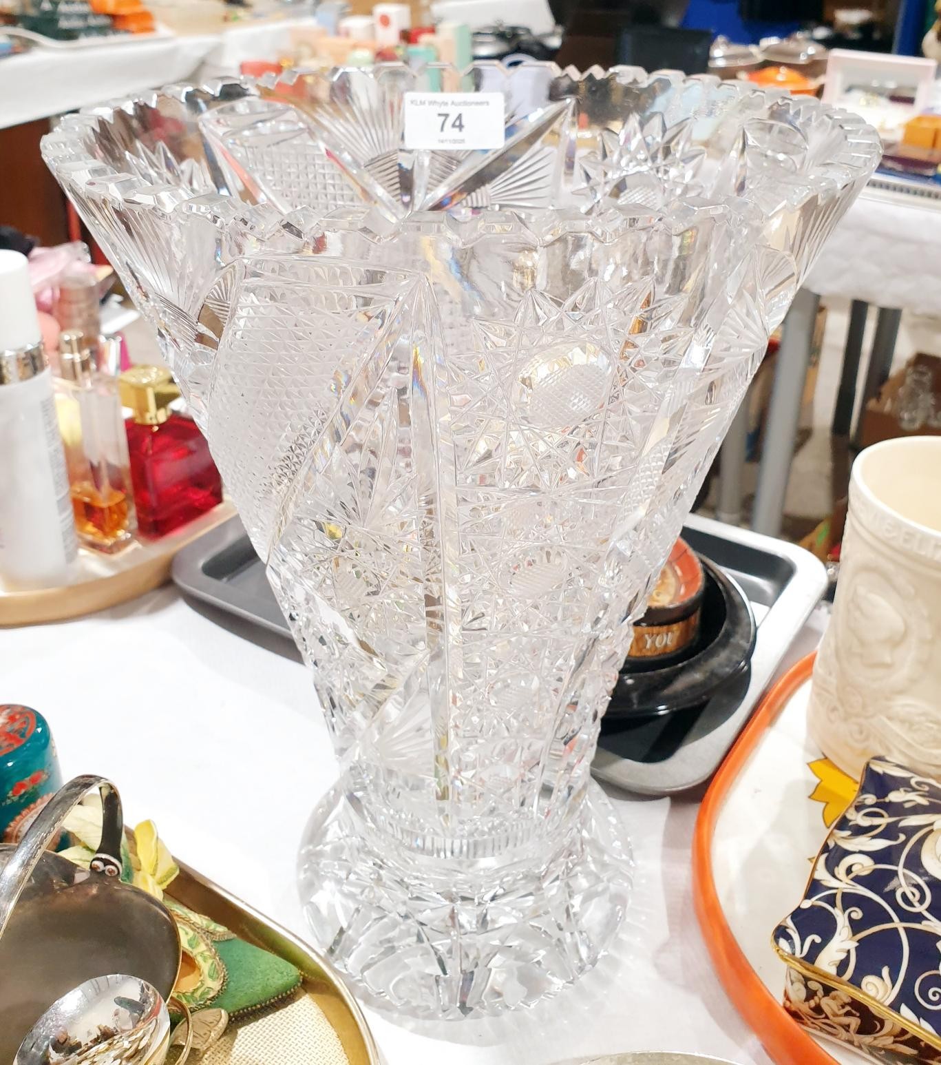 A cut crystal vase, height 31.5cm. No Shipping. Arrange collection or your own packer and shipper, please. Electricals are sold as scrap.