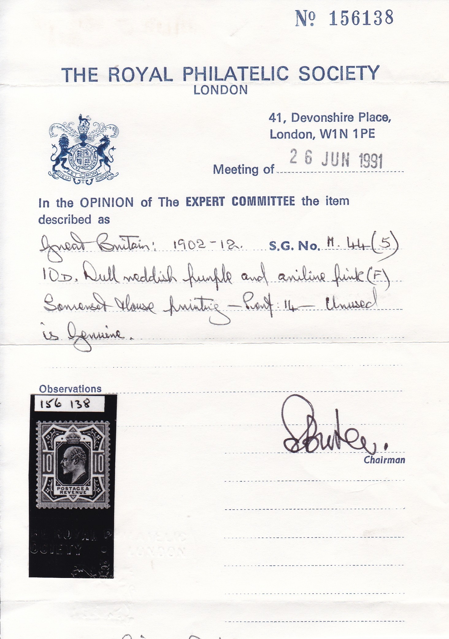 1911 Somerset House 10d dull reddish purple & aniline pink SG310 fresh UM. RPS Cert.