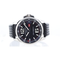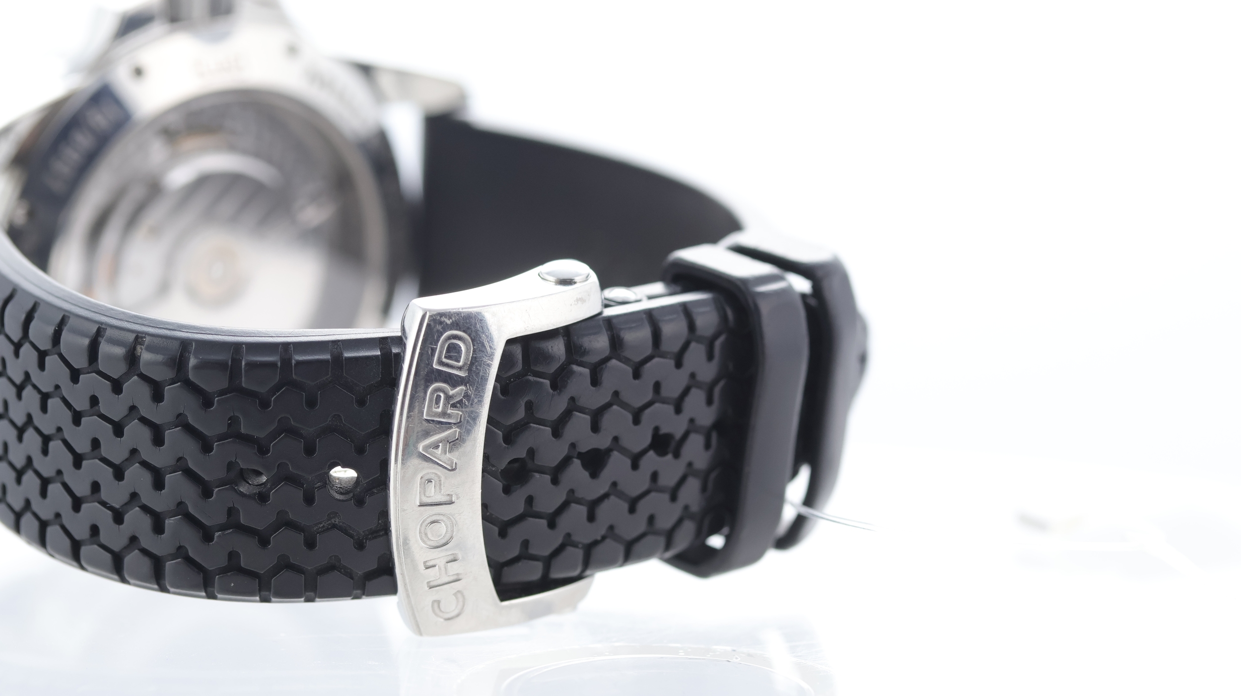 Strap features: Chopard black rubber 'Tyre Tread' strap and stainless steel clasp.