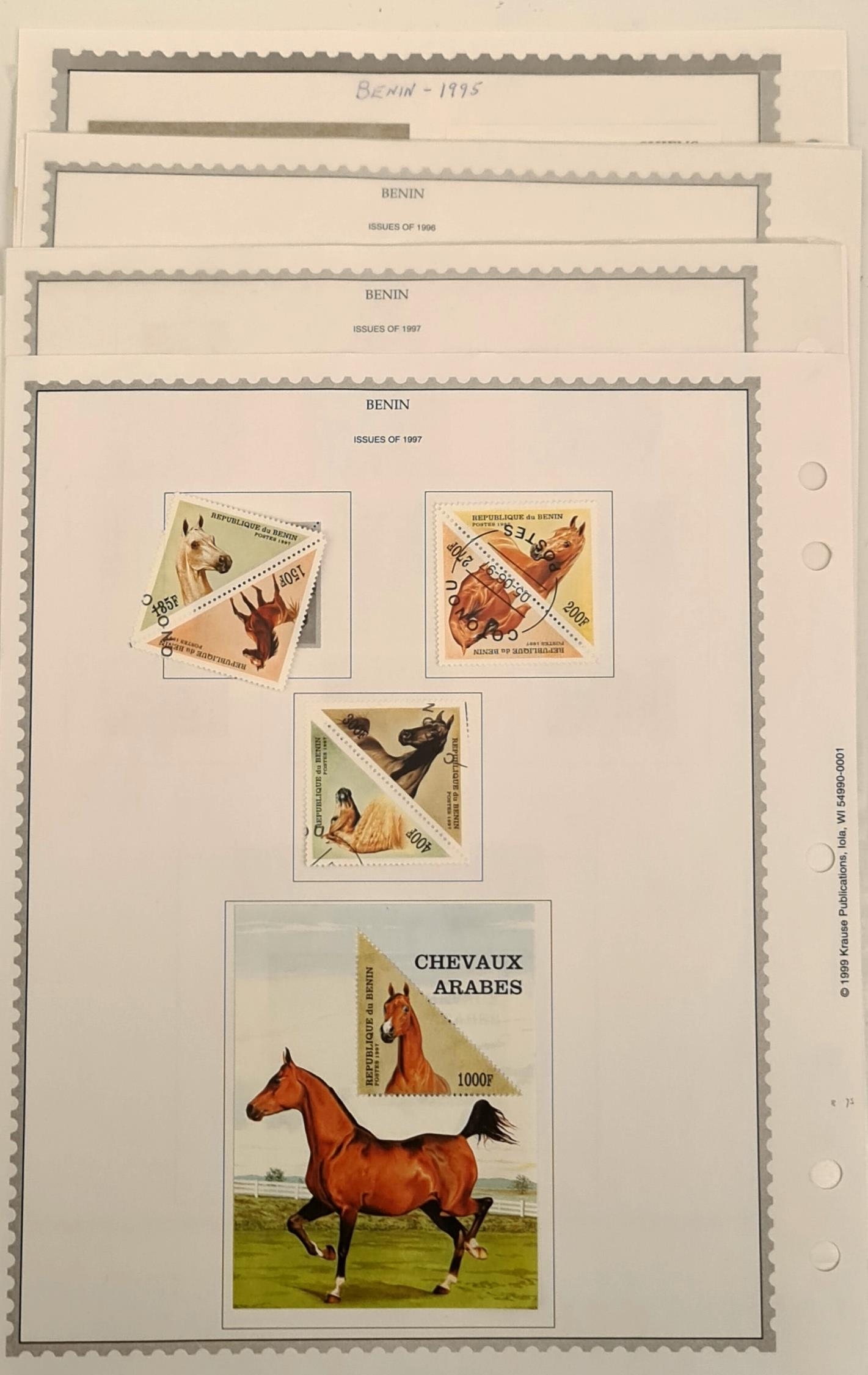 Parcel of 247 Benin Postage Stamps on Stamp Album Sheets Held With Hinges. Dates from 1997 to 2006. Shipping is available. Please ask for a quote before bidding. Where possible we combine shipping costs. Remember, if you are the highest bidder above reserve on this Lot you have bought the item and are legally responsible for the item. Viewing is recommended in either person or via video link. Contact us to arrange.