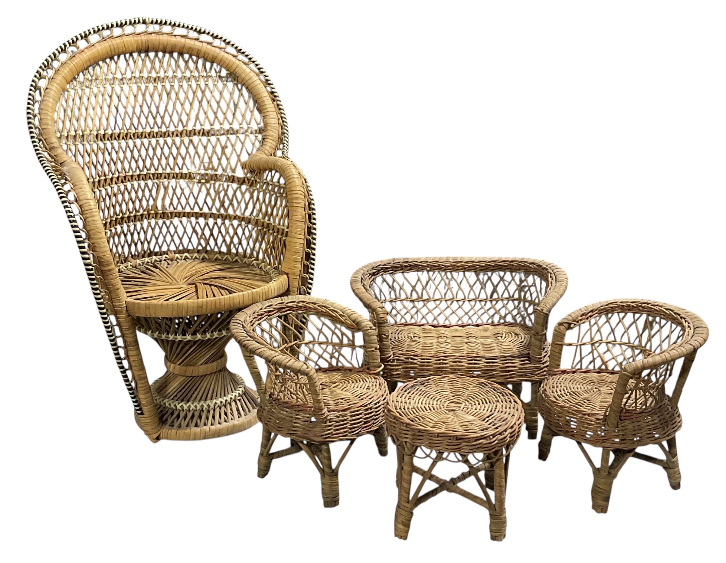 Dolls Wicker / Cane Furniture Incl. Peacock Style Chair.