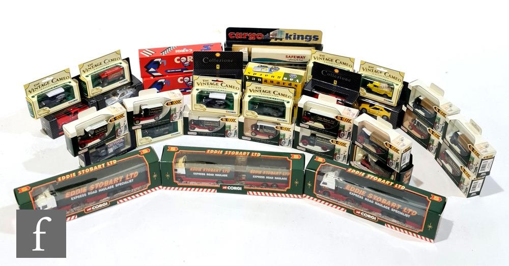 A collection of assorted diecast models, many Eddie Stobart related, including Atlas, Lledo and Corgi, together with a selection of other models to include Vanguards, Majorette and others. (qty)