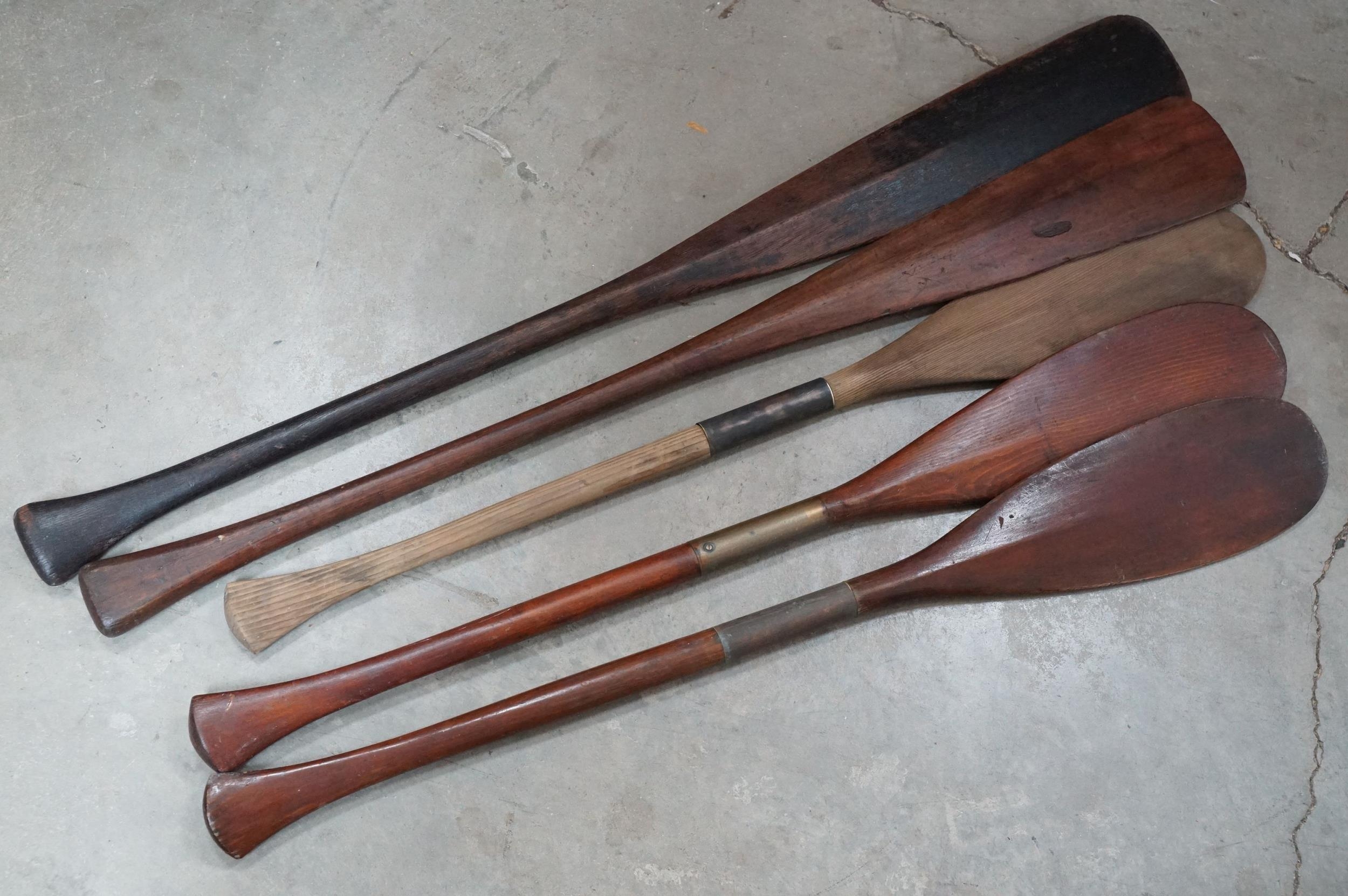 Collection of five canoeing / kayaking paddles