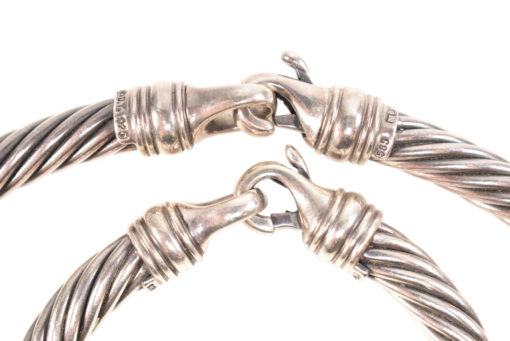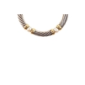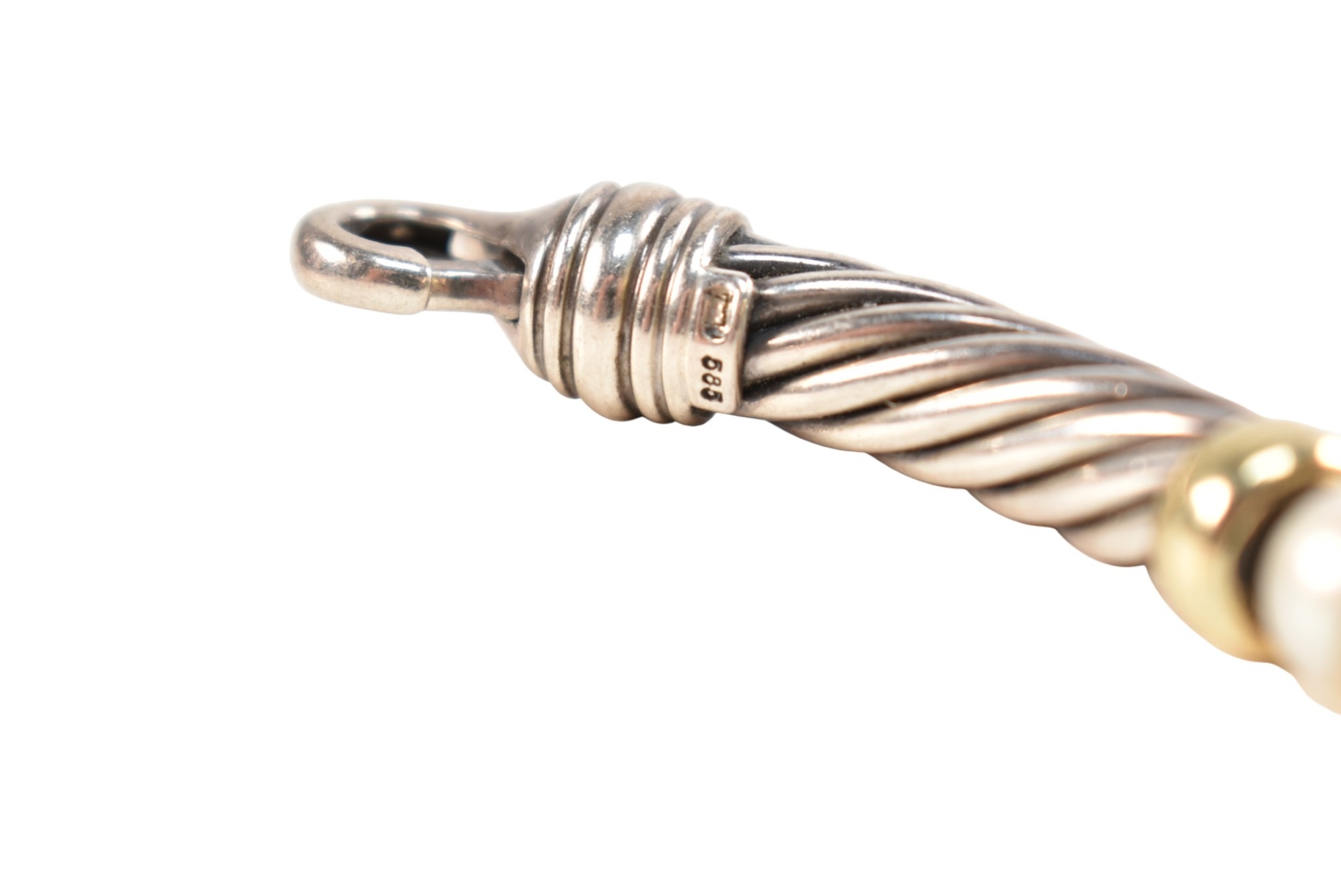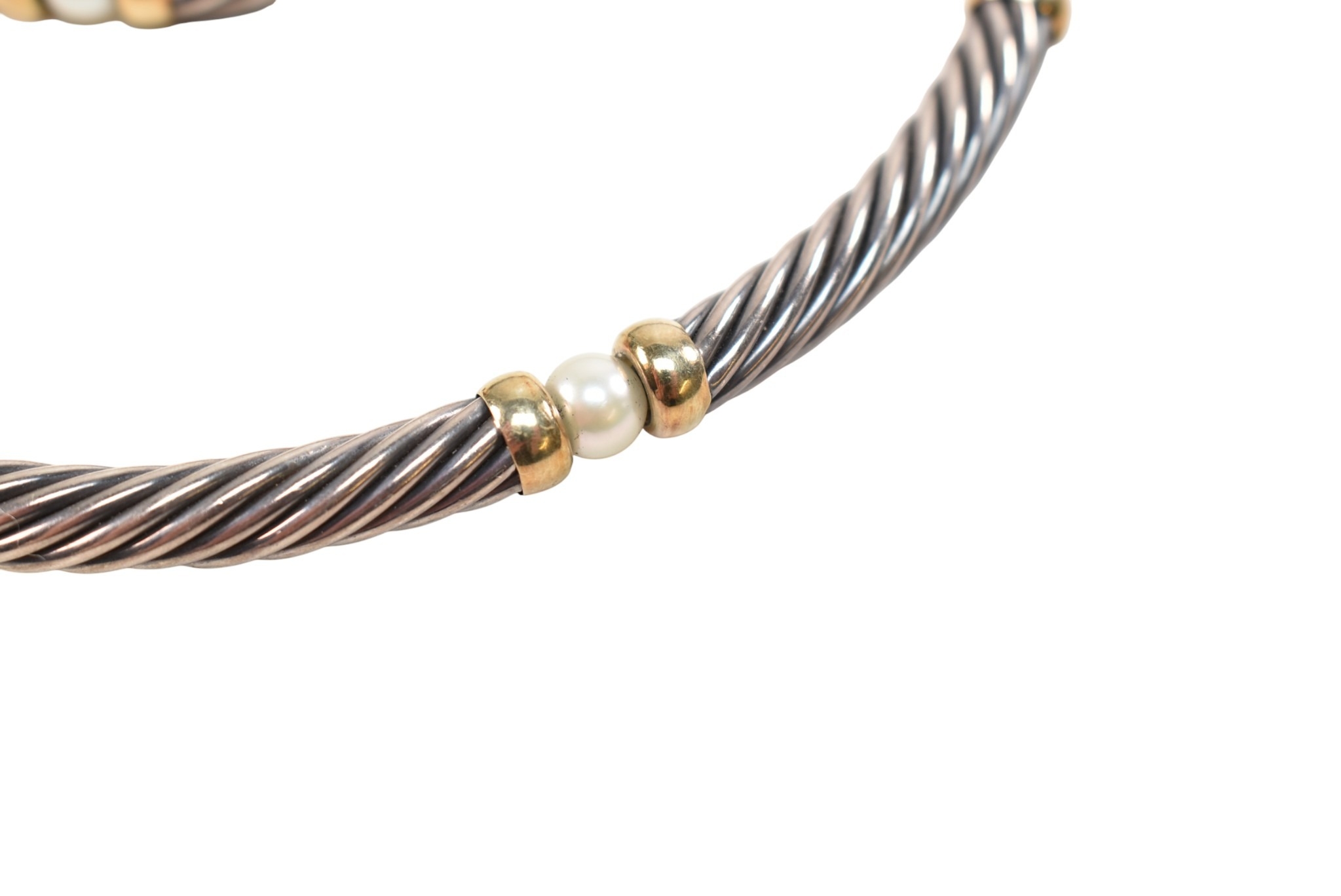 A David Yurman Hampton silver and 14ct gold and pearl necklace and earring suite. Signed 925 585 D.Y. Weight 140g. Measures Bracelet 19cm, necklace 40cm.