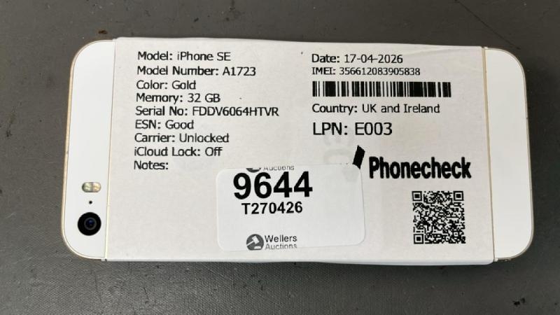 X1 APPLE IPHONE SE/ A1723/ GOLD/ 32GB/ I-CLOUD UNLOCKED/ IMEI: 356612083905838