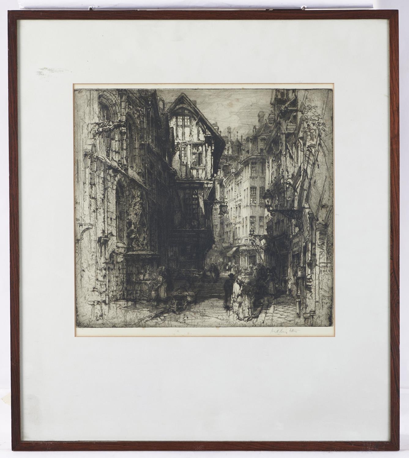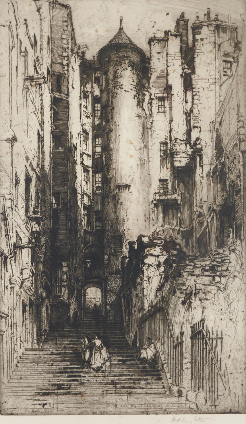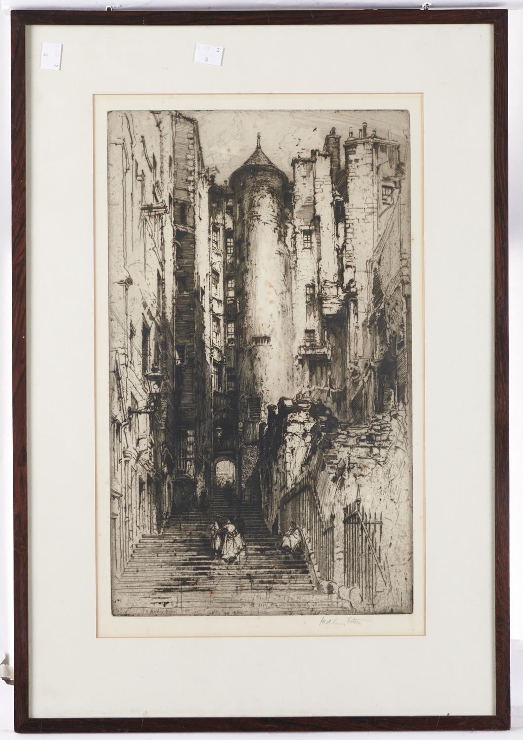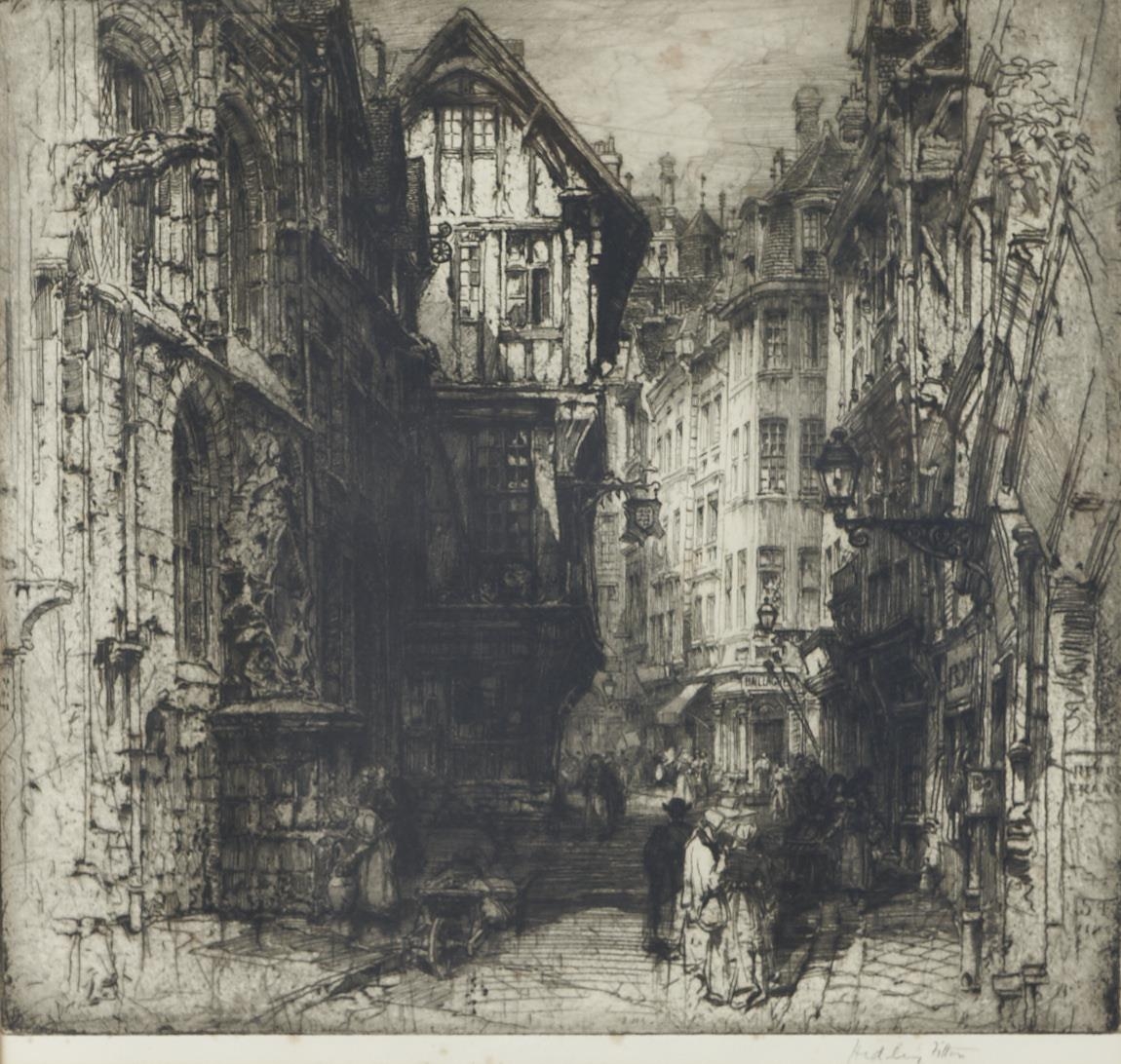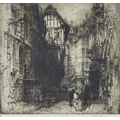 Hedley Fitton RE (1859-1929) - Advocates Close, Edinburgh; Rue St Romain, Rouen, two, etchings with drypoint, both signed by the artist in pencil, 47 x 28.5cm and 33 x 33.5cm (2)