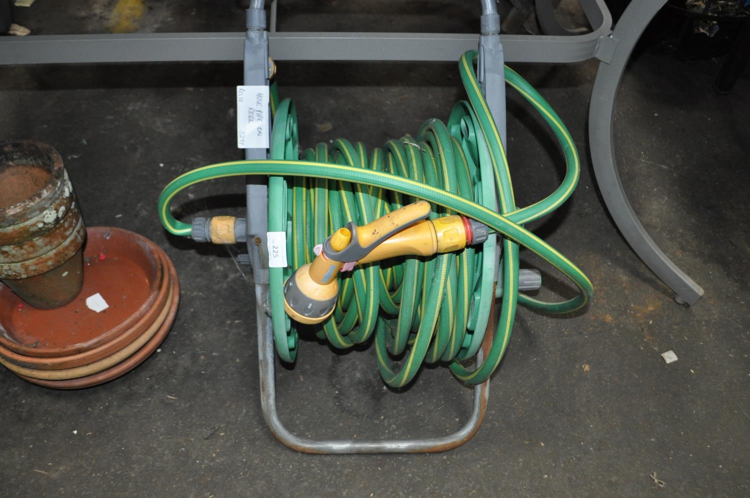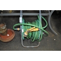 LARGE GARDEN HOSE ON REEL WITH SPRAY HEAD AND FITTINGS