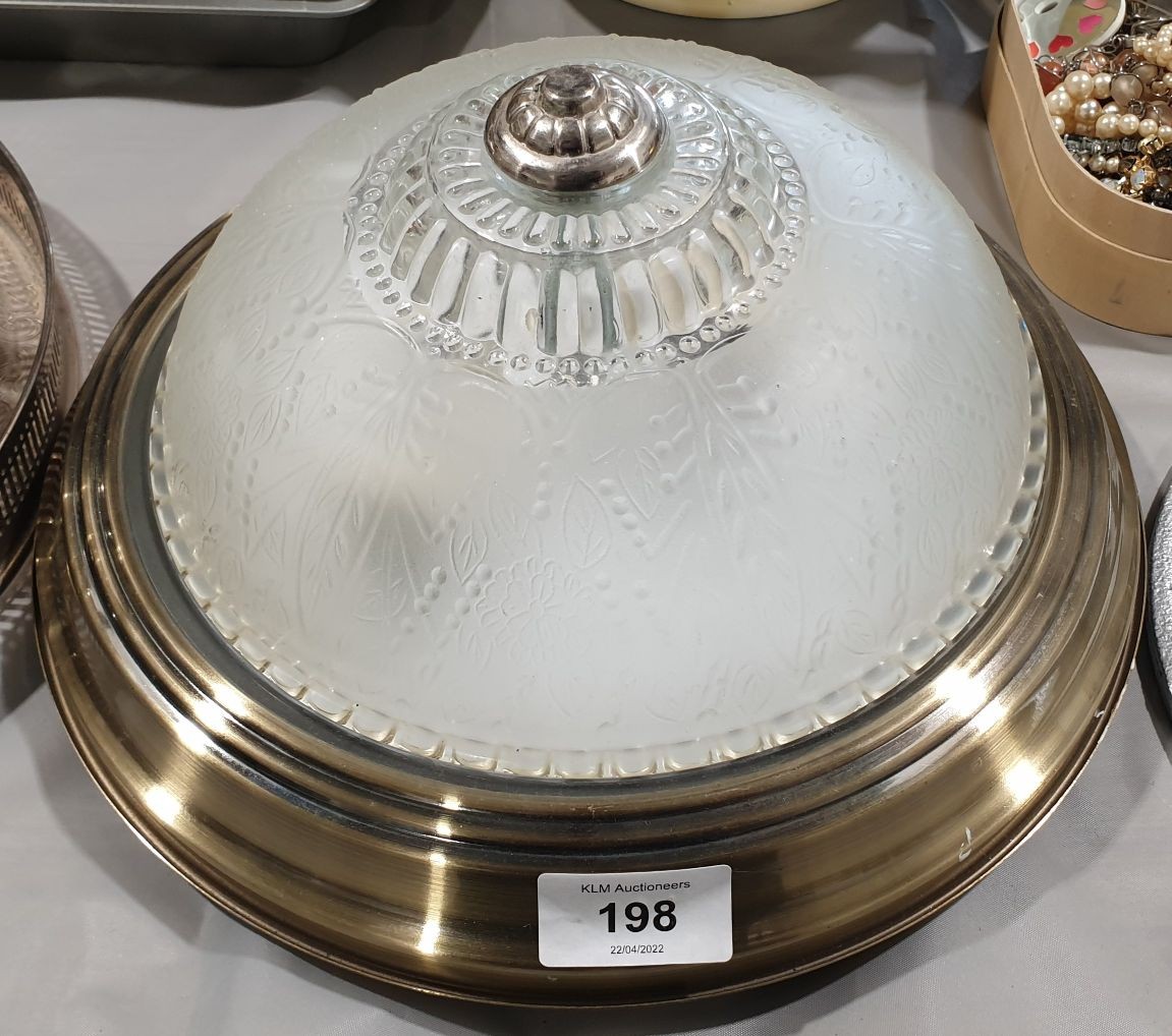 A glass ceiling light, diameter 11". No shipping. Arrange collection or your own packer and shipper please.