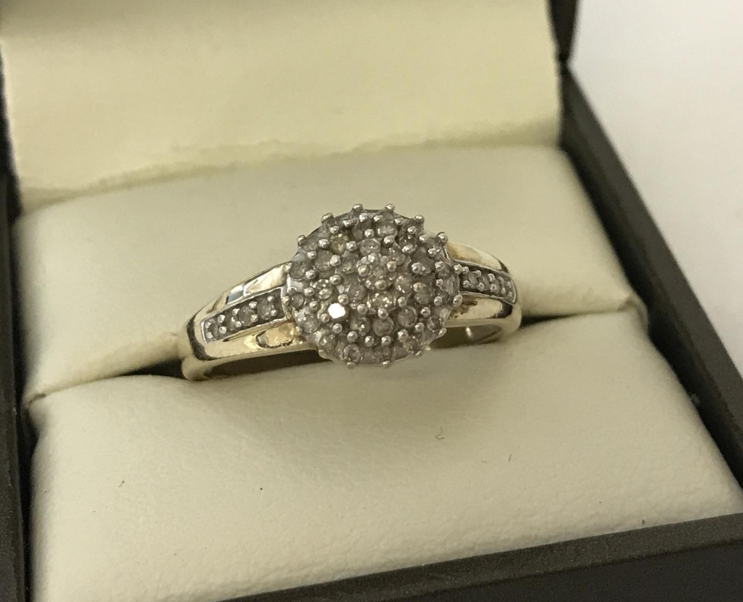 A 9ct gold and diamond cluster ring. Diamonds total approx .25ct. Ring size P½. Total weight approx. 2.7g