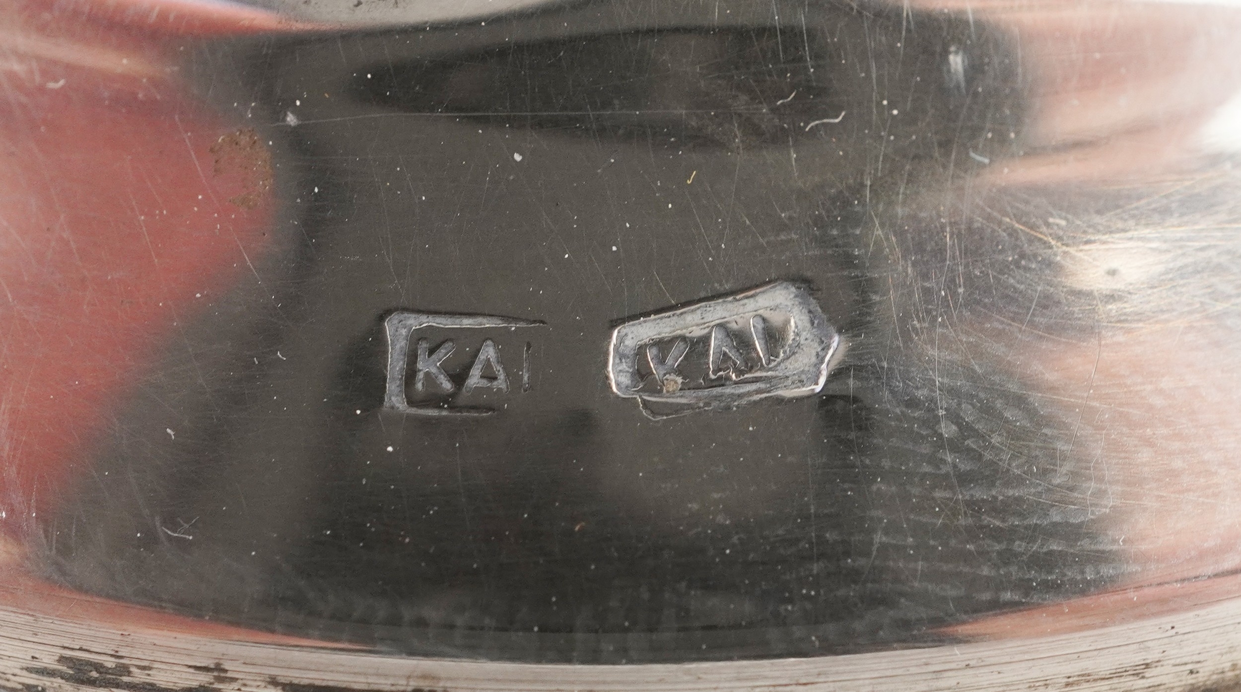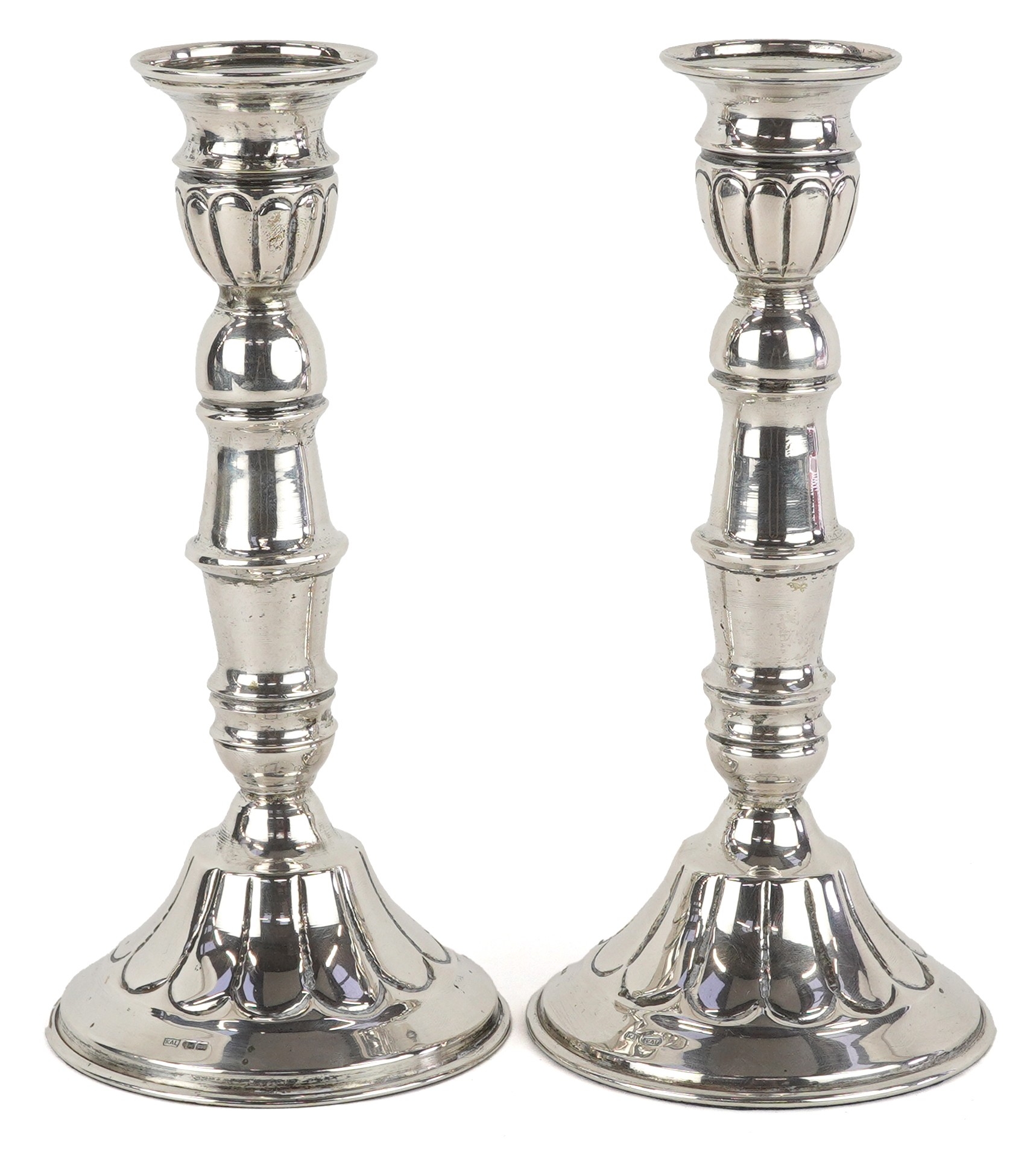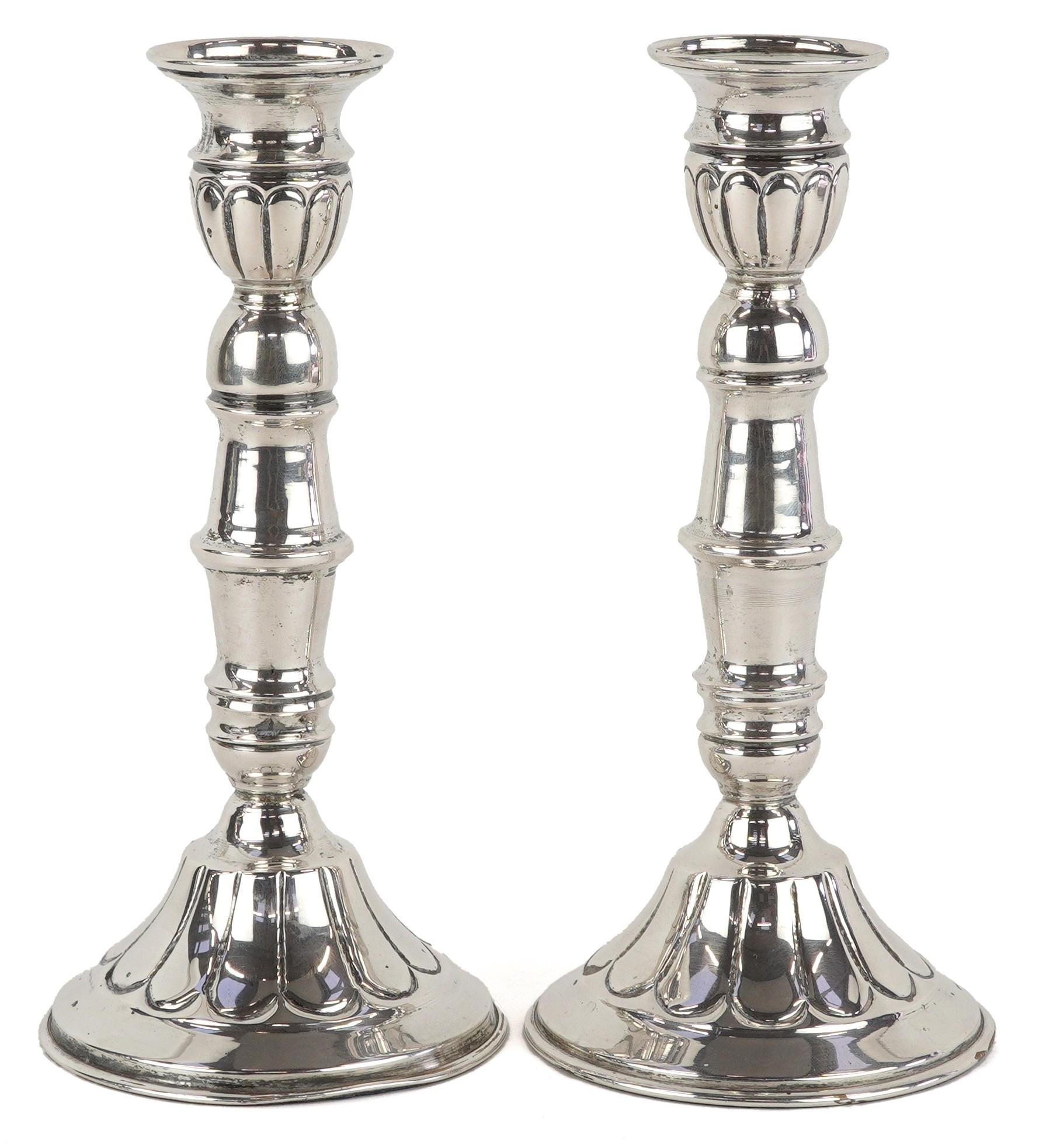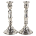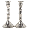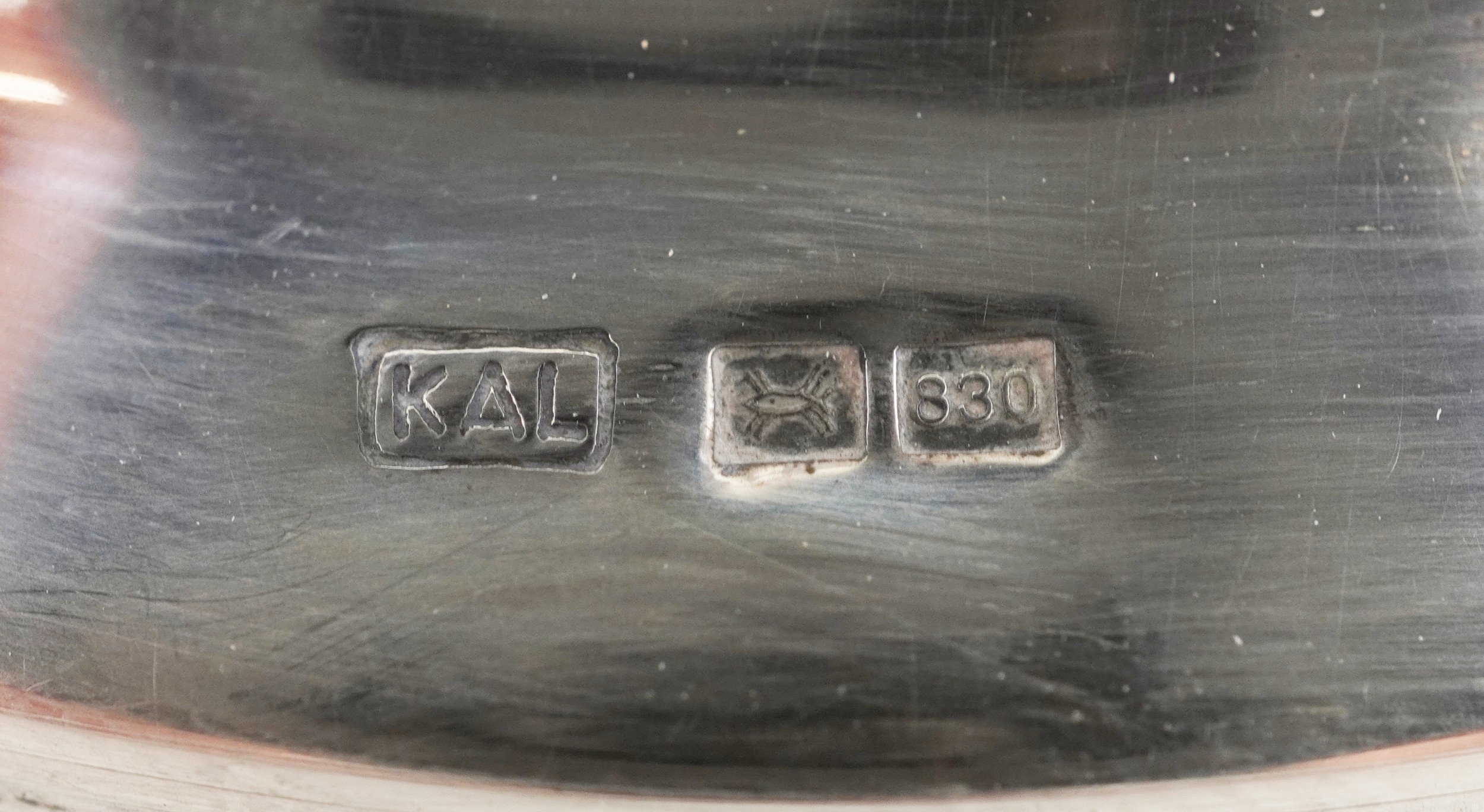 A pair of 830 grade Cyprus silver candlesticks with embossed decoration, KAL maker's mark, 18.5cm high, total 338.0g.
