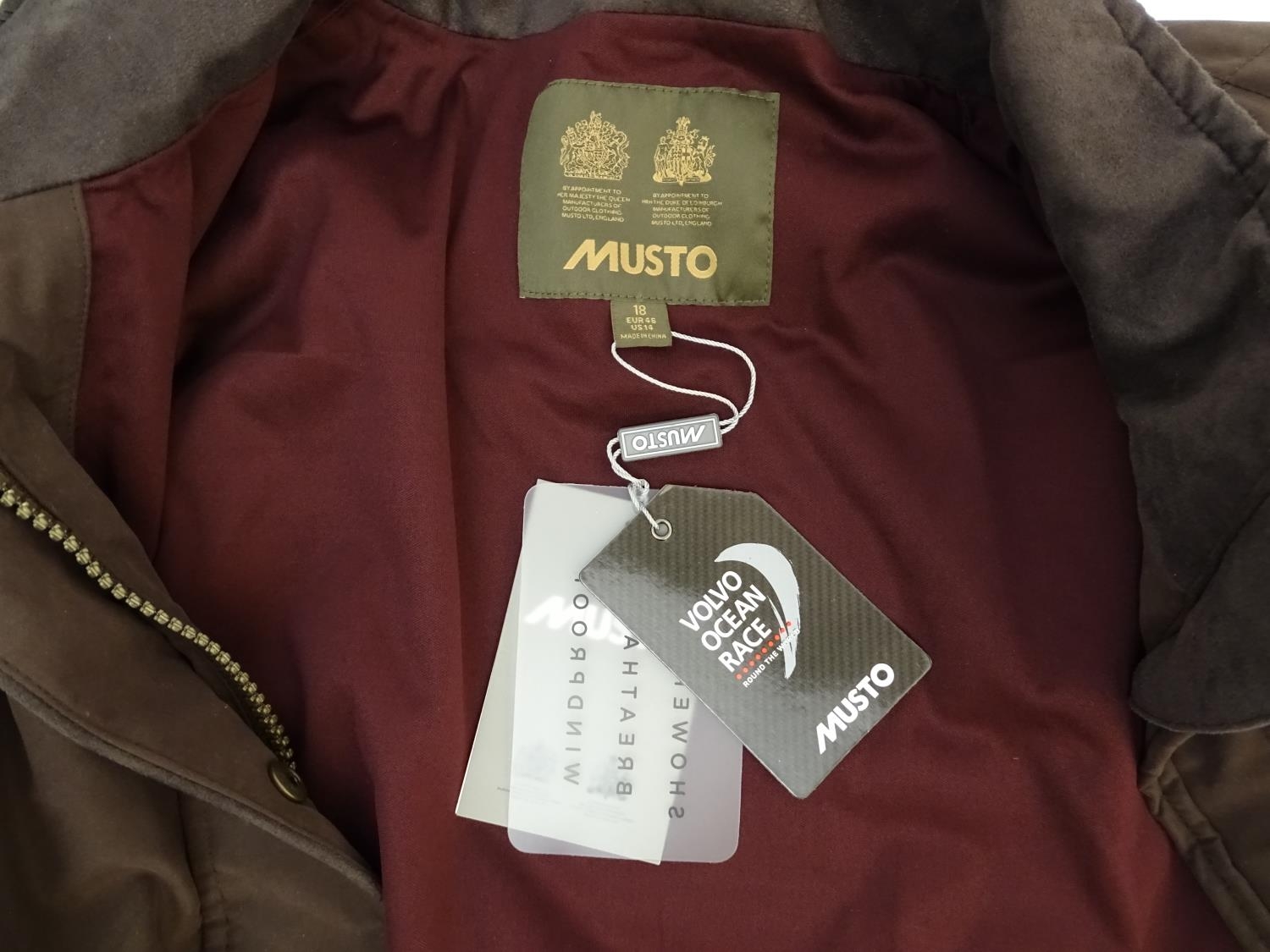 A Musto brown jacket, ladies size 18, with tags