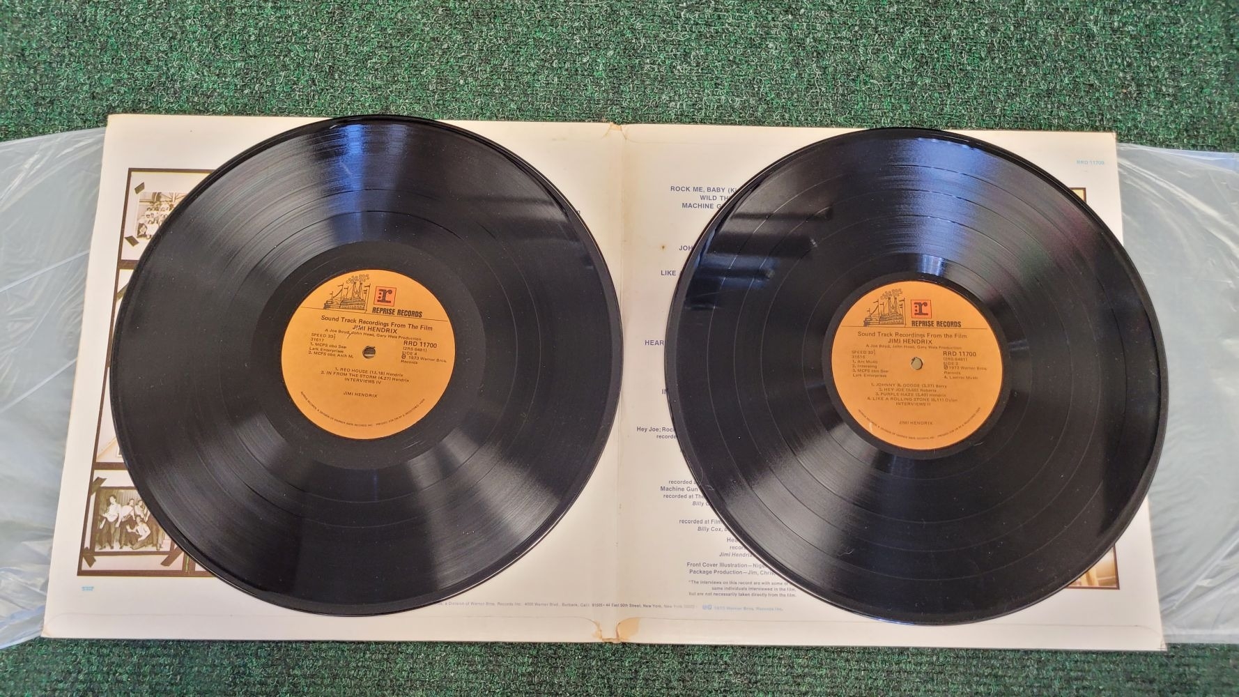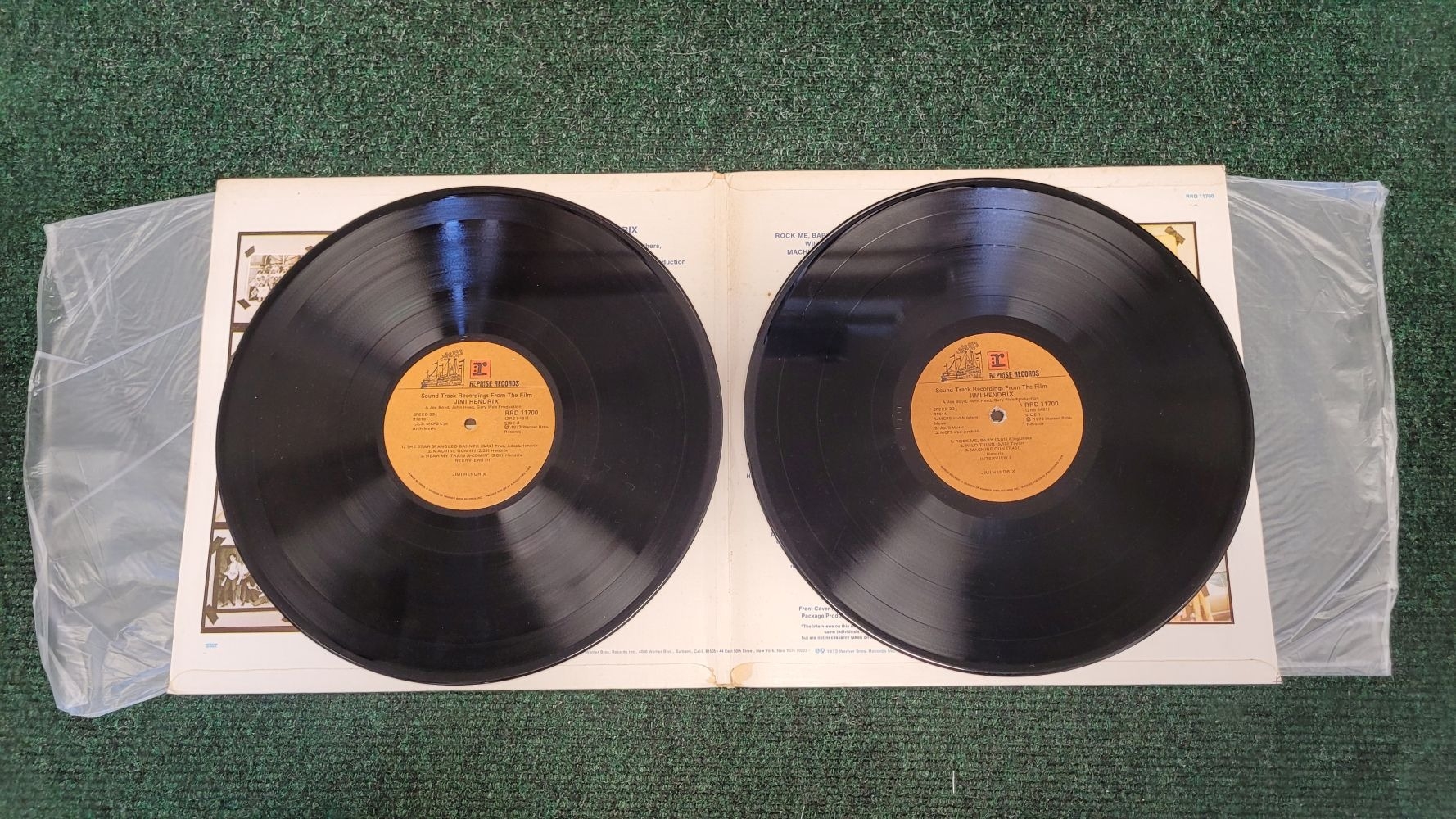 JIMI HENDRIX, SOUND TRACK RECORDINGS FROM THE FILM, (REPRISE RECORDS, RRD 11700), P. 1973 Warner Bros. Records. A Joe Boyd, John Head, Gary Weis Production. Double vinyl set, in original card board folding cover.