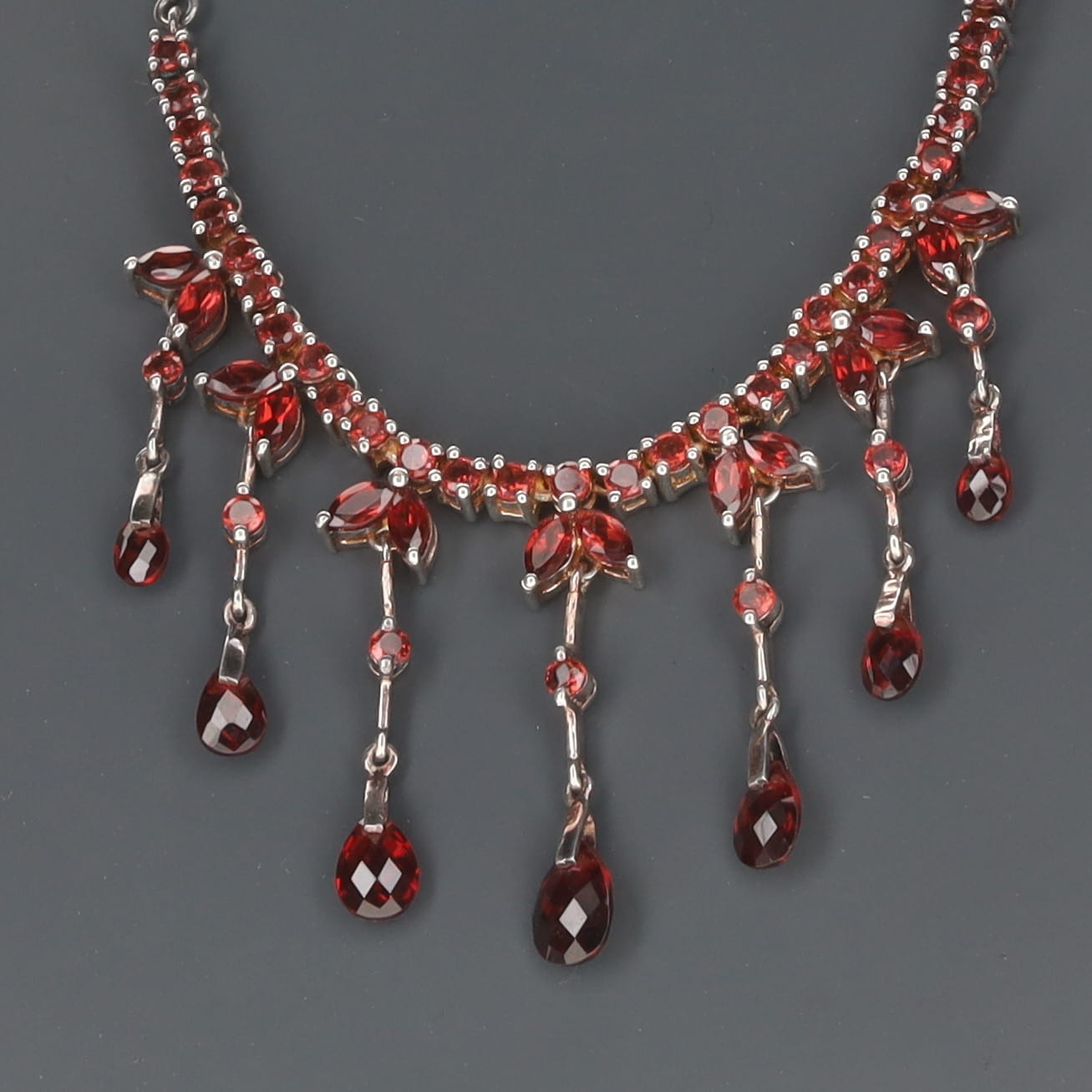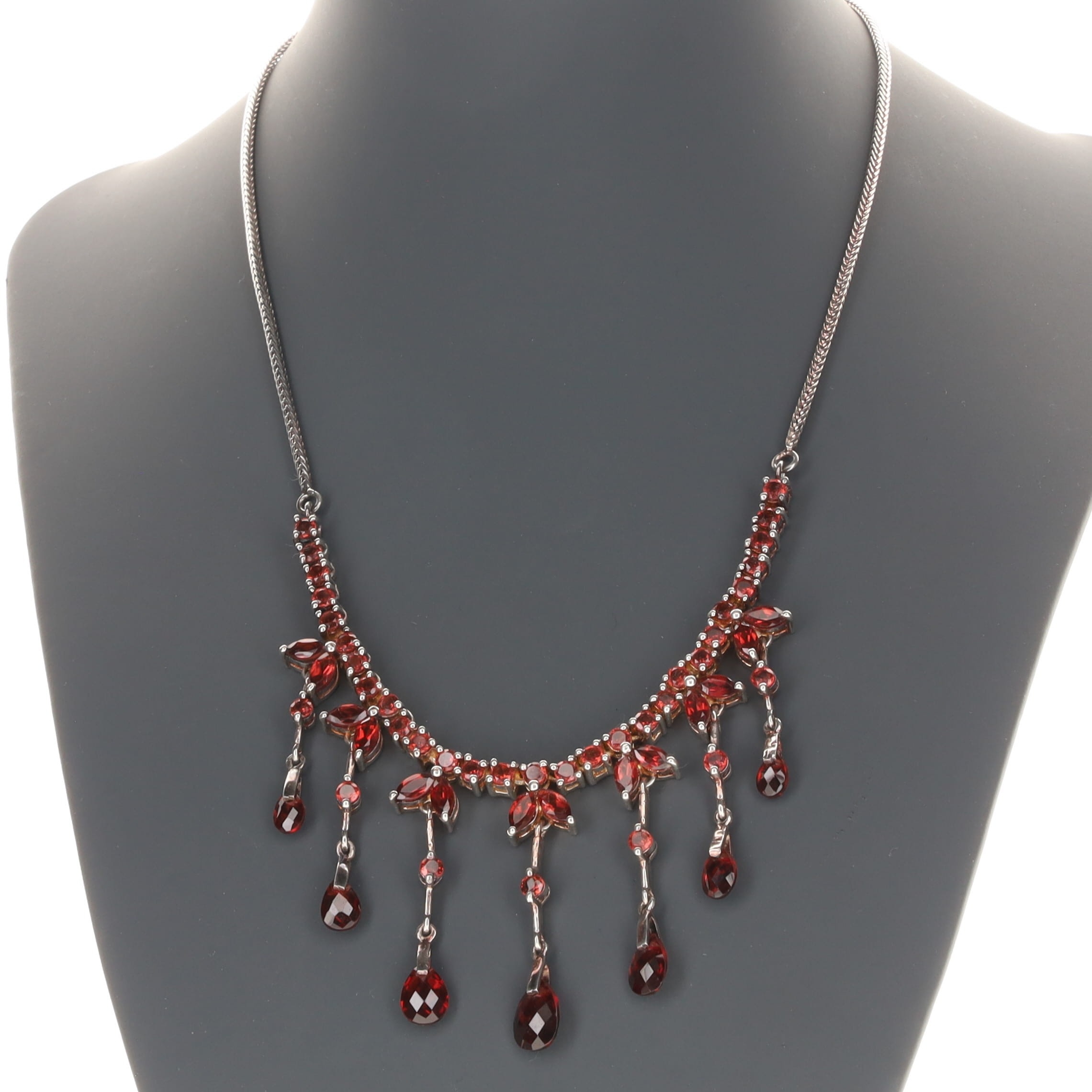 Garnet Fringed Silver Necklace, 23g
