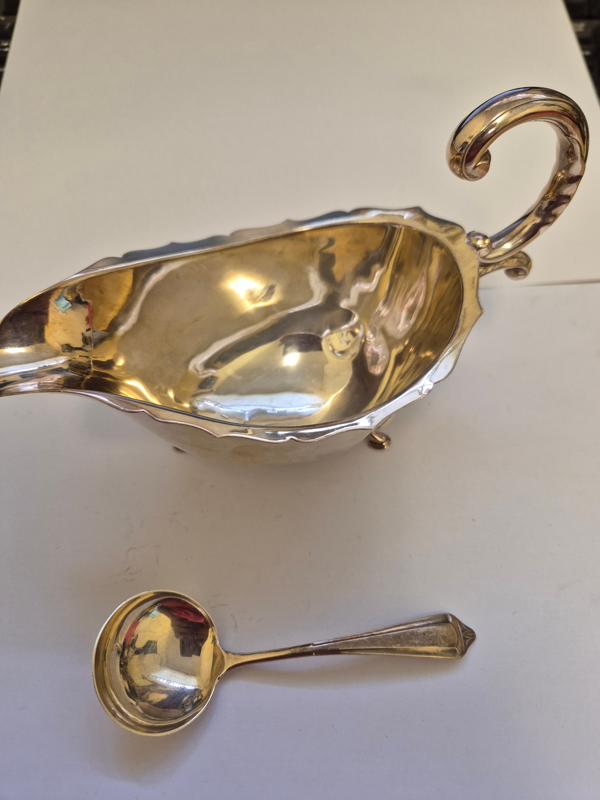 English Sterling silver sauce or gravy boat Birm 1968 and a sterling silver ladle Birm 1969 - 166 grams