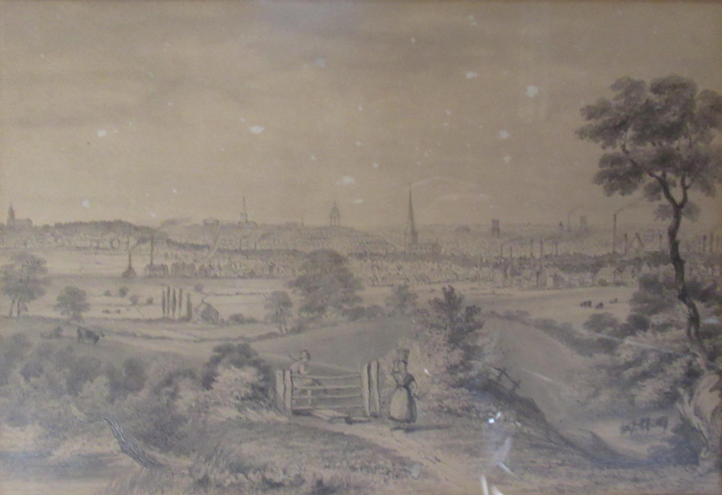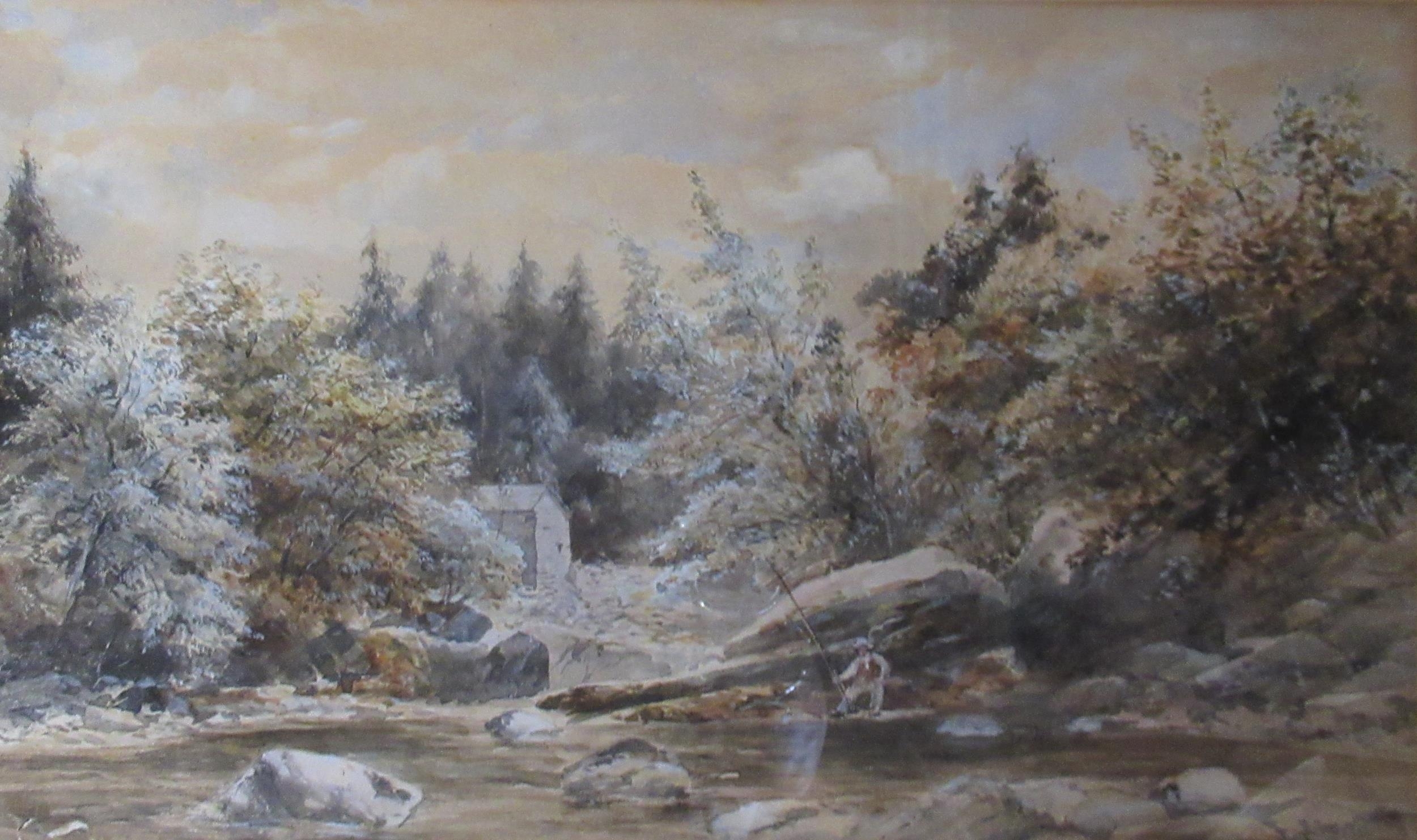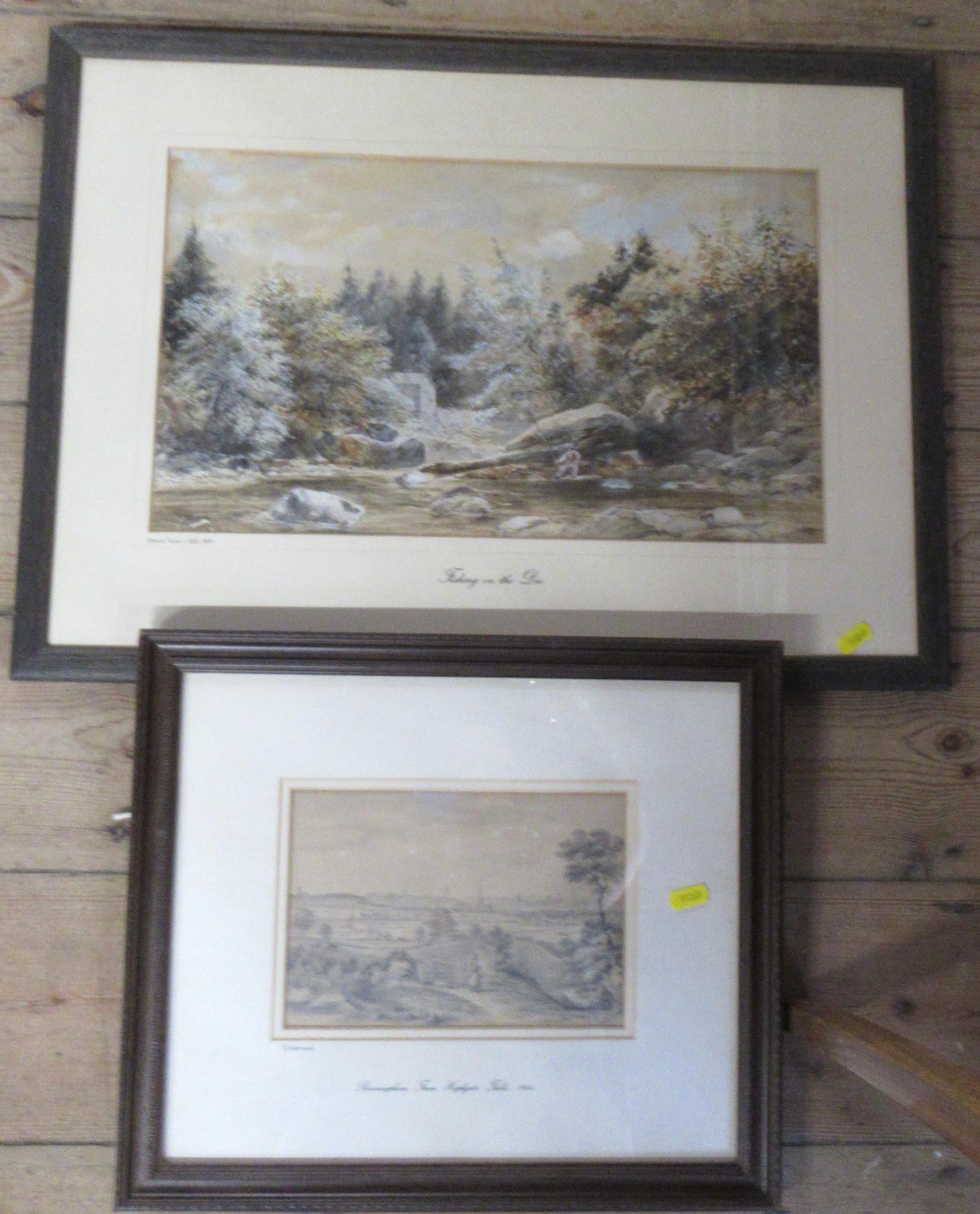 Edward Tucker, watercolour, Fishing on the Dee, 11insx 17.5ins, together with T Underwood, watercolour, Birmingham from Highgates Feld, 1844, 6ins x 8.25ins
