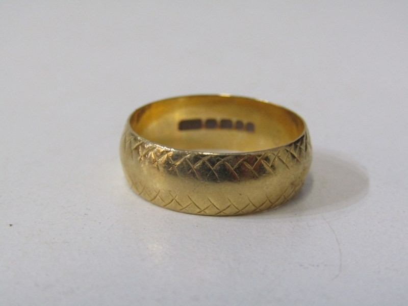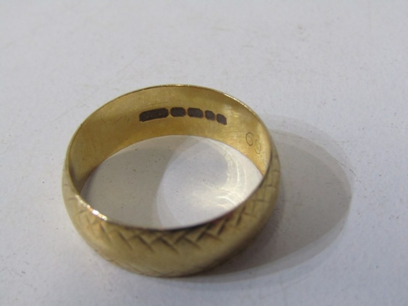 18ct GOLD BAND RING, 18ct yellow gold band ring with engraved decoration, size O, 4.5 grams