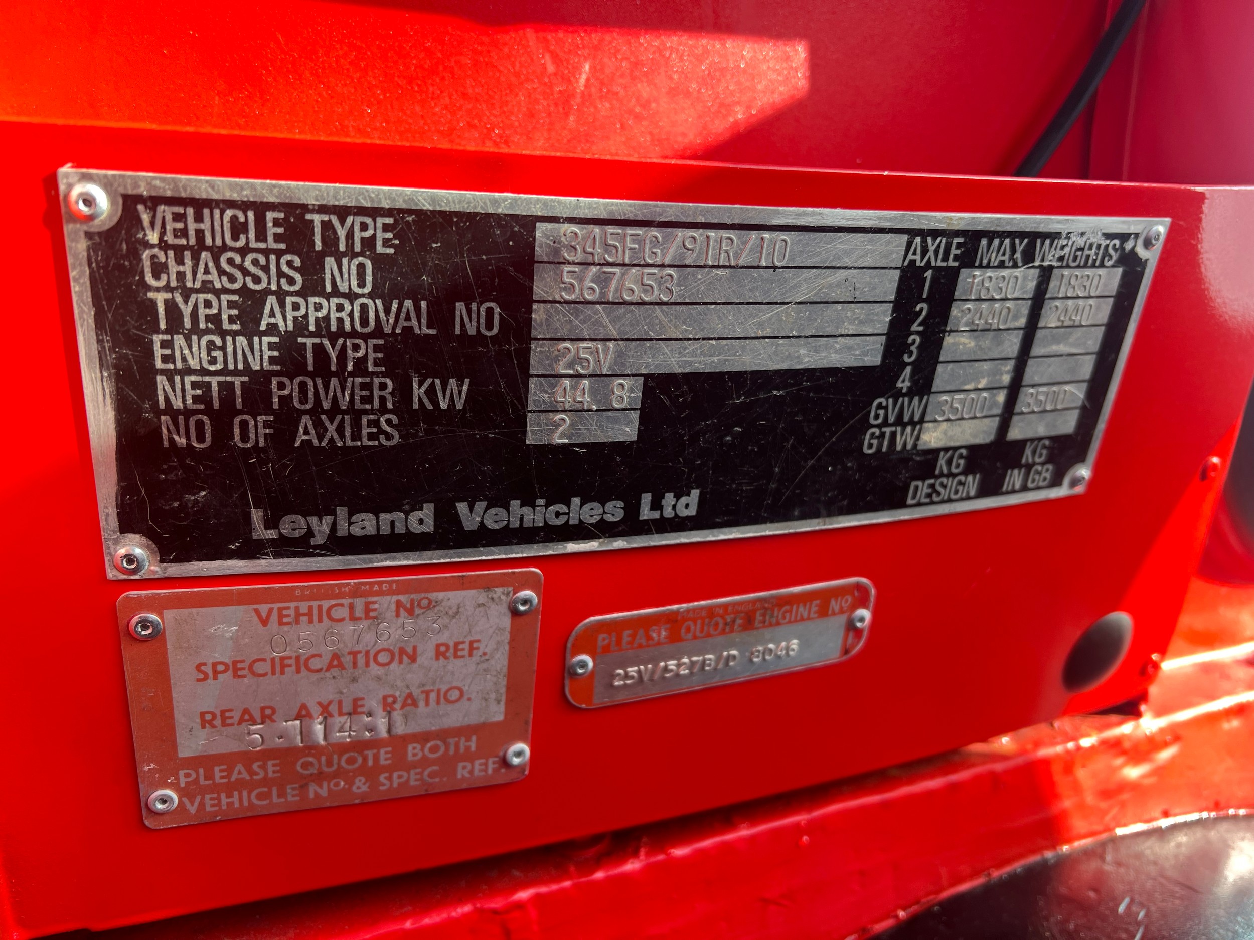 1981 Leyland FG 345 lorry, showing 96,000 miles, drove to the sale site from Dublin. Runs well. Fully restored including upholstery. Buff VRC