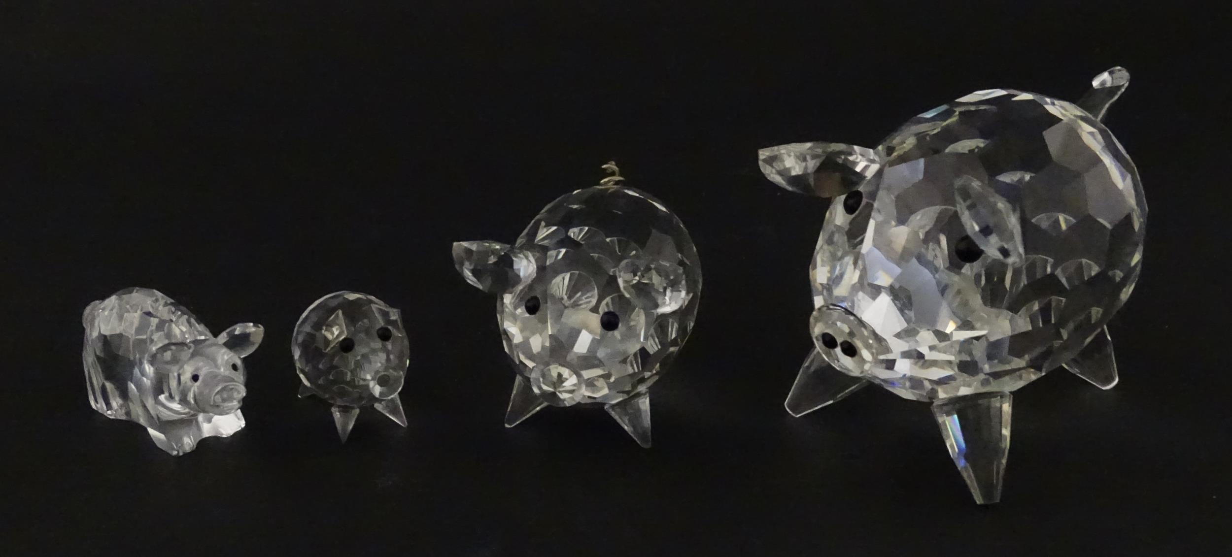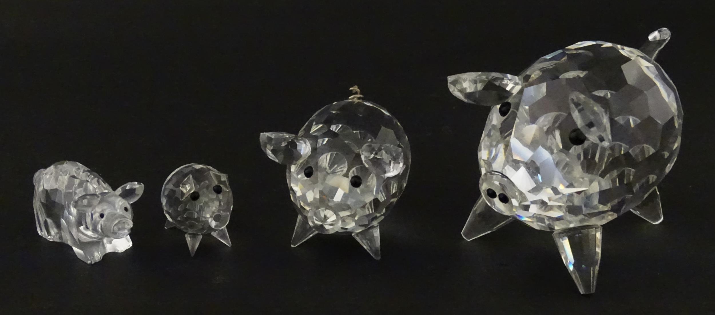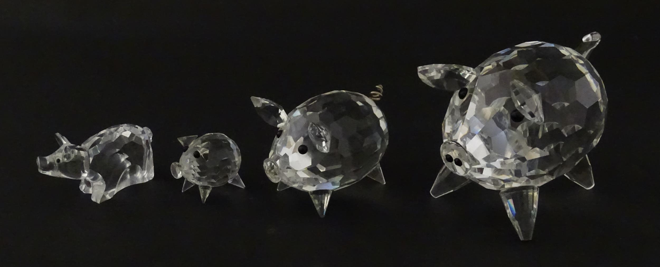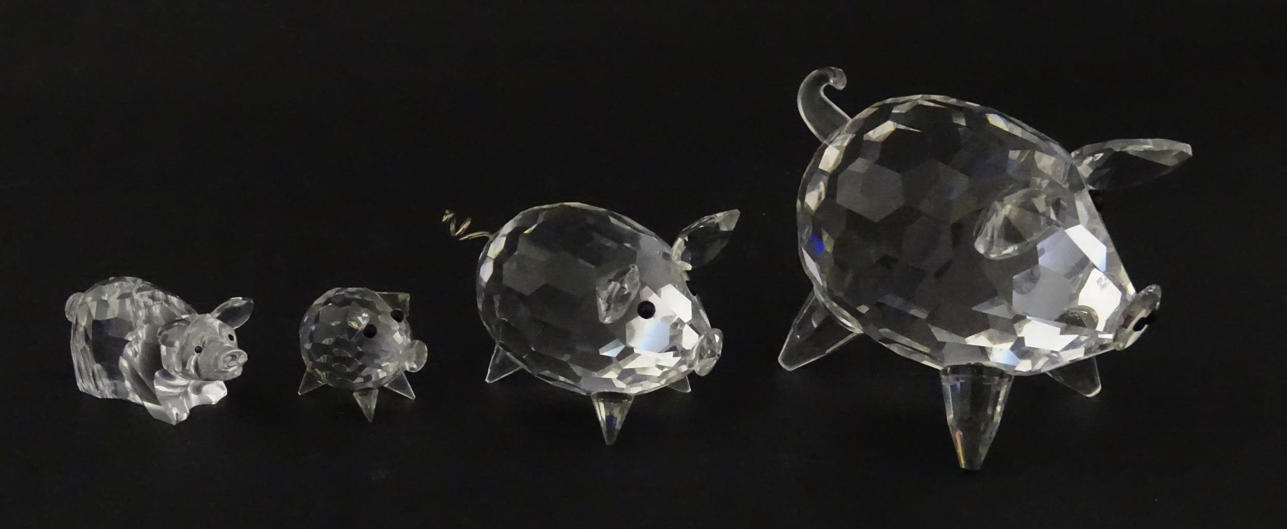 Four Swarovski crystal models of pigs. Largest approx. 2 3/4" long (4)