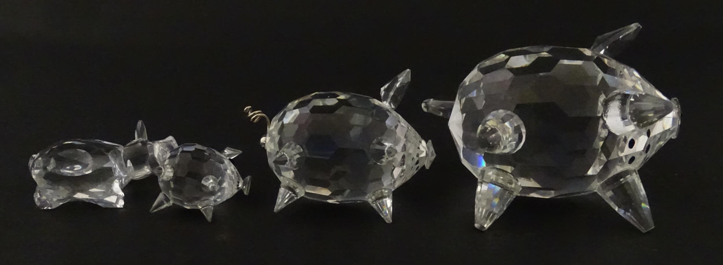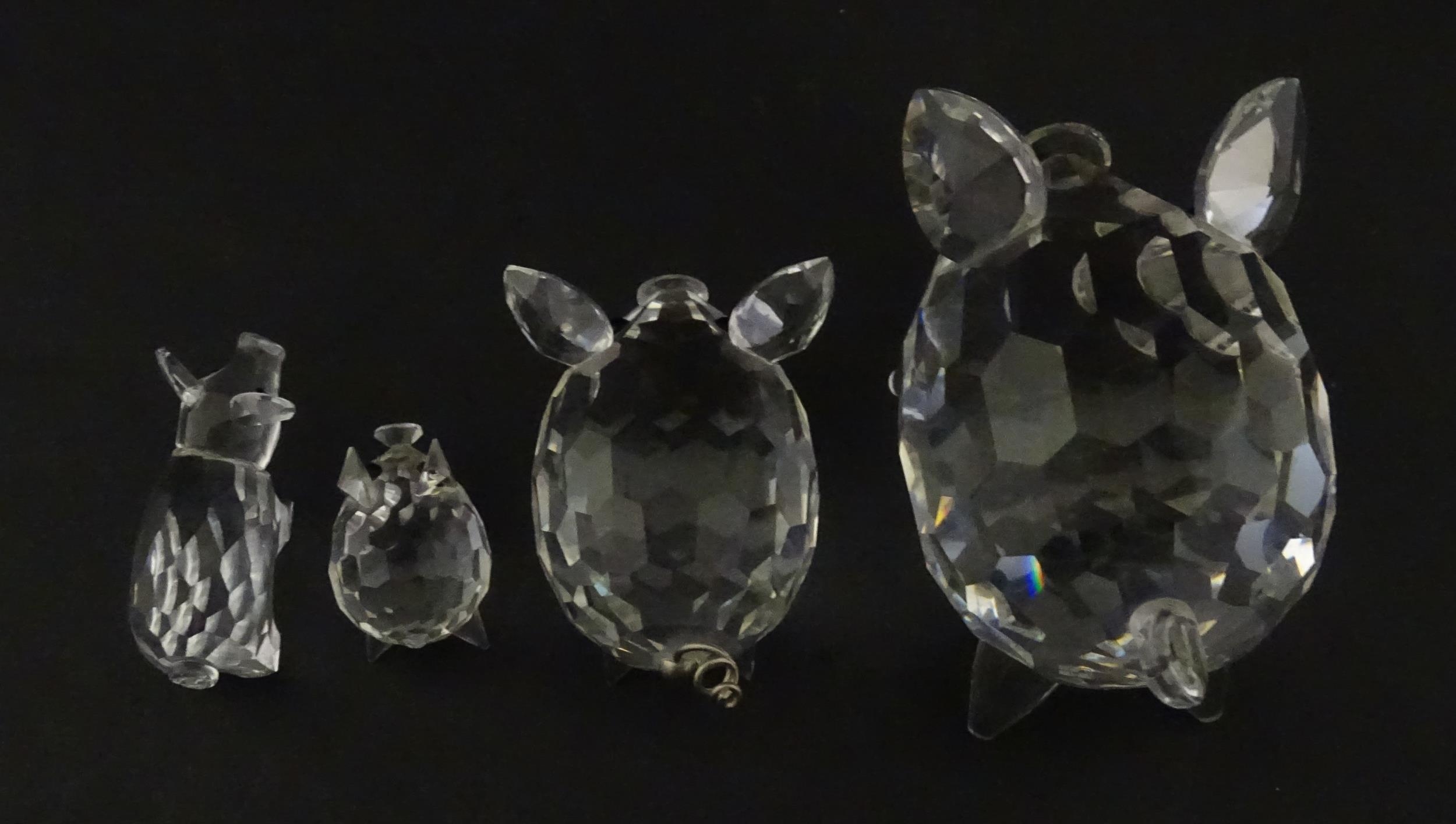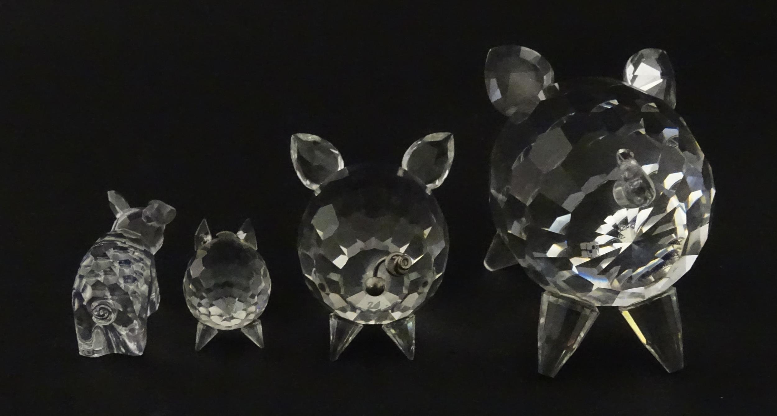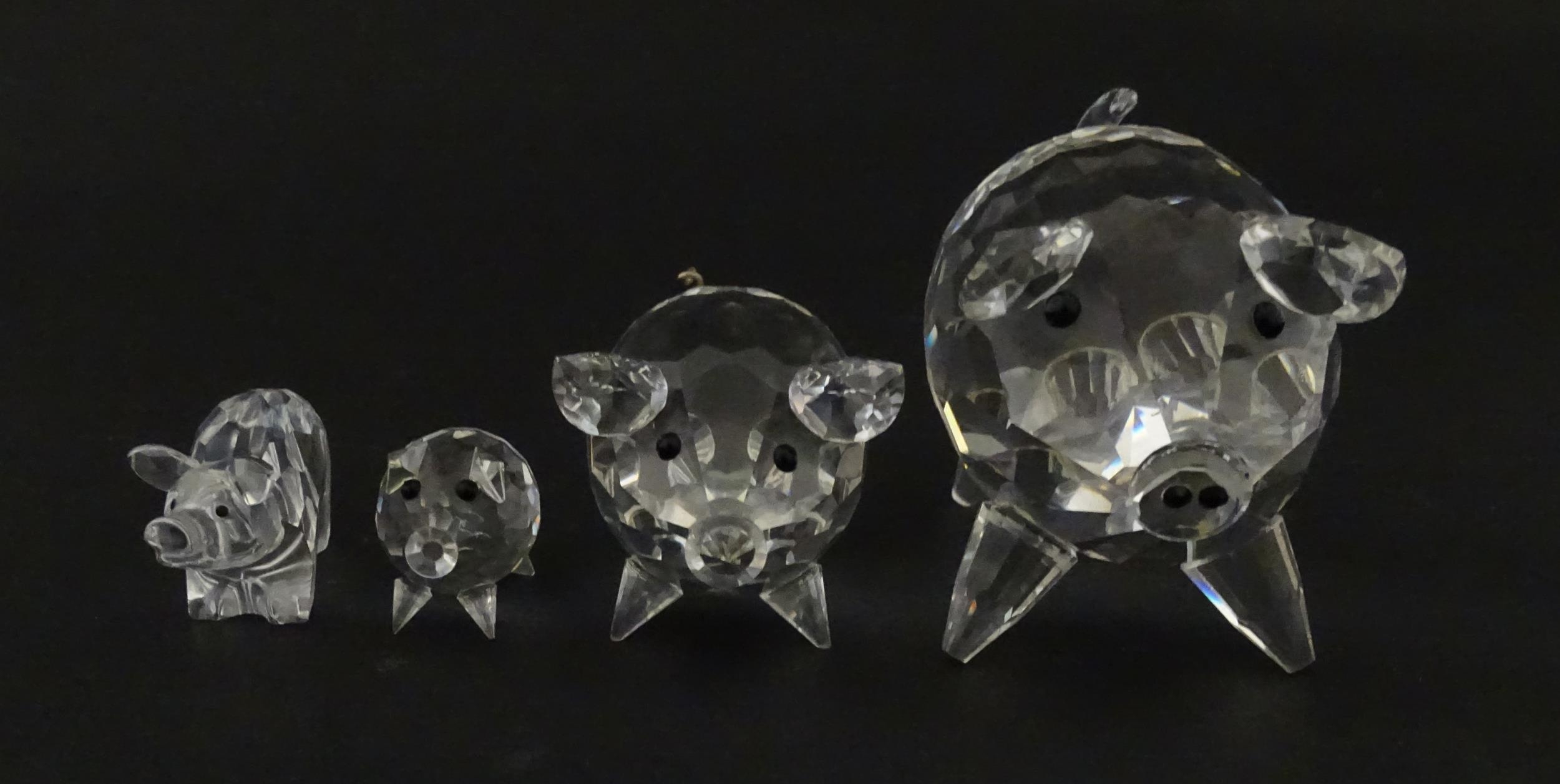 Four Swarovski crystal models of pigs. Largest approx. 2 3/4" long (4)