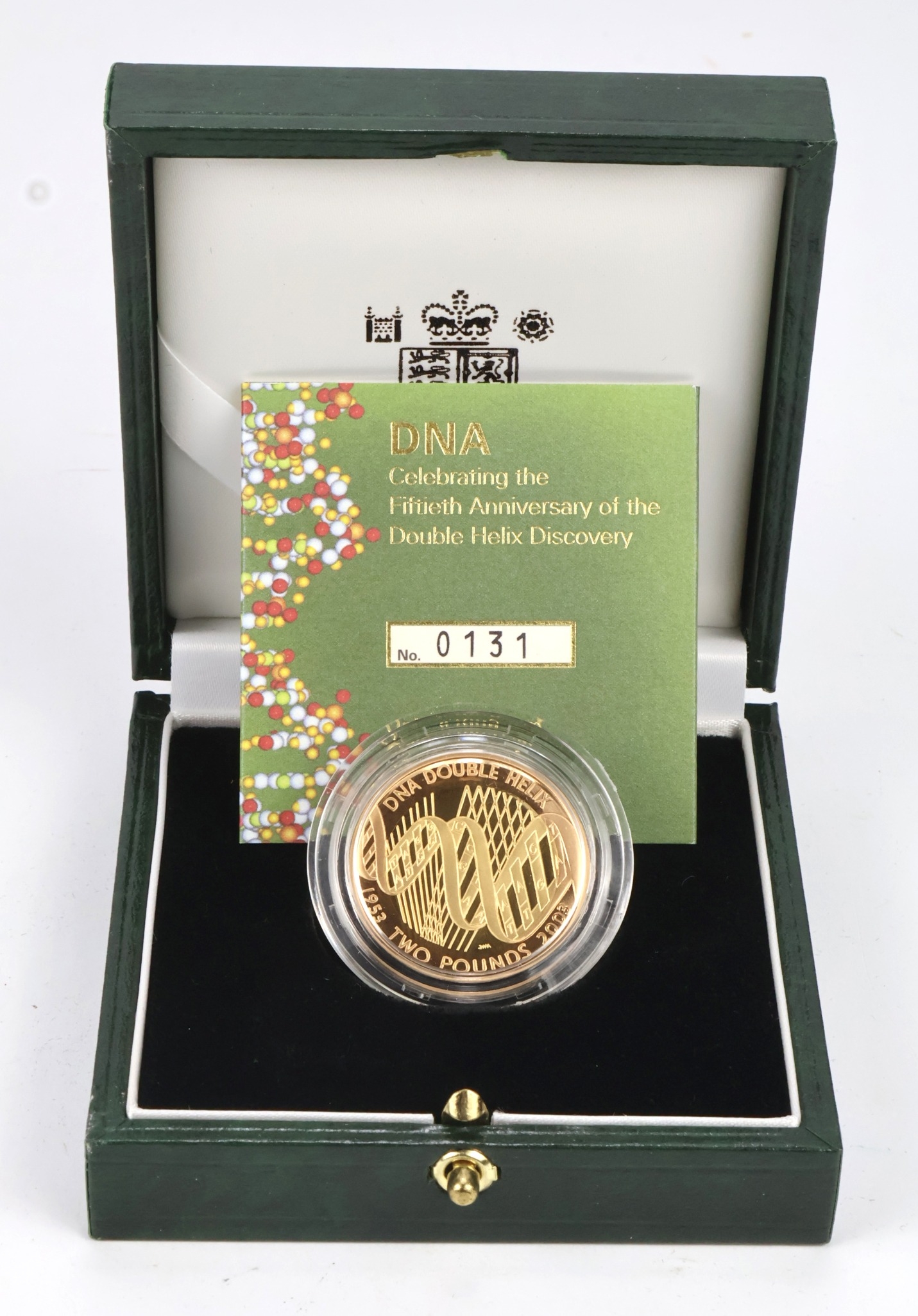 Two Pounds 2003 "DNA" gold proof FDC boxed as issued