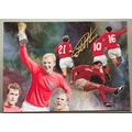 Geoff Hurst 1966 World Cup football hero signed 12 x 8 inch colour montage photo. Sir Geoffrey Charles Hurst (born 8 December 1941) is an English former professional footballer. A striker, he became the first player to score a hat-trick in a World Cup final, as England recorded a 42 victory over West Germany at Wembley in 1966. With the death of Sir Bobby Charlton in October 2023, Hurst became the last living player from the team that won the 1966 final. Hurst began his career with West Ham United, where he scored 242 goals in 500 first team appearances. There he won the FA Cup in 1964 and the European Cup Winners' Cup in 1965. He was sold to Stoke City in 1972 for £80,000. After three seasons with Stoke, where he won the Watney Cup in 1973,[5] he finished his Football League career with West Bromwich Albion in 1976. Hurst went to play football in Ireland (Cork Celtic) and the United States (Seattle Sounders), before returning to England to manage non-league Telford United. He also coached in the England set-up before a two-year stint as Chelsea manager from 1979 to 1981. He later coached Kuwait SC, before leaving the game to concentrate on his business commitments. In total, Hurst scored 24 goals in 49 England appearances, and as well as success in the 1966 World Cup he also appeared at UEFA Euro 1968 and the 1970 FIFA World Cup. He also had a brief cricket career, making one first-class appearance for Essex in 1962, before concentrating on football.Good condition. All autographs come with a Certificate of Authenticity. We combine postage on multiple winning lots and can ship worldwide. UK postage from £5.99, EU from £7.99, Rest of World from £9.99