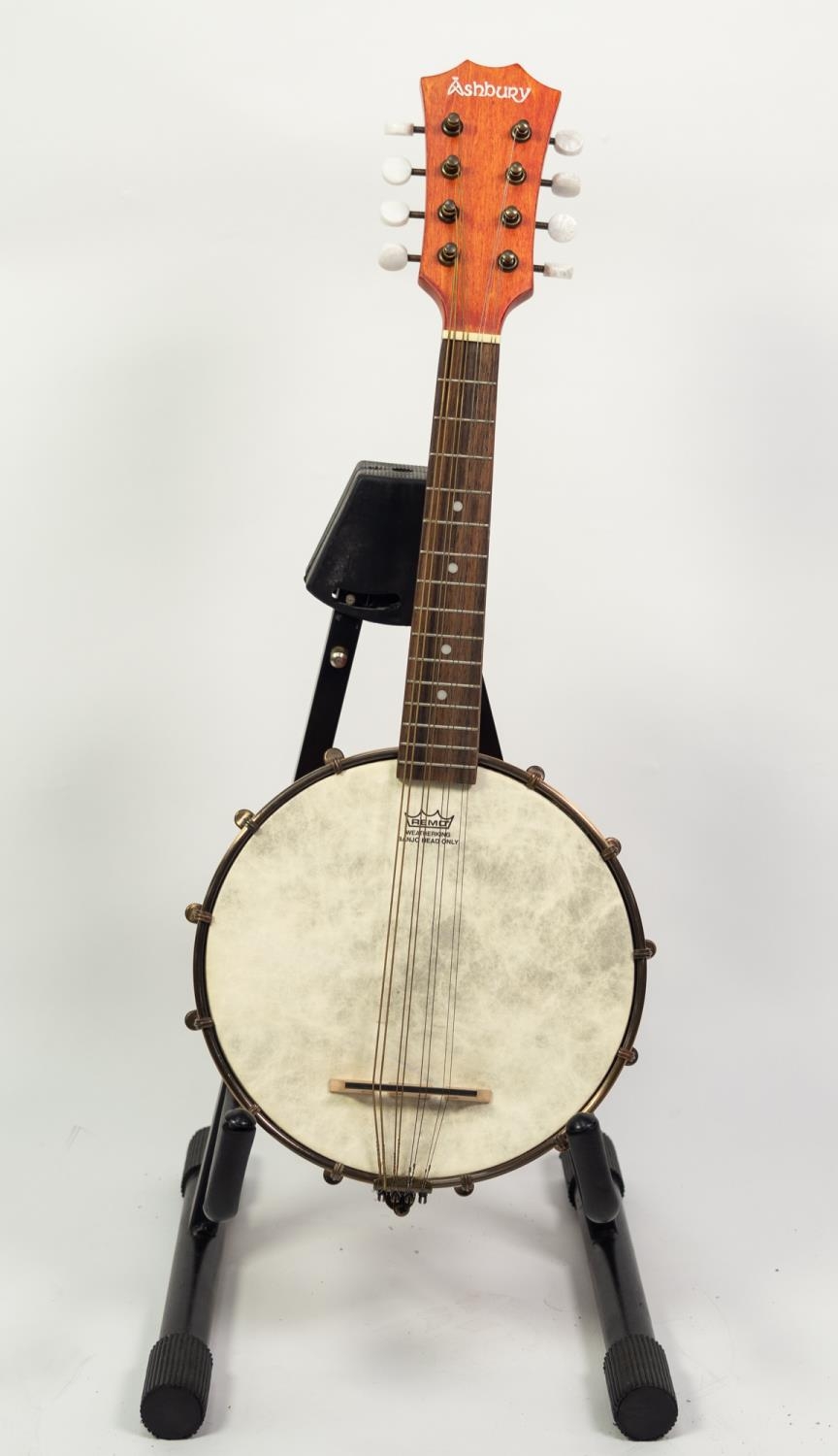ASHBURY AB-37M OPENBACK MANDOLIN BANJO, with stained maple rim and neck and fifteen frets to the fingerboard, in and oversized VIKING soft black case
