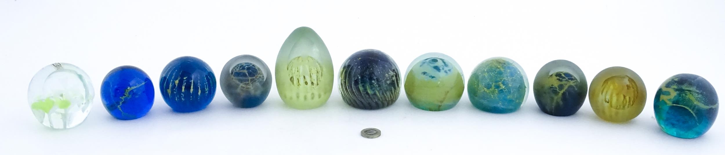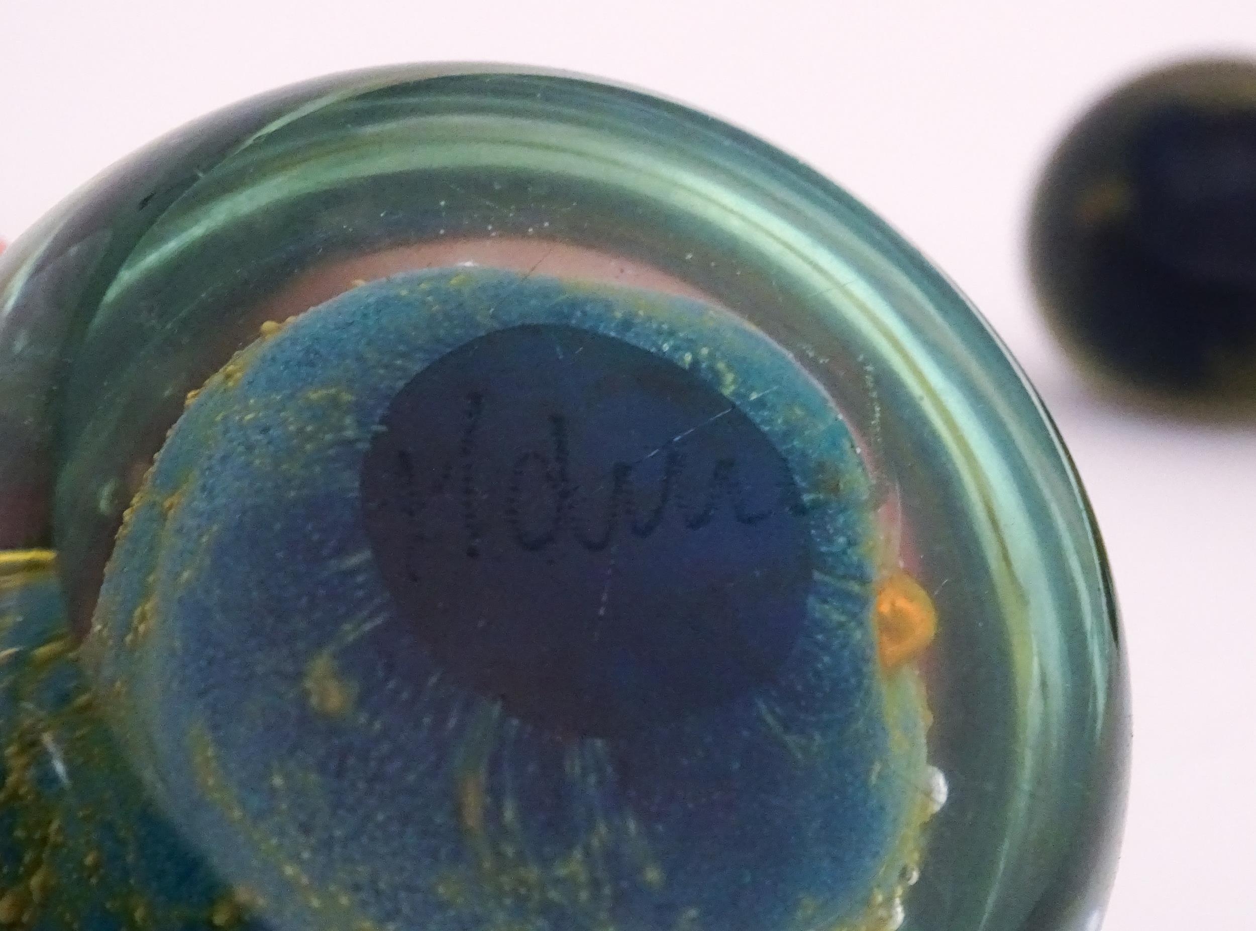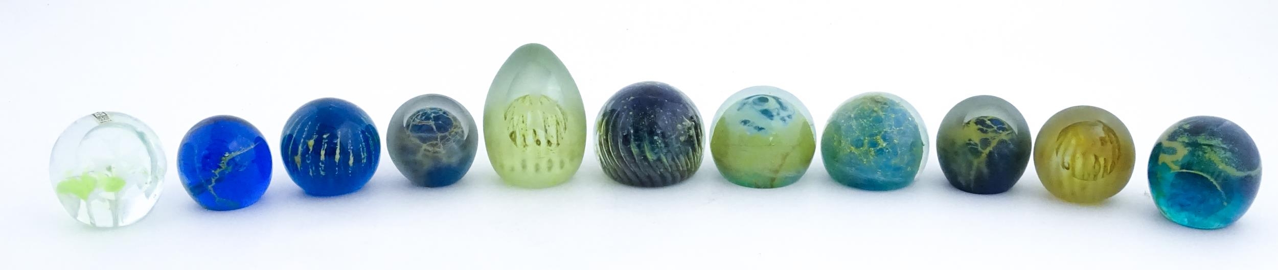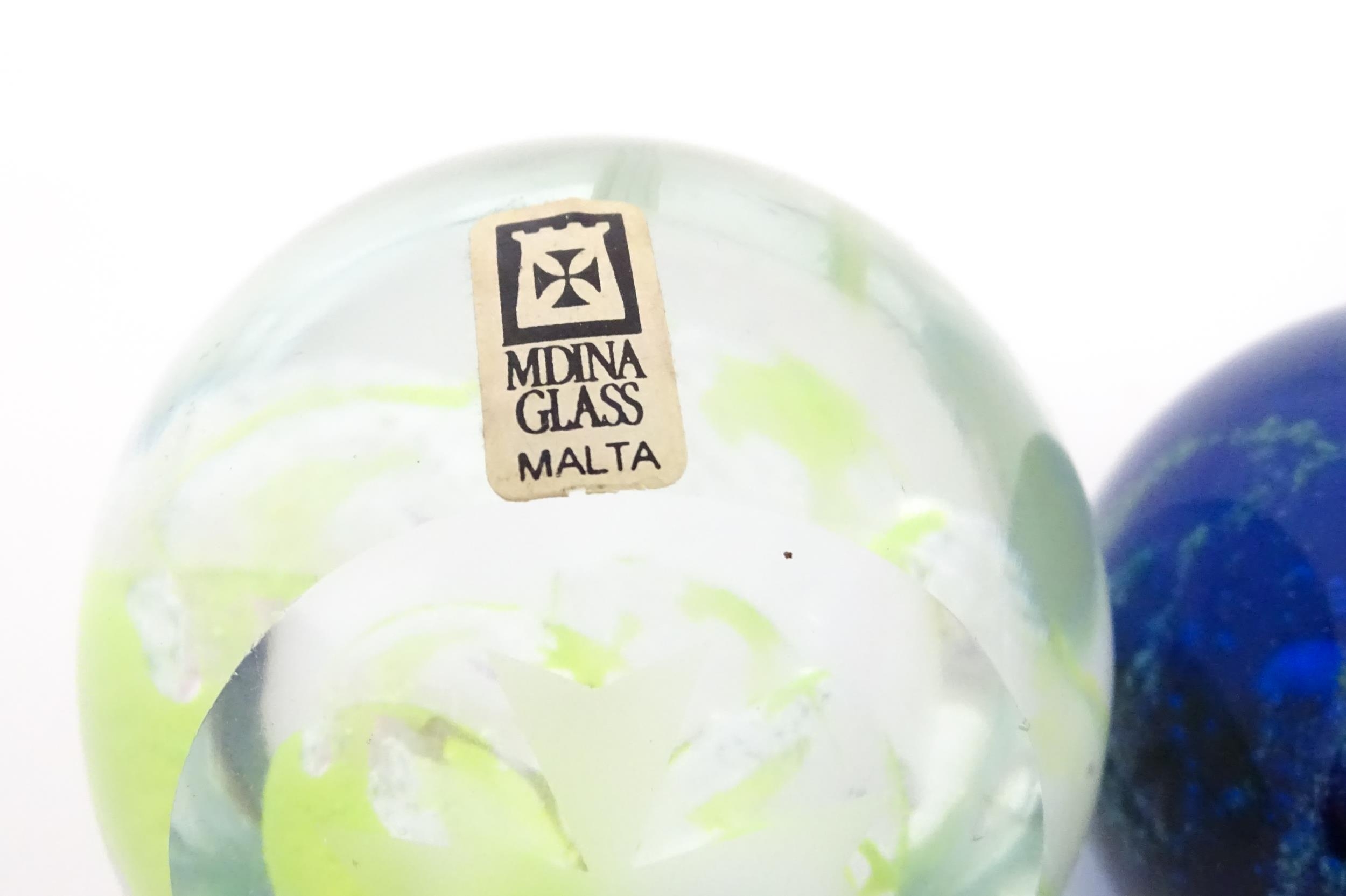 Maltese glass : A quantity of assorted glass paperweights, some with stylised sea urchin decoration. Many signed Mdina, Largest approx 4" high (11)