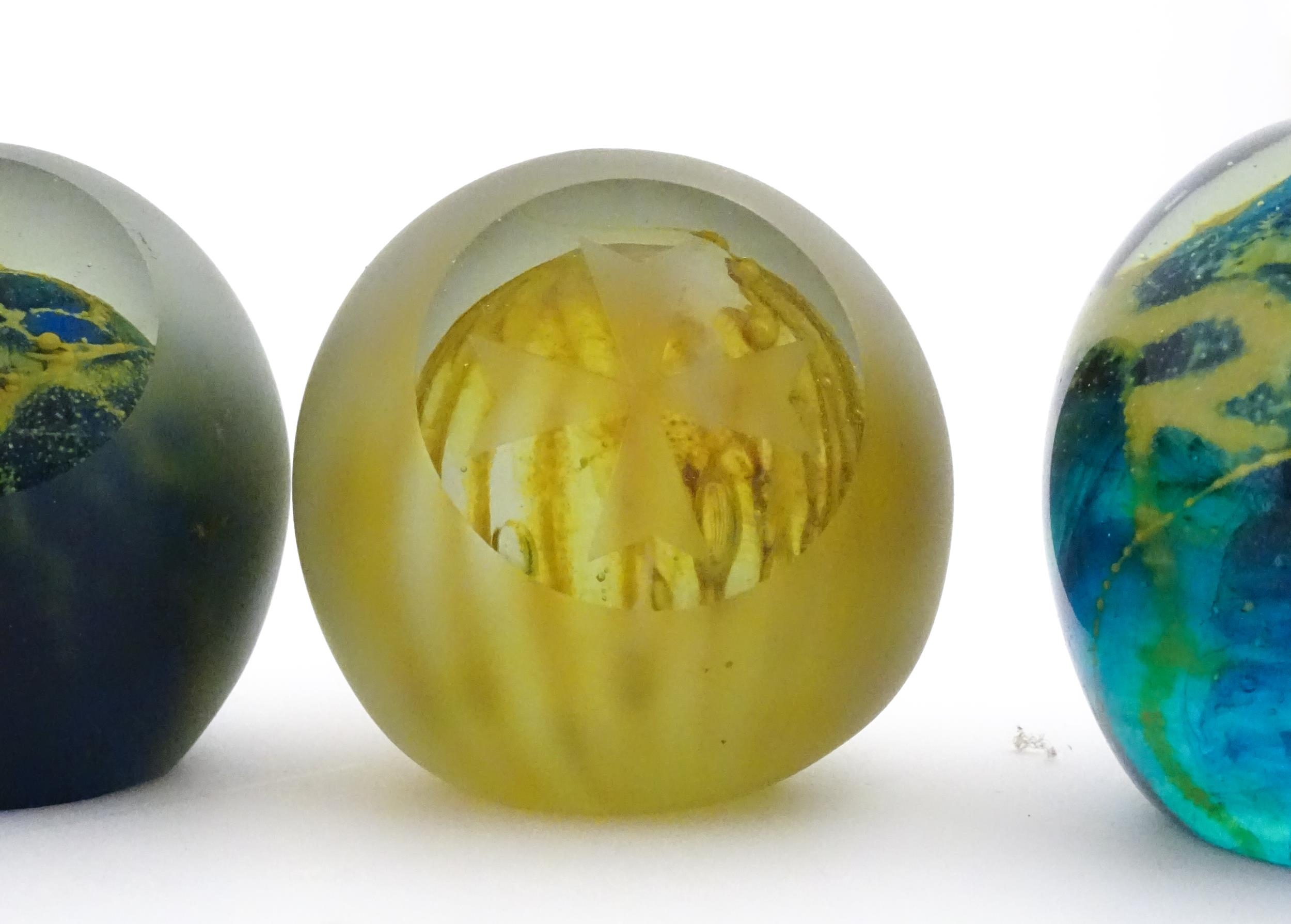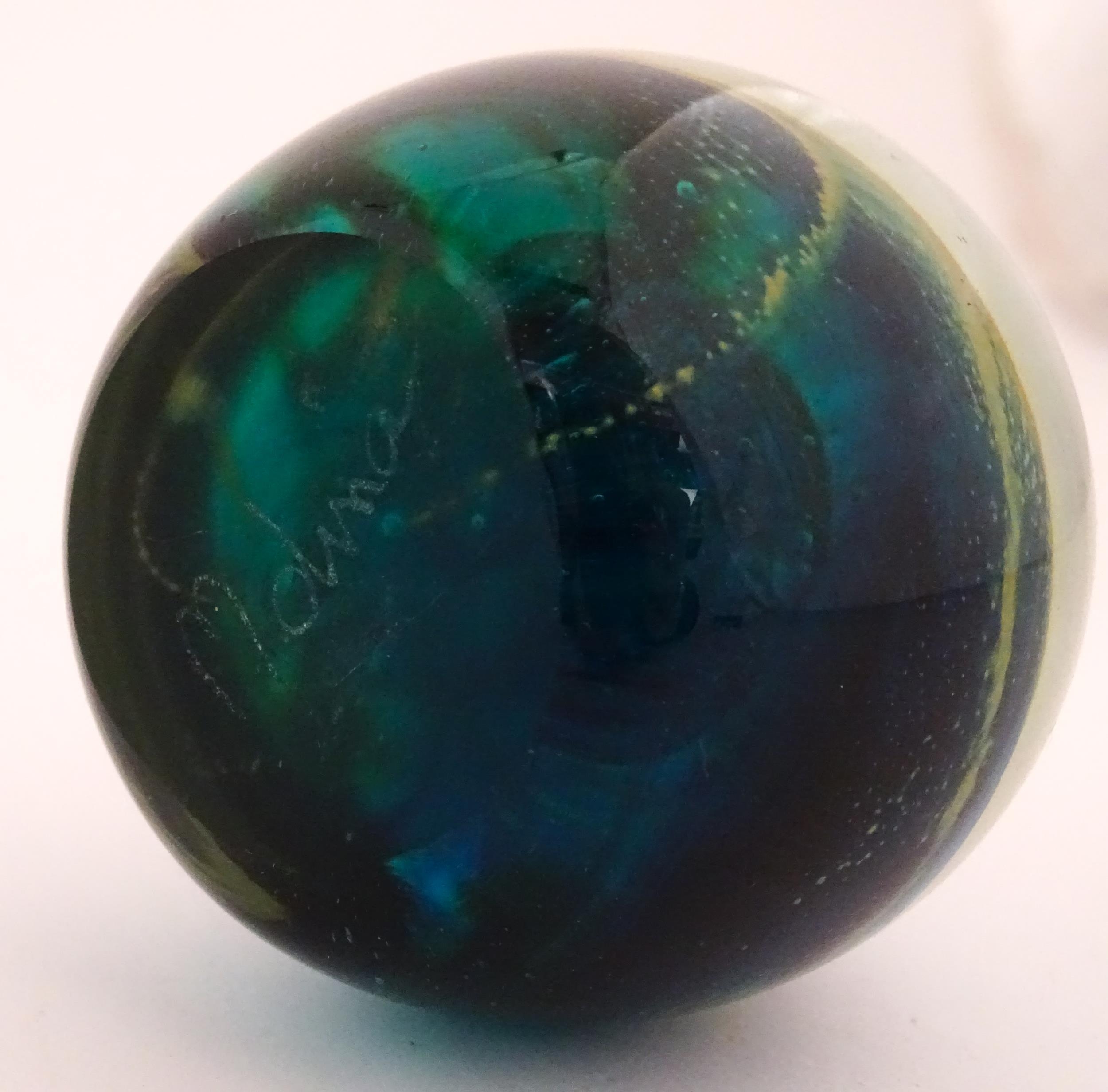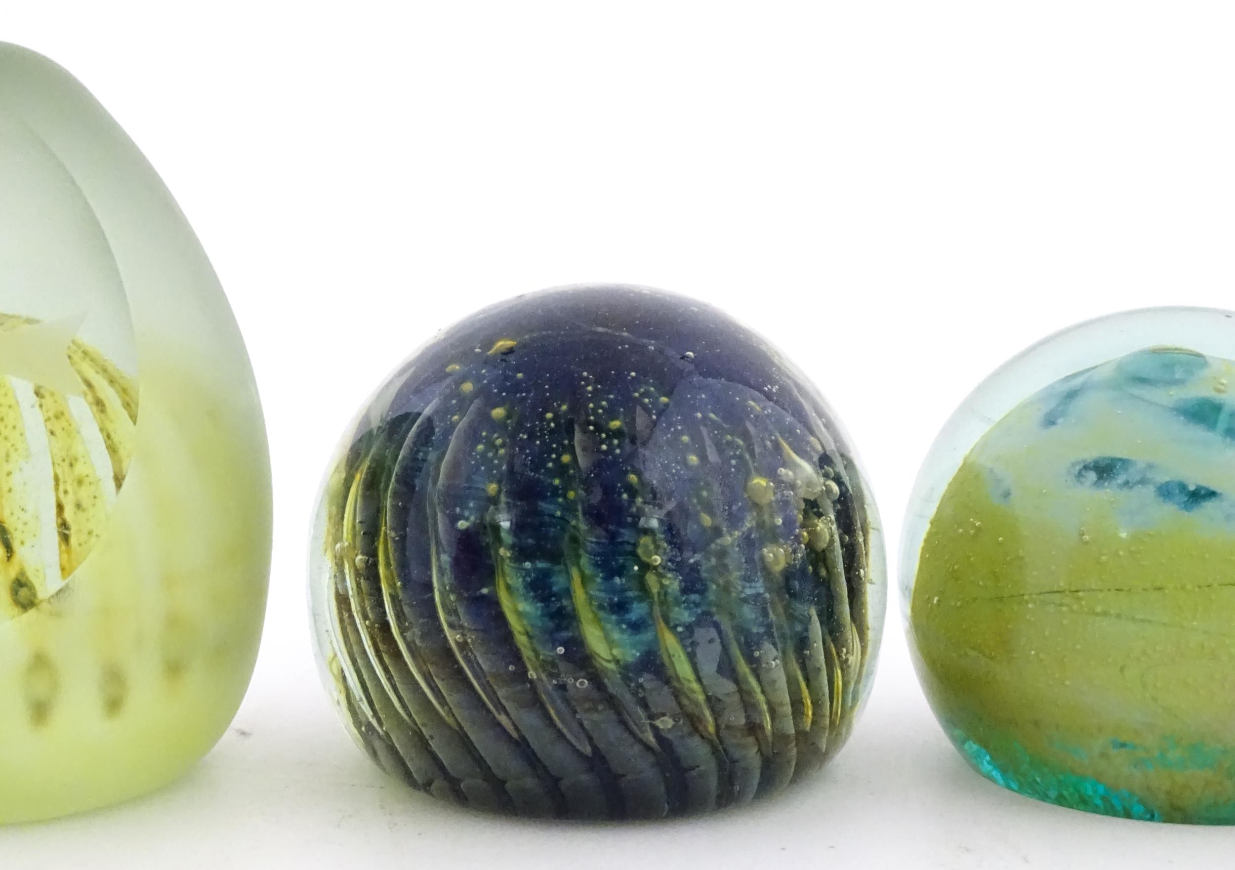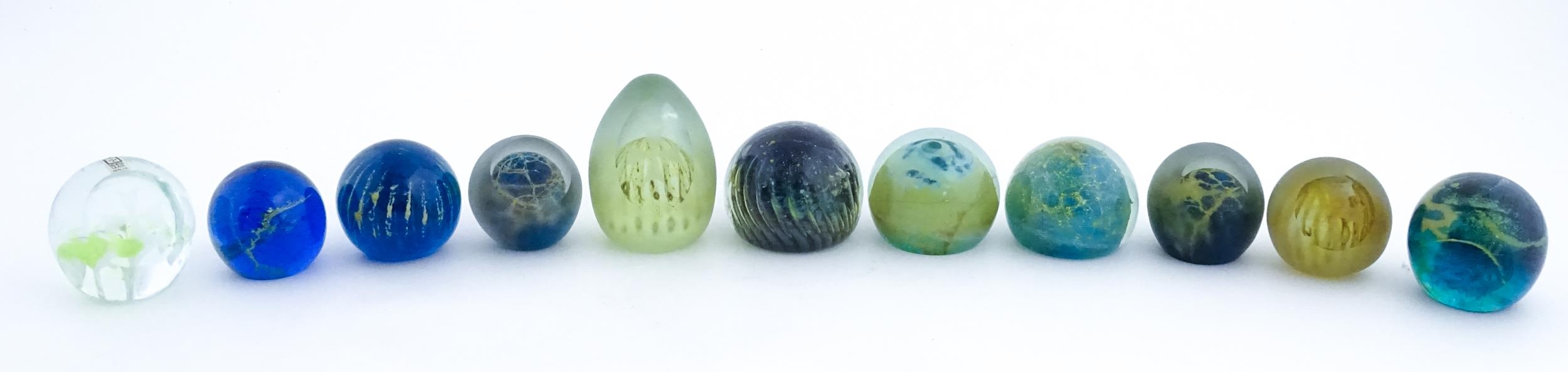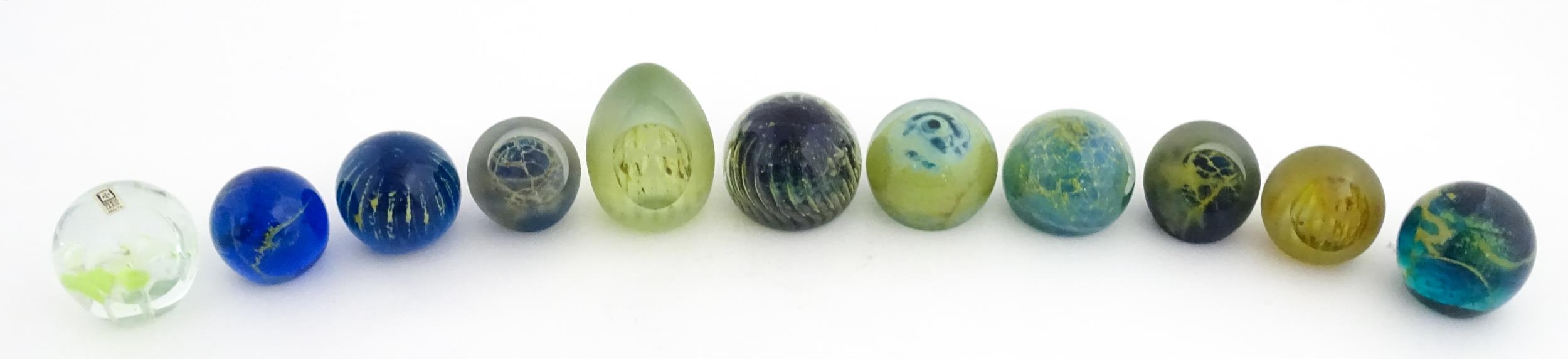 Maltese glass : A quantity of assorted glass paperweights, some with stylised sea urchin decoration. Many signed Mdina, Largest approx 4" high (11)