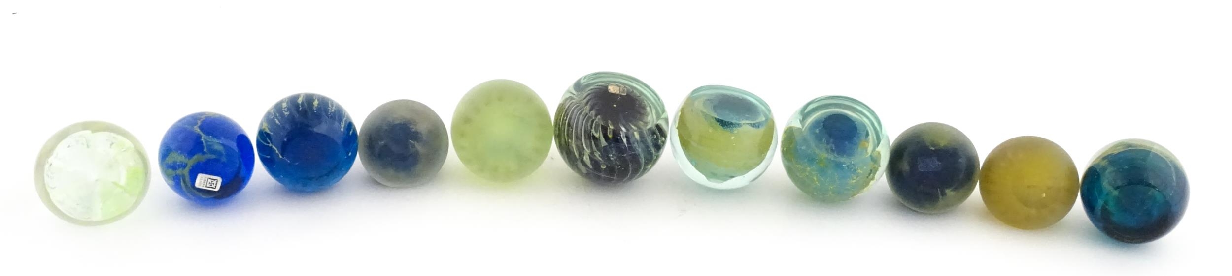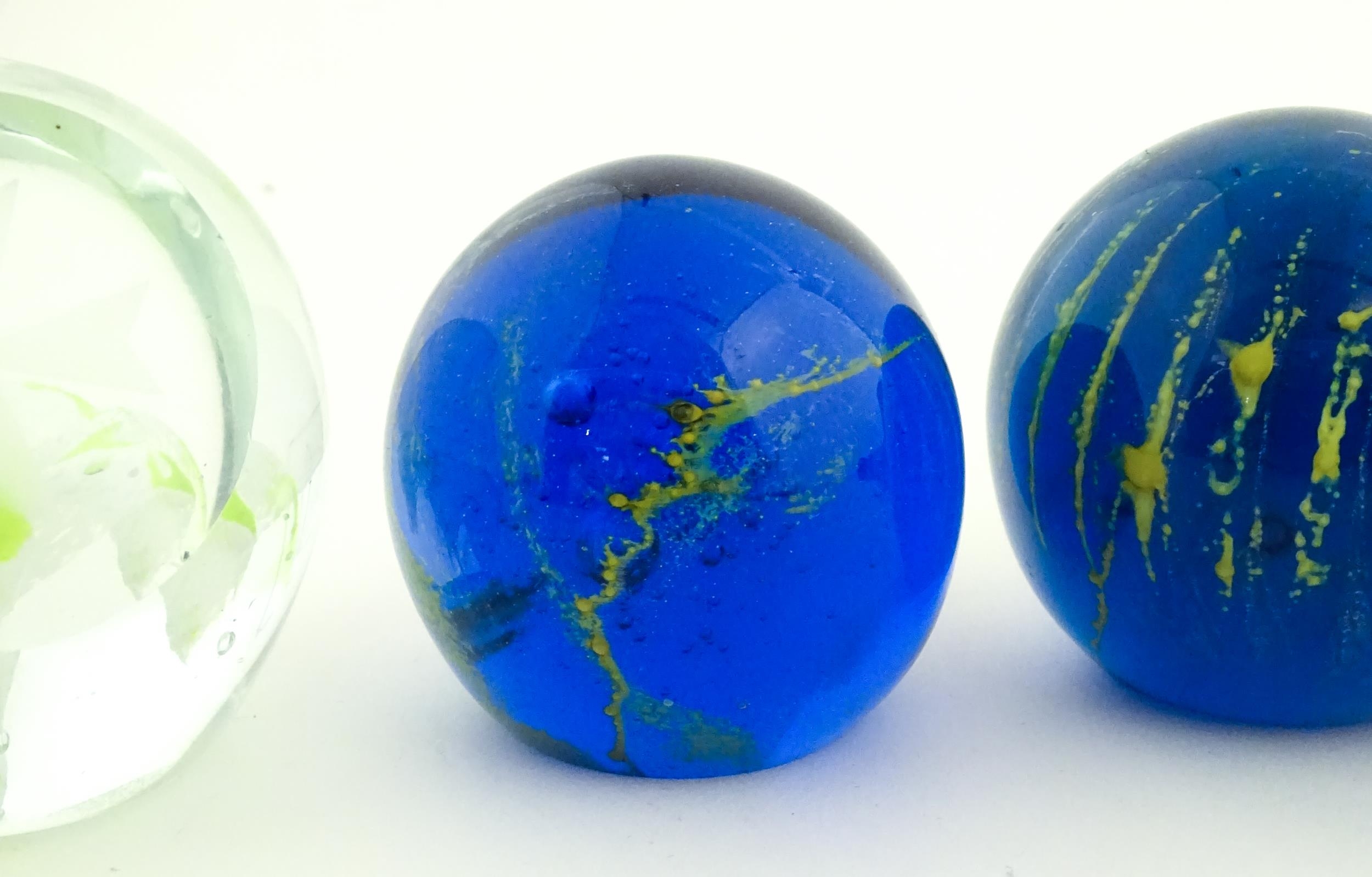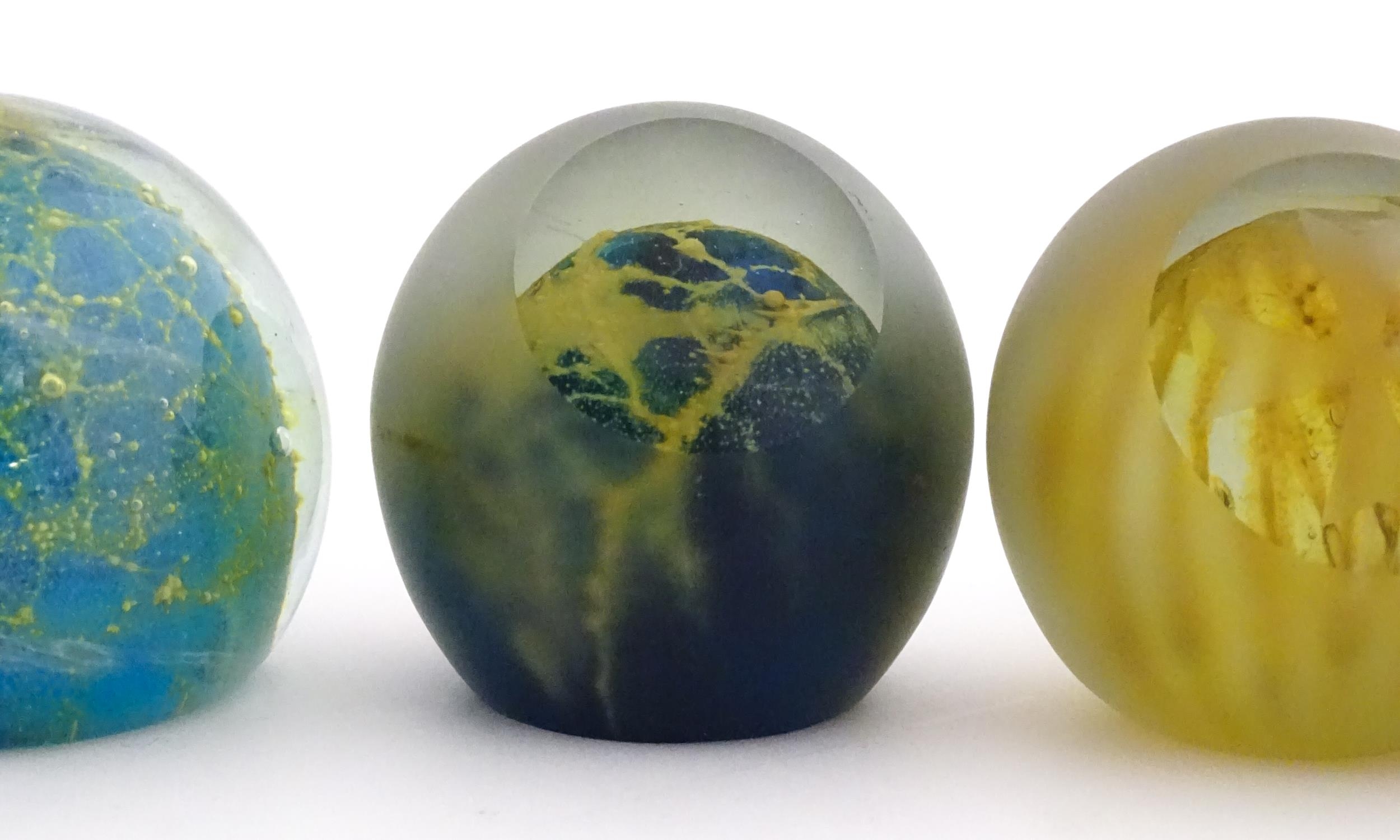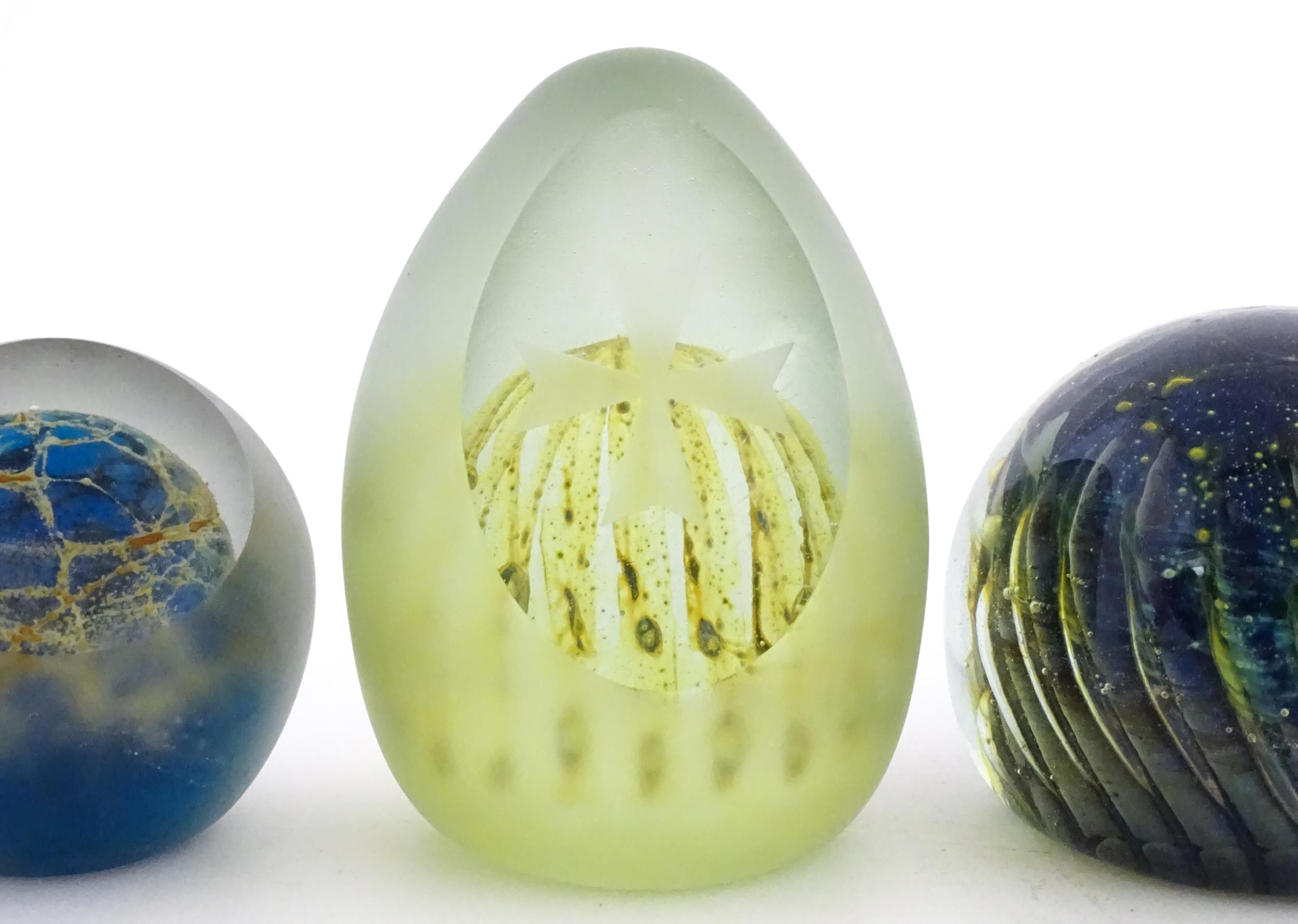 Maltese glass : A quantity of assorted glass paperweights, some with stylised sea urchin decoration. Many signed Mdina, Largest approx 4" high (11)