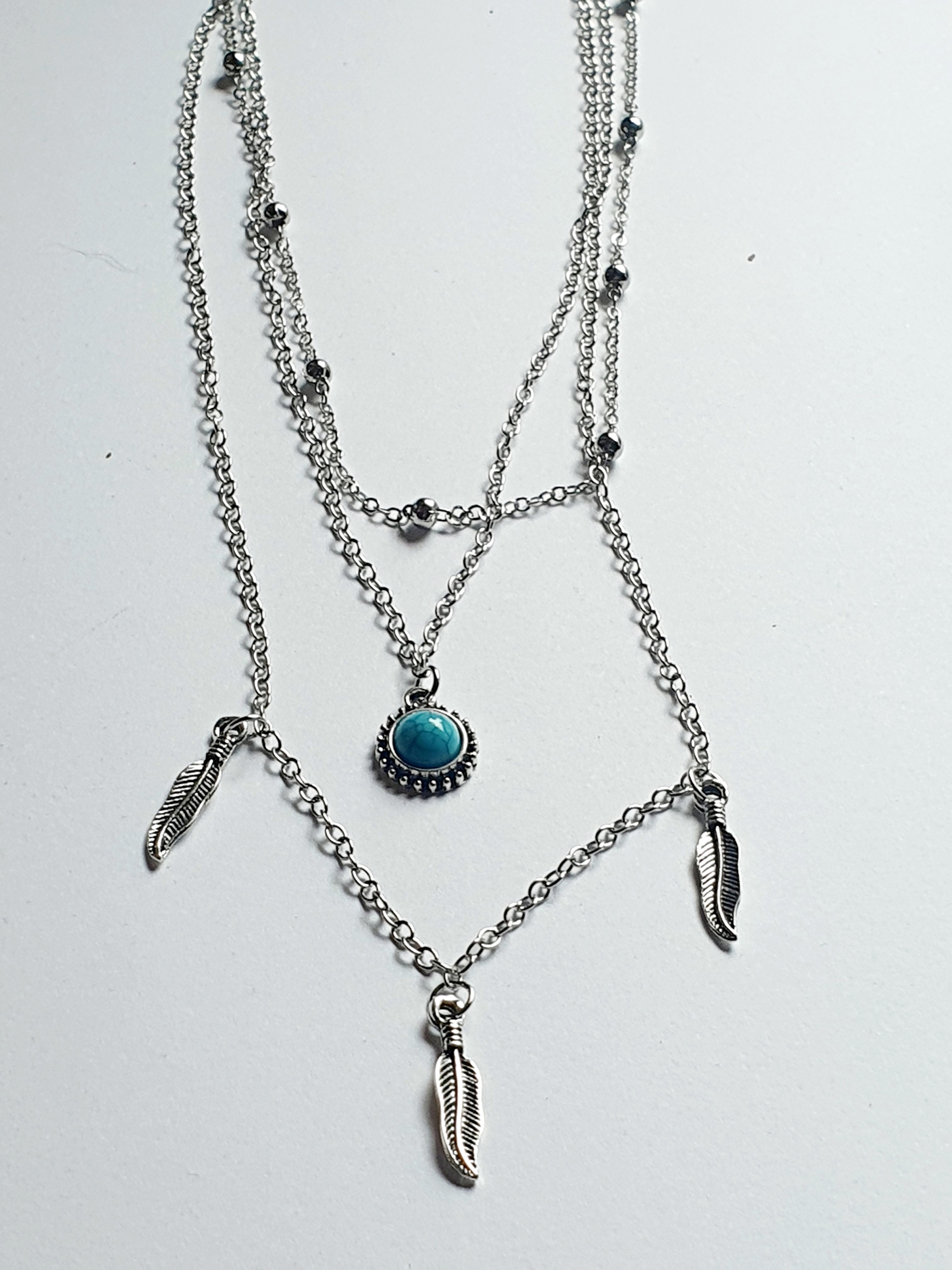 Beautiful Layered Leaf & Teal Stone Pendant Chain
