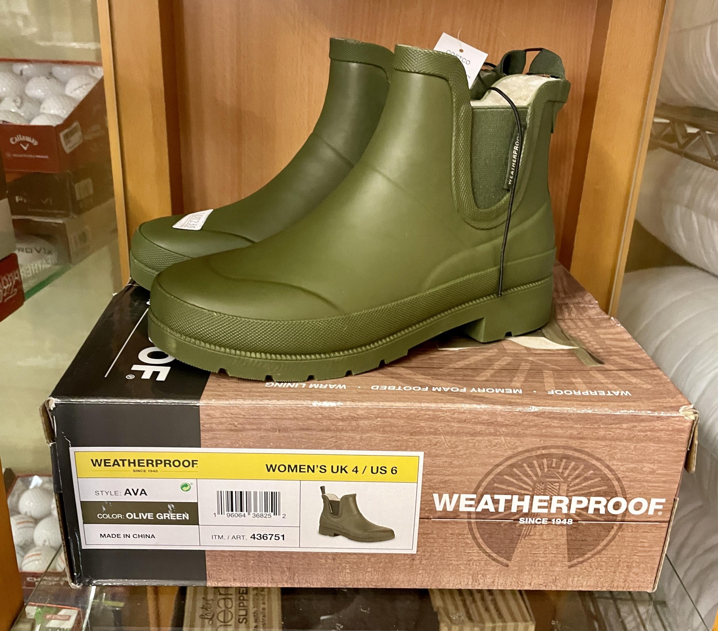BOXED PAIR OF WEATHERPROOF LADIES WATERPROOF ANKLE BOOTS - OLIVE GREEN - UK 4