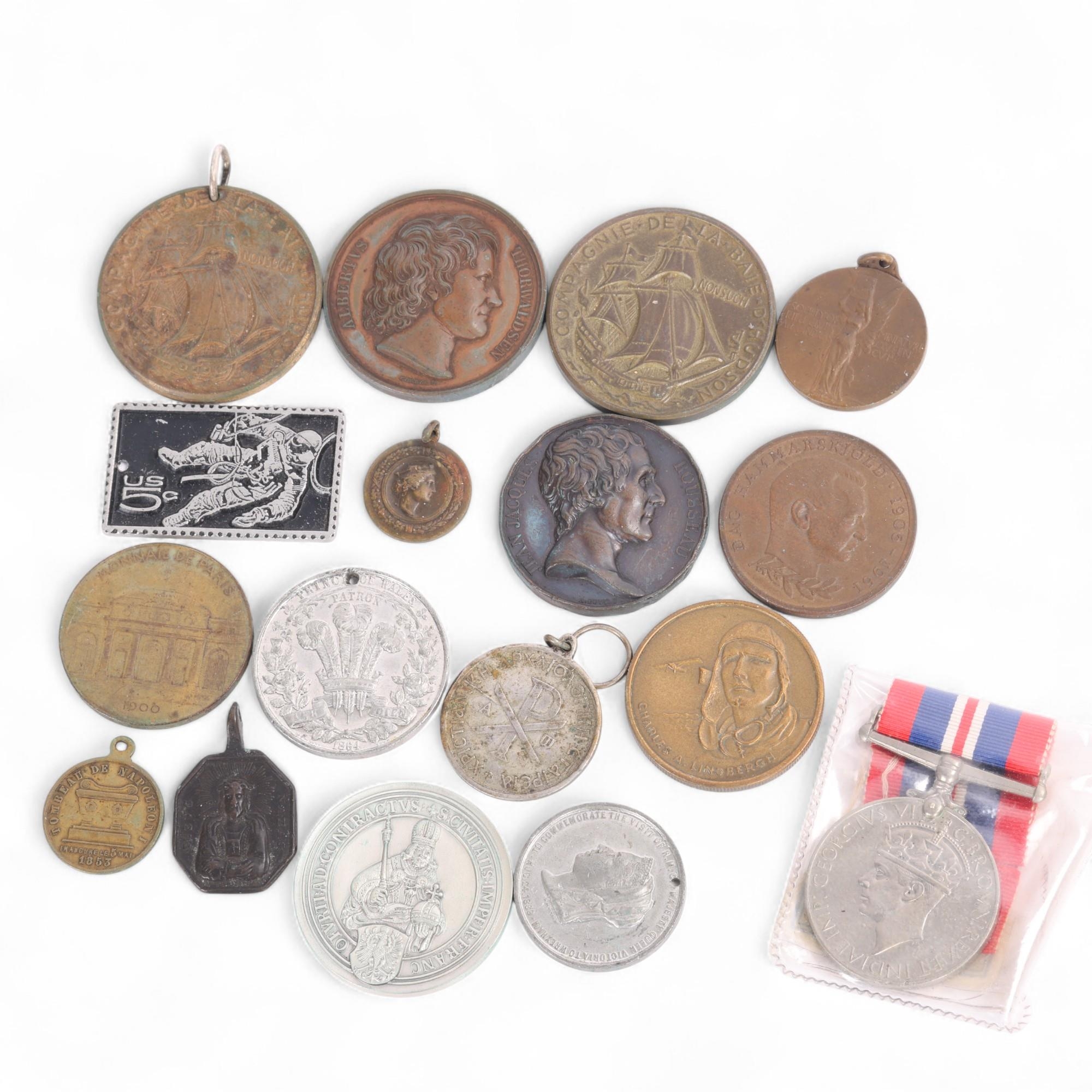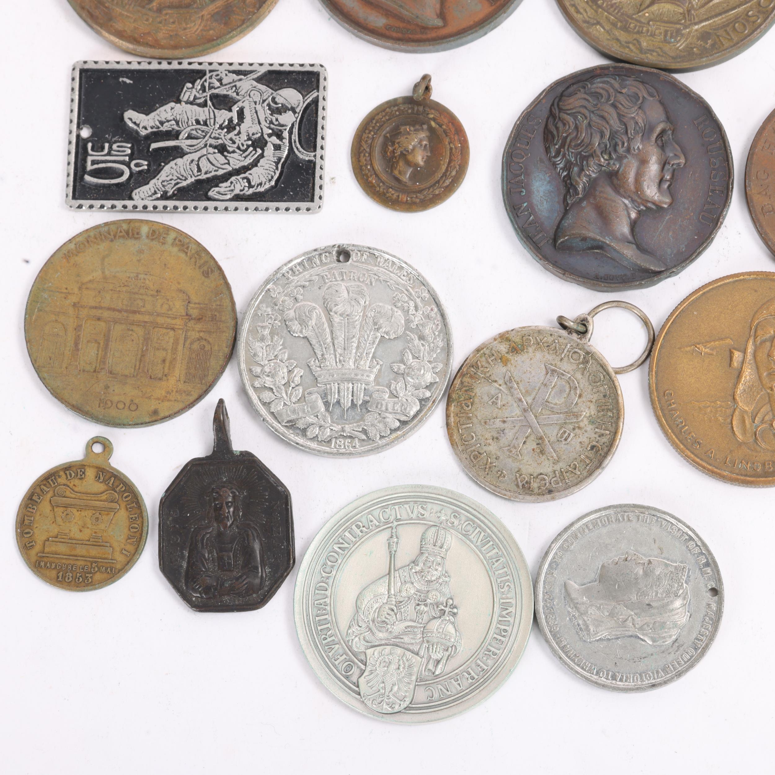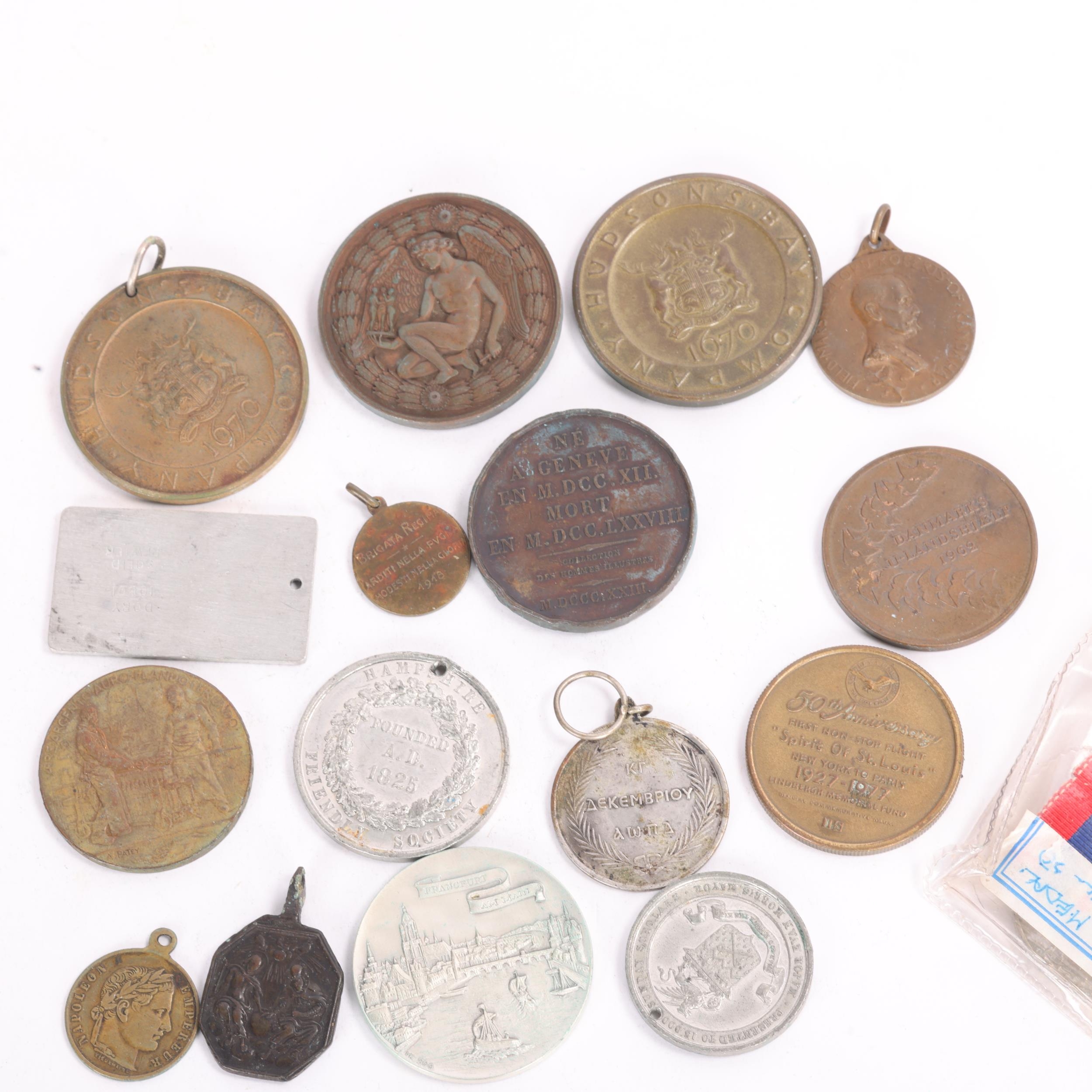 A collection of commemorative coins and medals, including Hudson Bay Company, Jean Jacques Rousseau, Charles Lindbergh etc. (17)