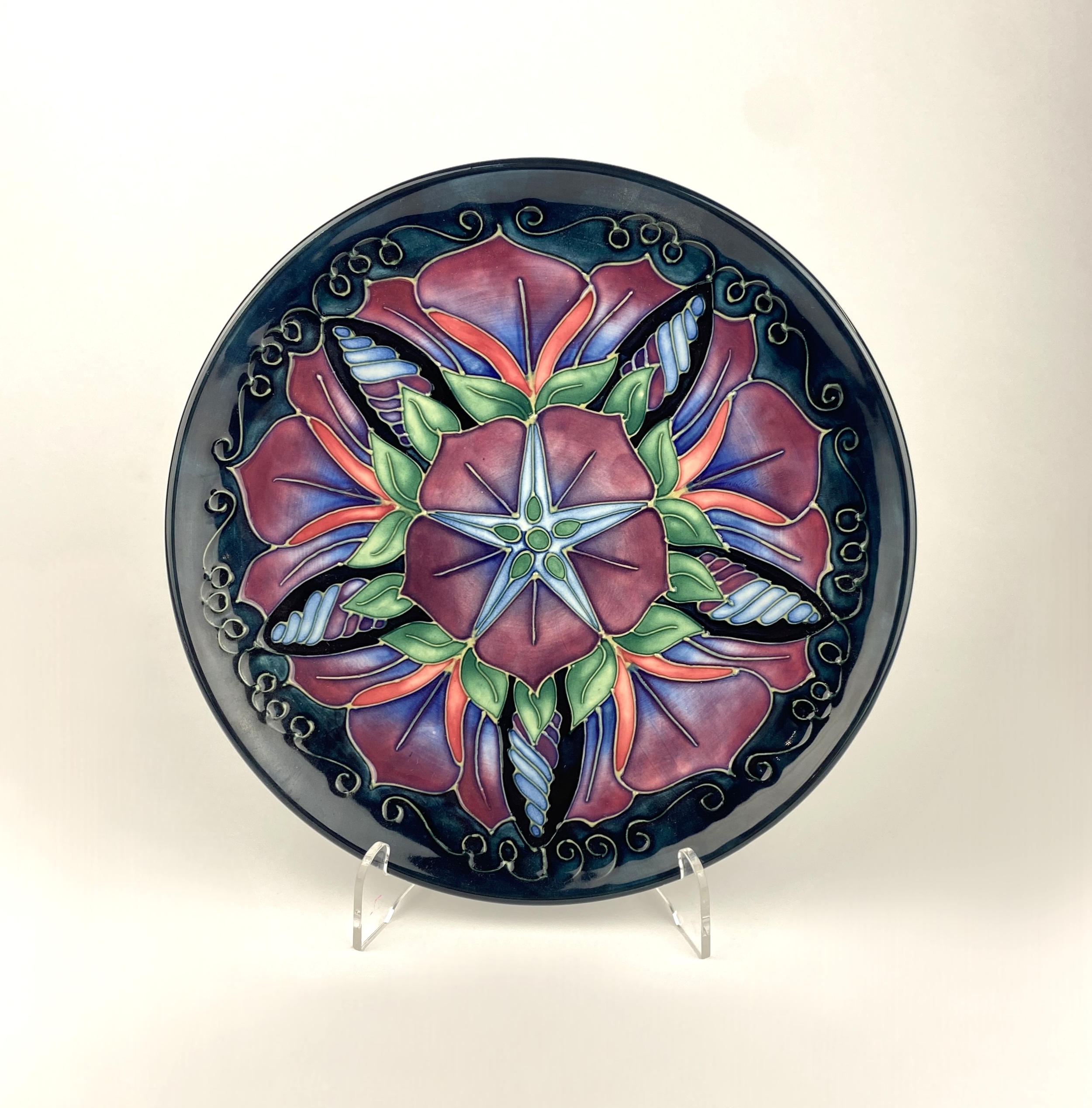 A Moorcroft pottery 'Morning Glory' pattern limited edition plate, numbered 475/500, 21.5cm diameter