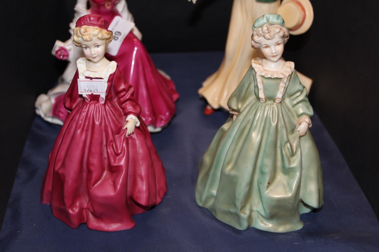 Royal Worcester figures Margaret, Ruby Wedding Anniversary, Grandmothers Dress by F G Doughty, and another.