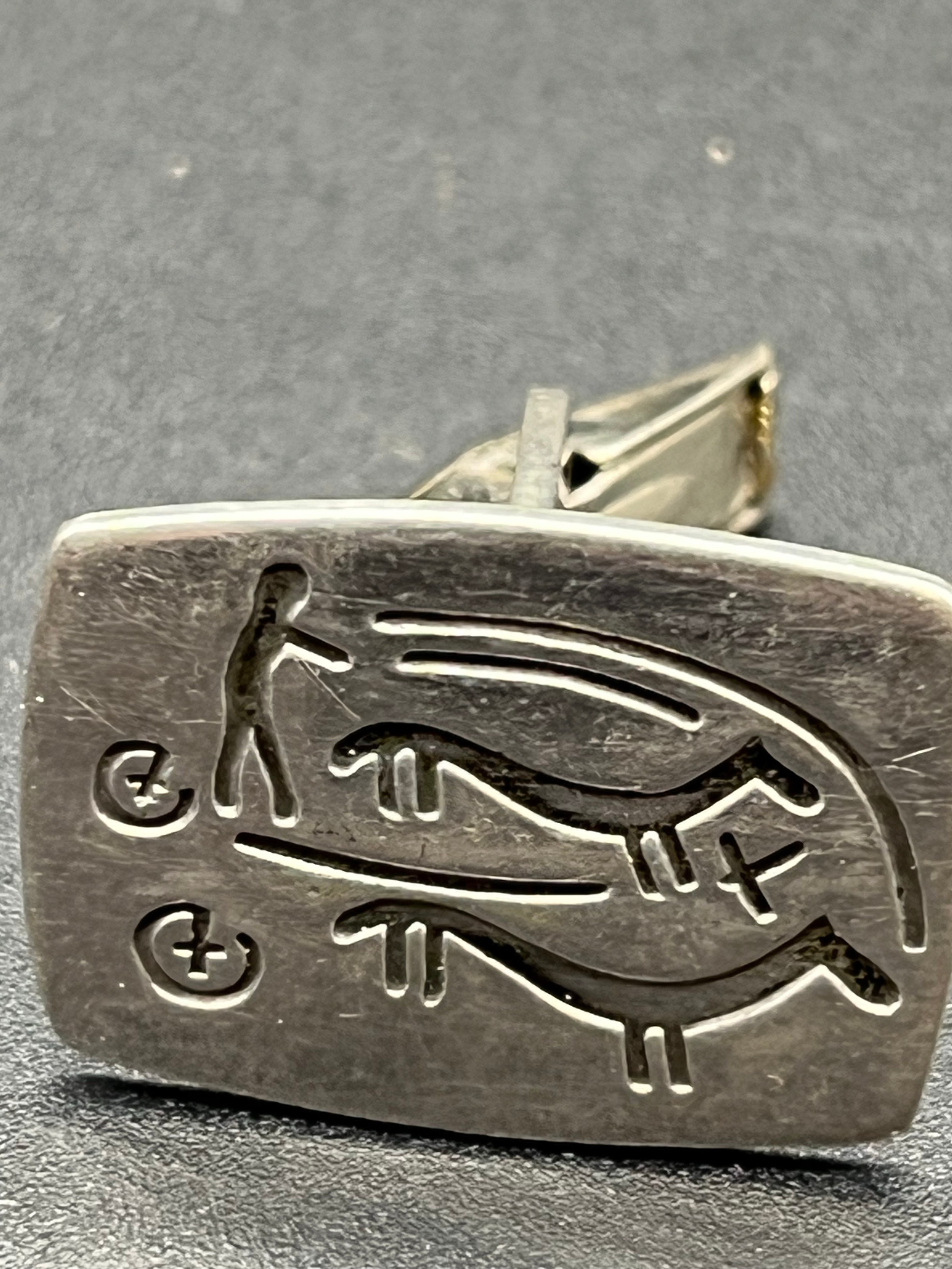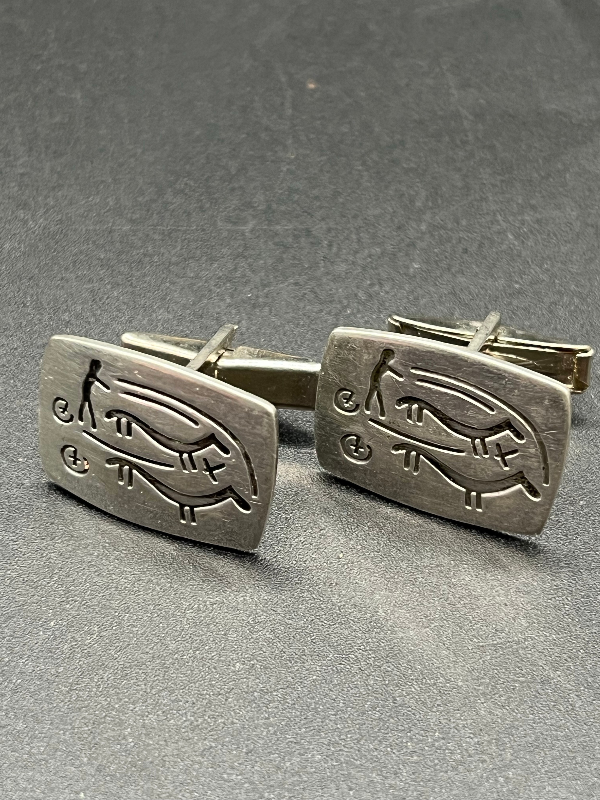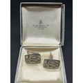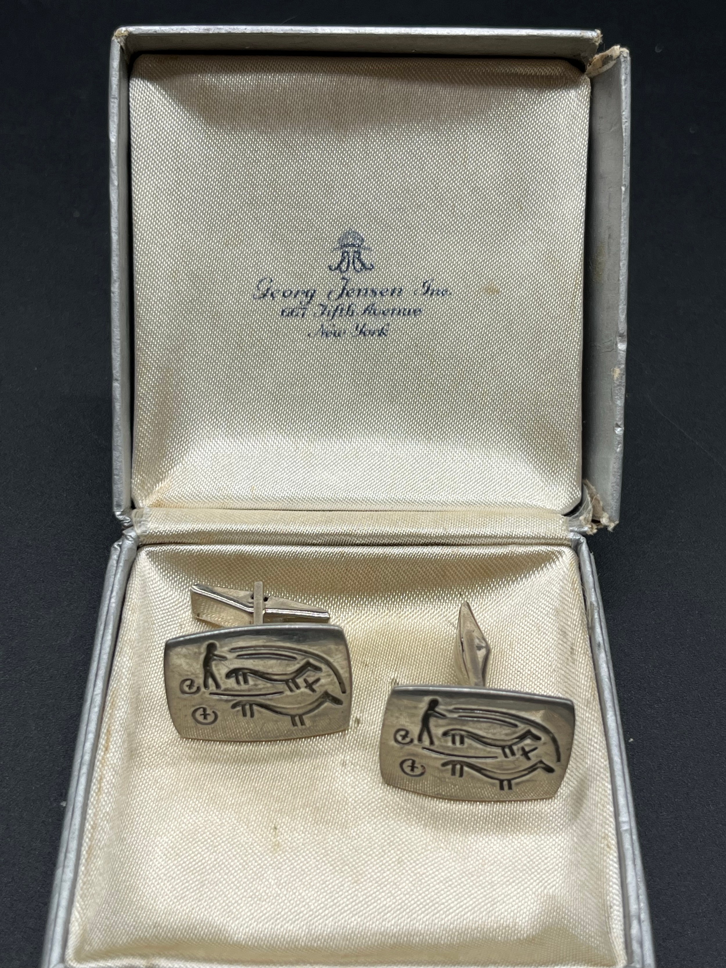 Pair of Jorgen Jensen modernist cufflinks in vintage Georg Jensen box. Fully stamped to the back.