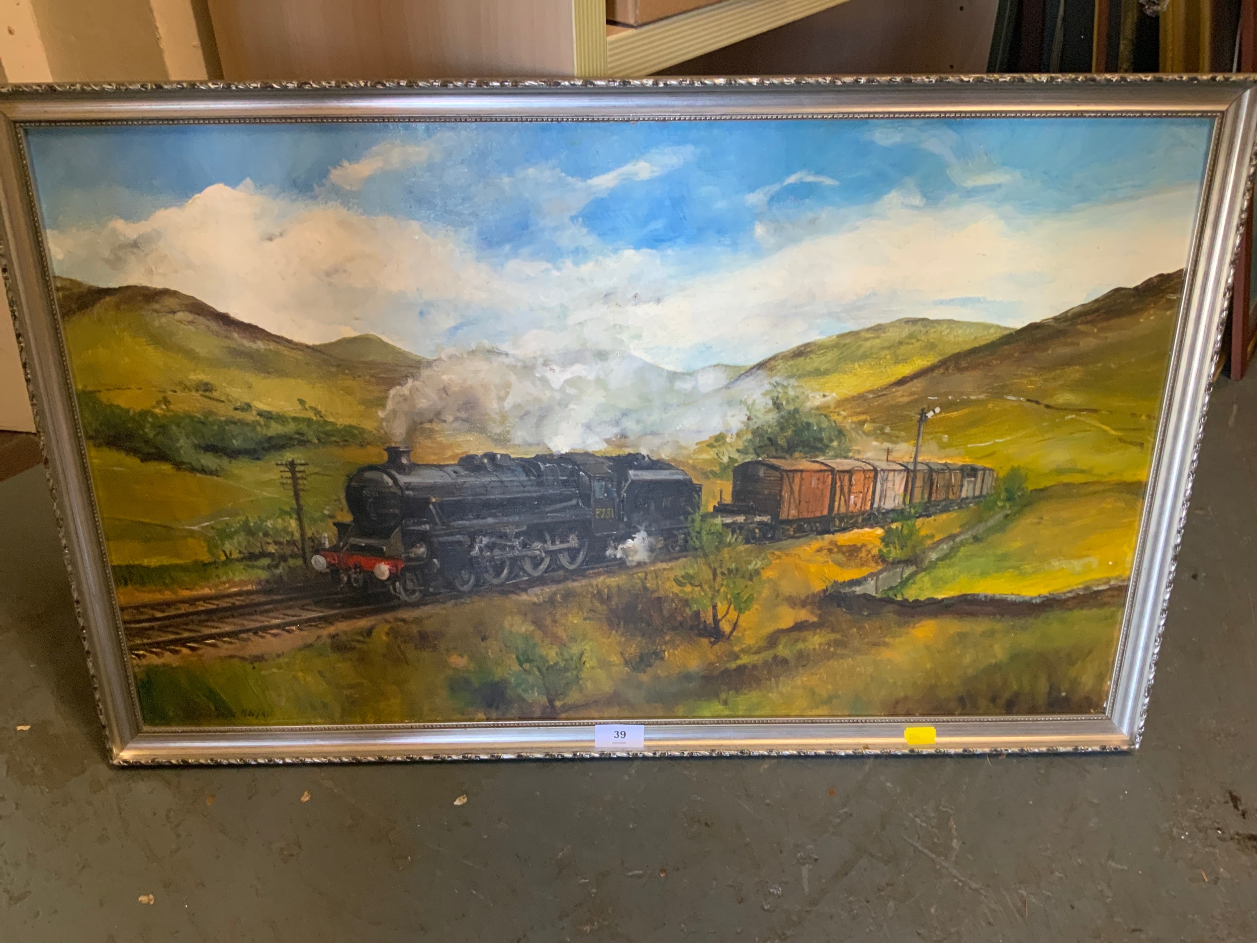David Smith - An oil on board depicting a steam locomotive 45 x 75 cm