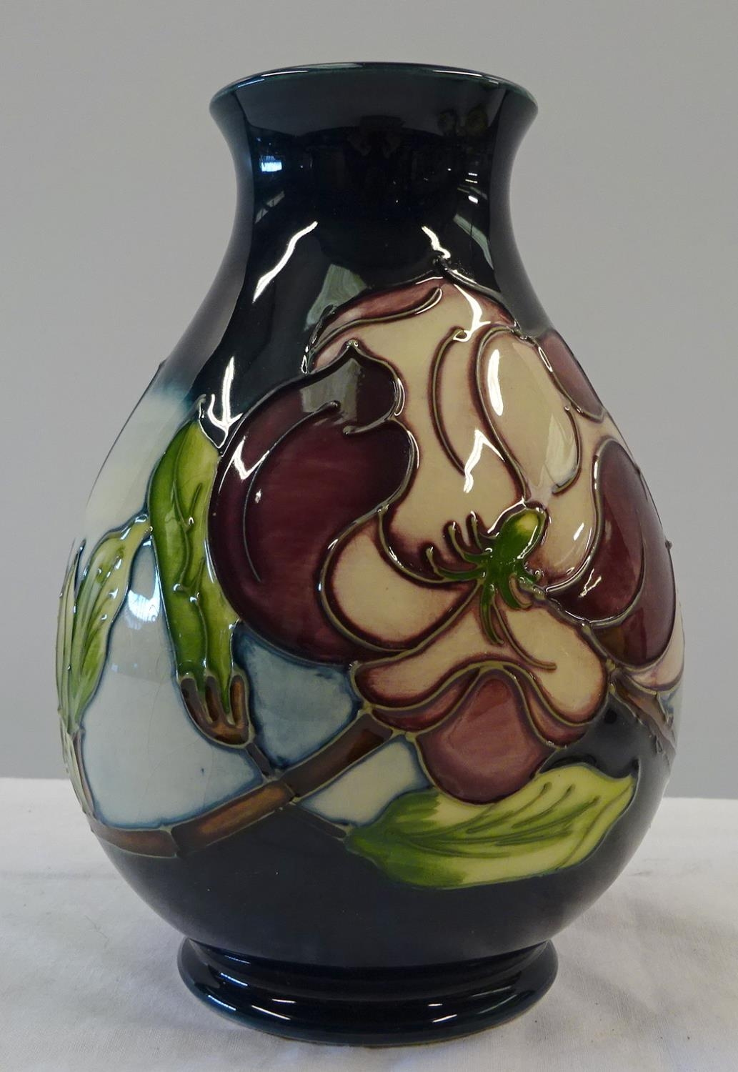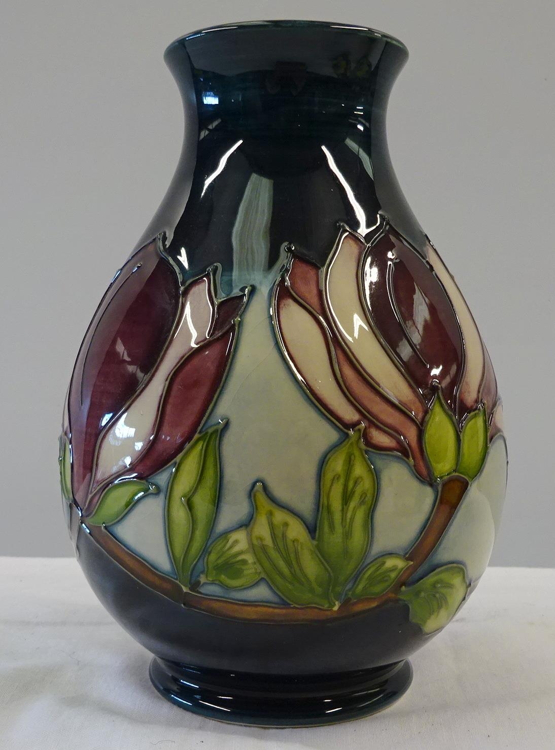 A Moorcroft blue Magnolia vase 19cm tall.