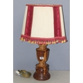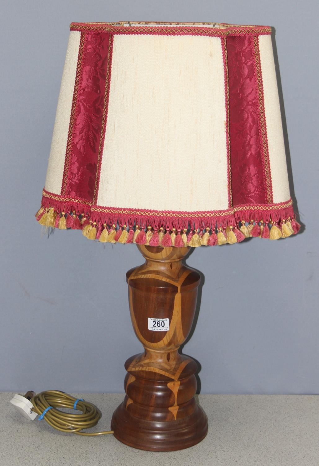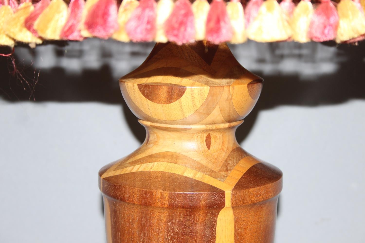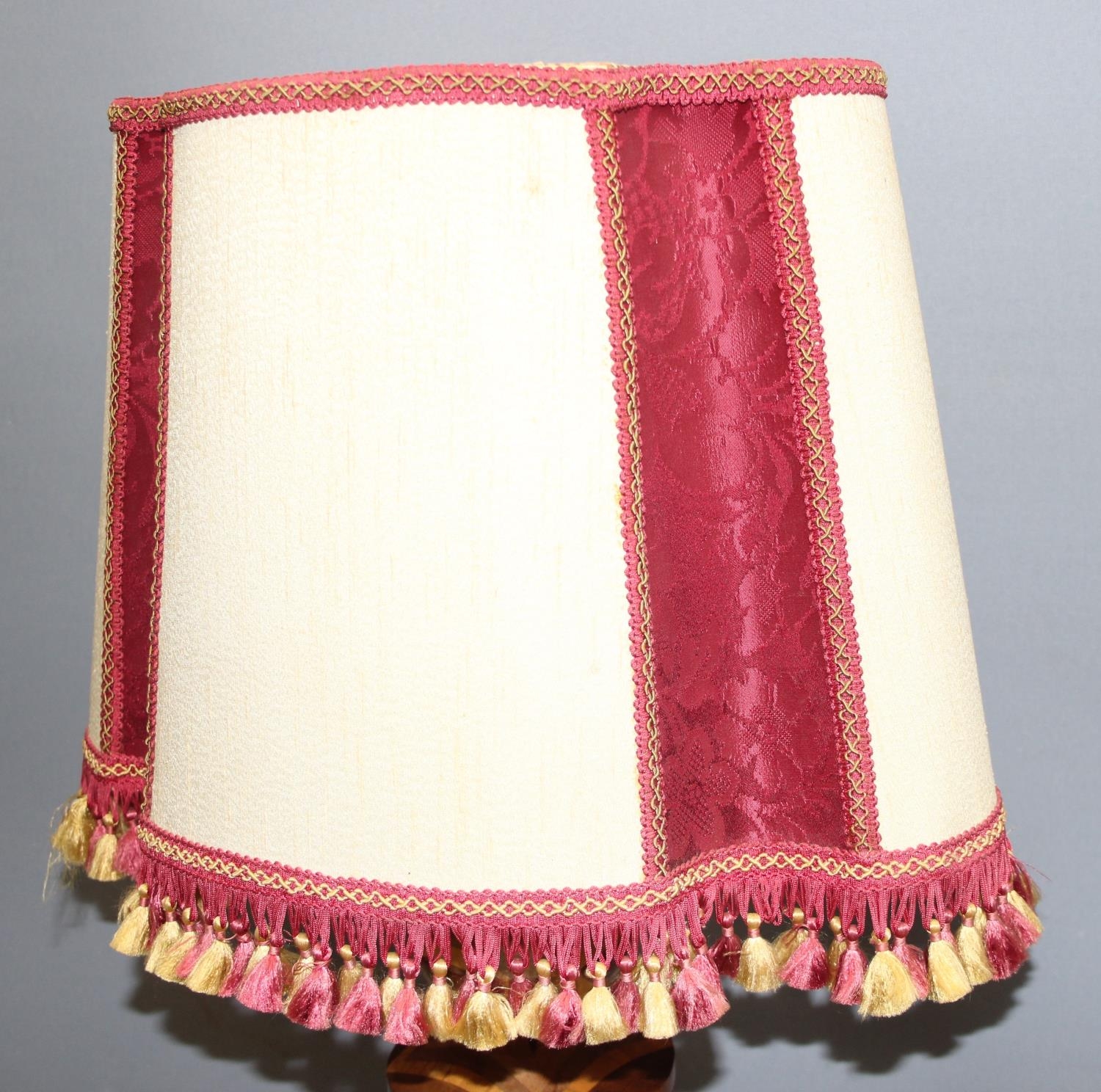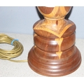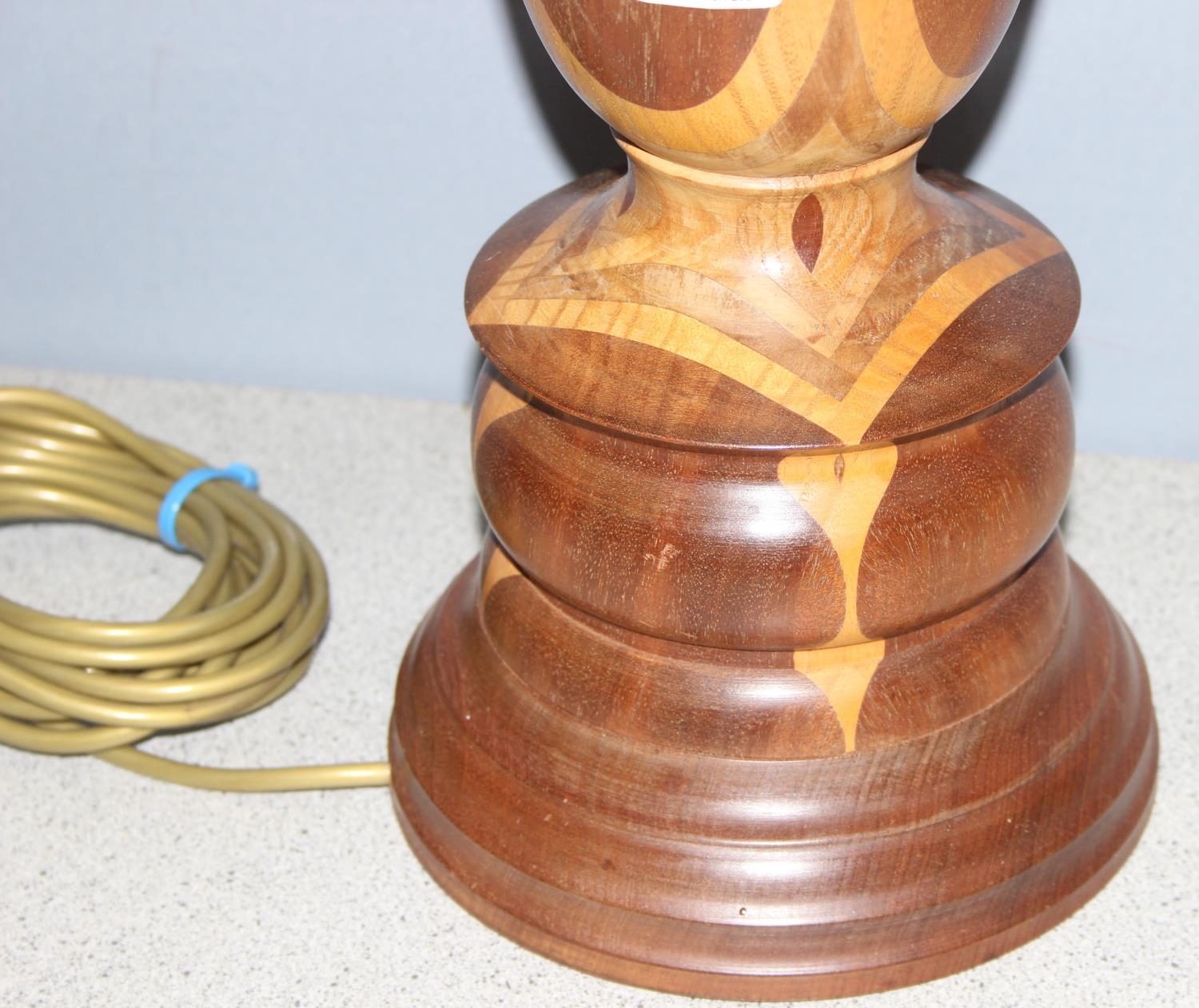 Vintage hand made turned wooden lamp base with shade, base approx 76cm with shade