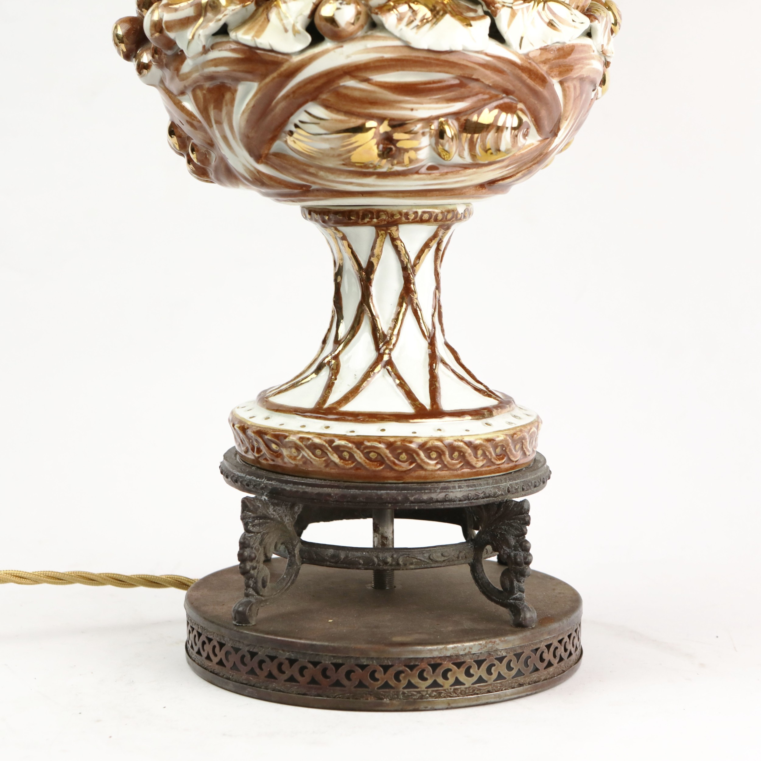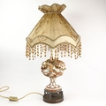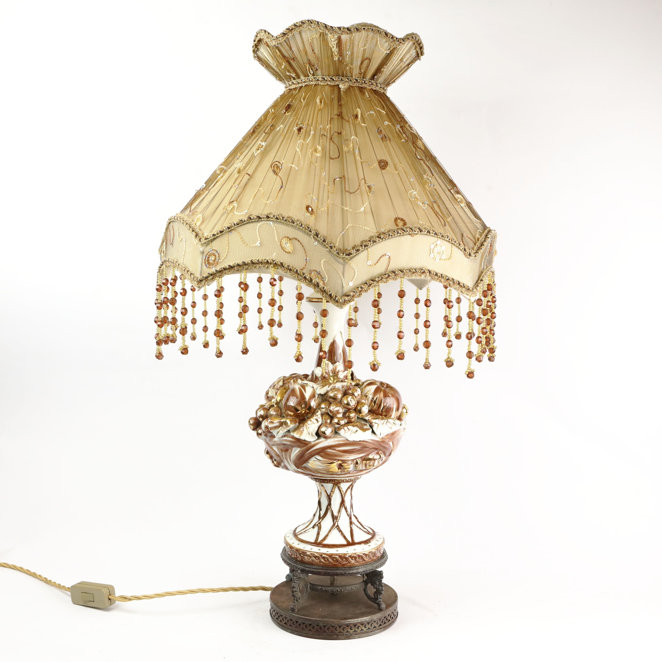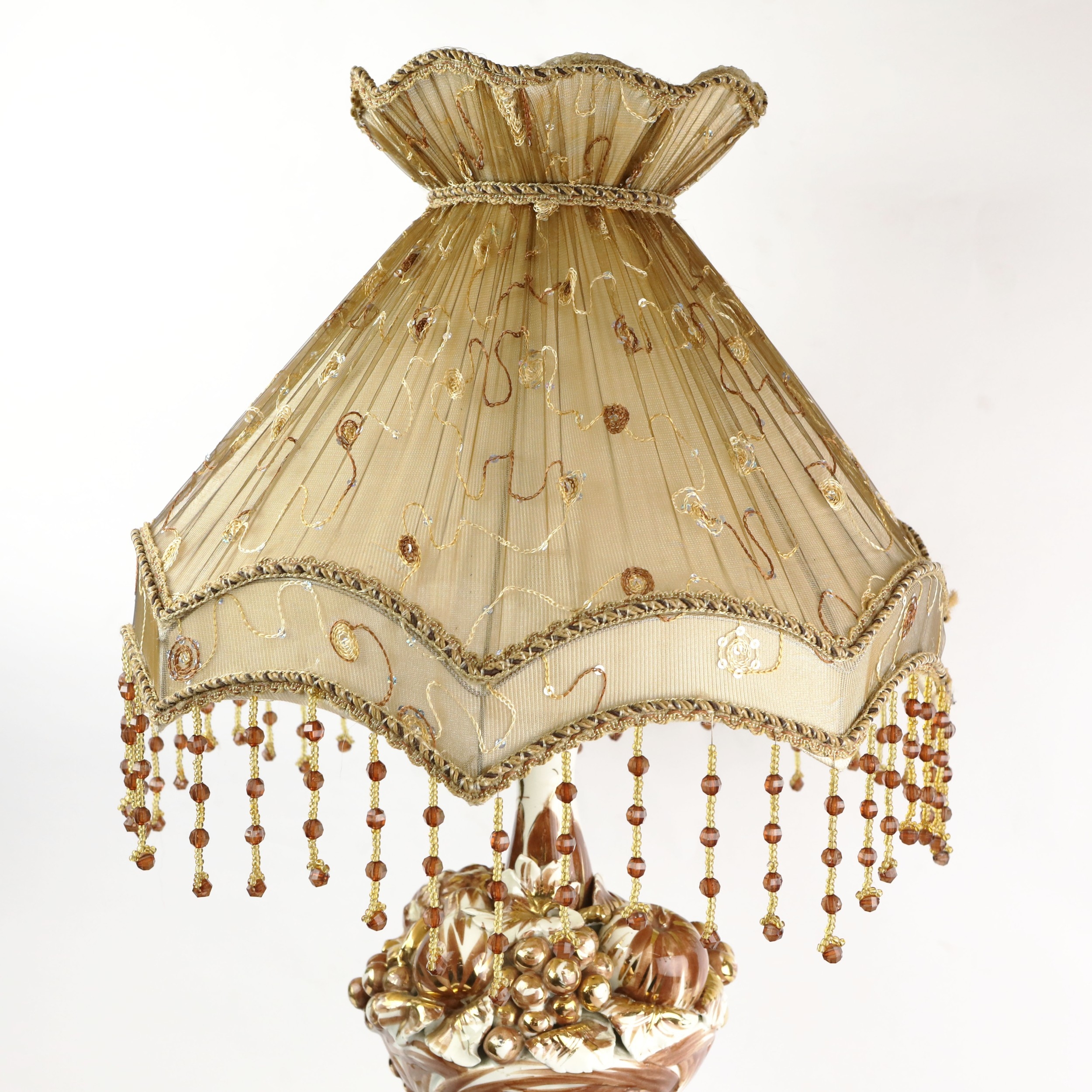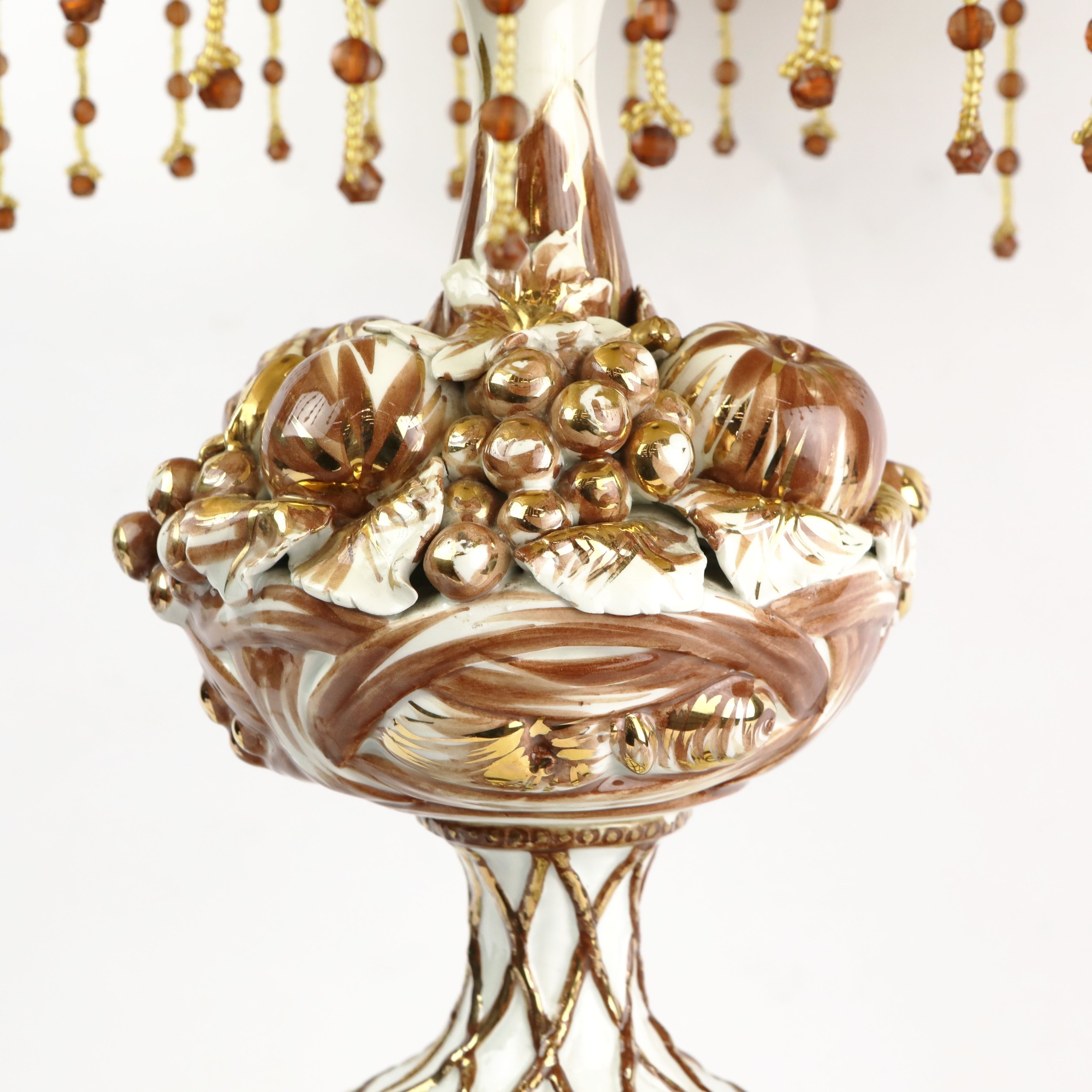 ITALIAN CERAMIC TABLE LAMPS, A PAIR. with beaded shades, 80cm H each approx. (2).