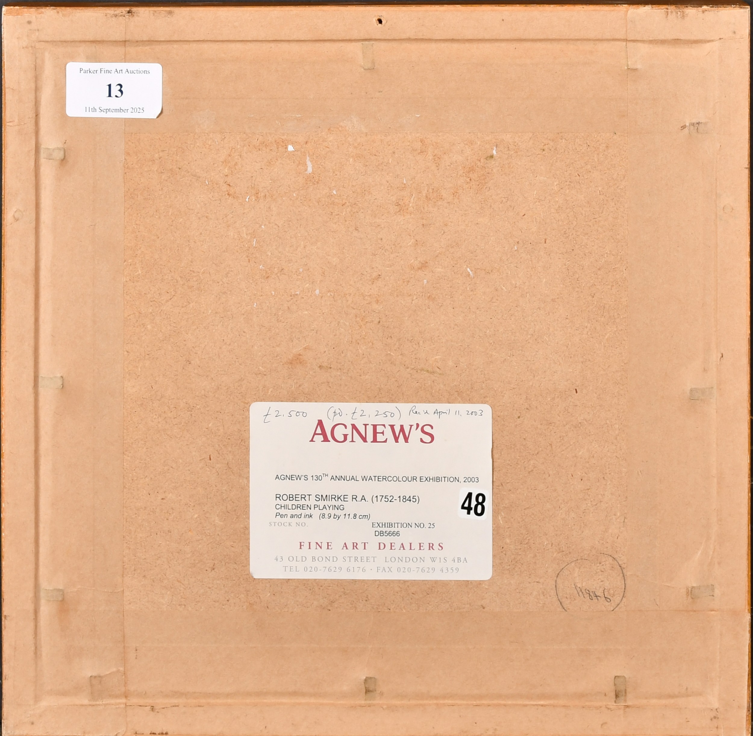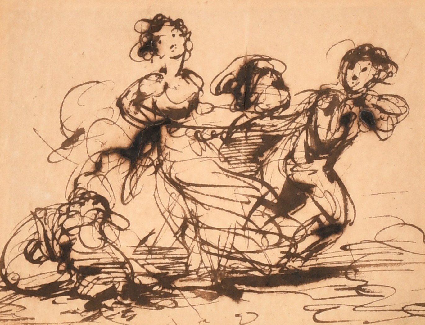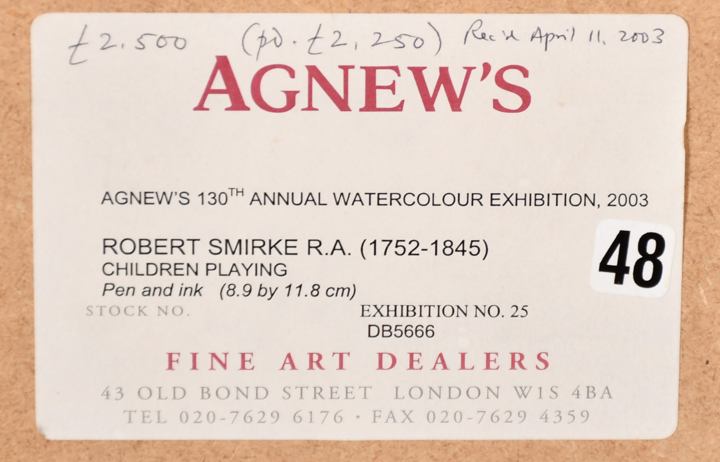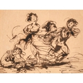Robert Smirke (1752-1845) British. 'Children Playing', Ink, Inscribed on a label verso, 3.5" x 4.6" (8.9 x 11.8cm). Provenance: Agnew's, London, '130th Annual Watercolour Exhibition', 20023, No.25