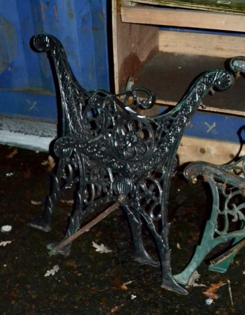 Pair Of Black Cast Bench Ends