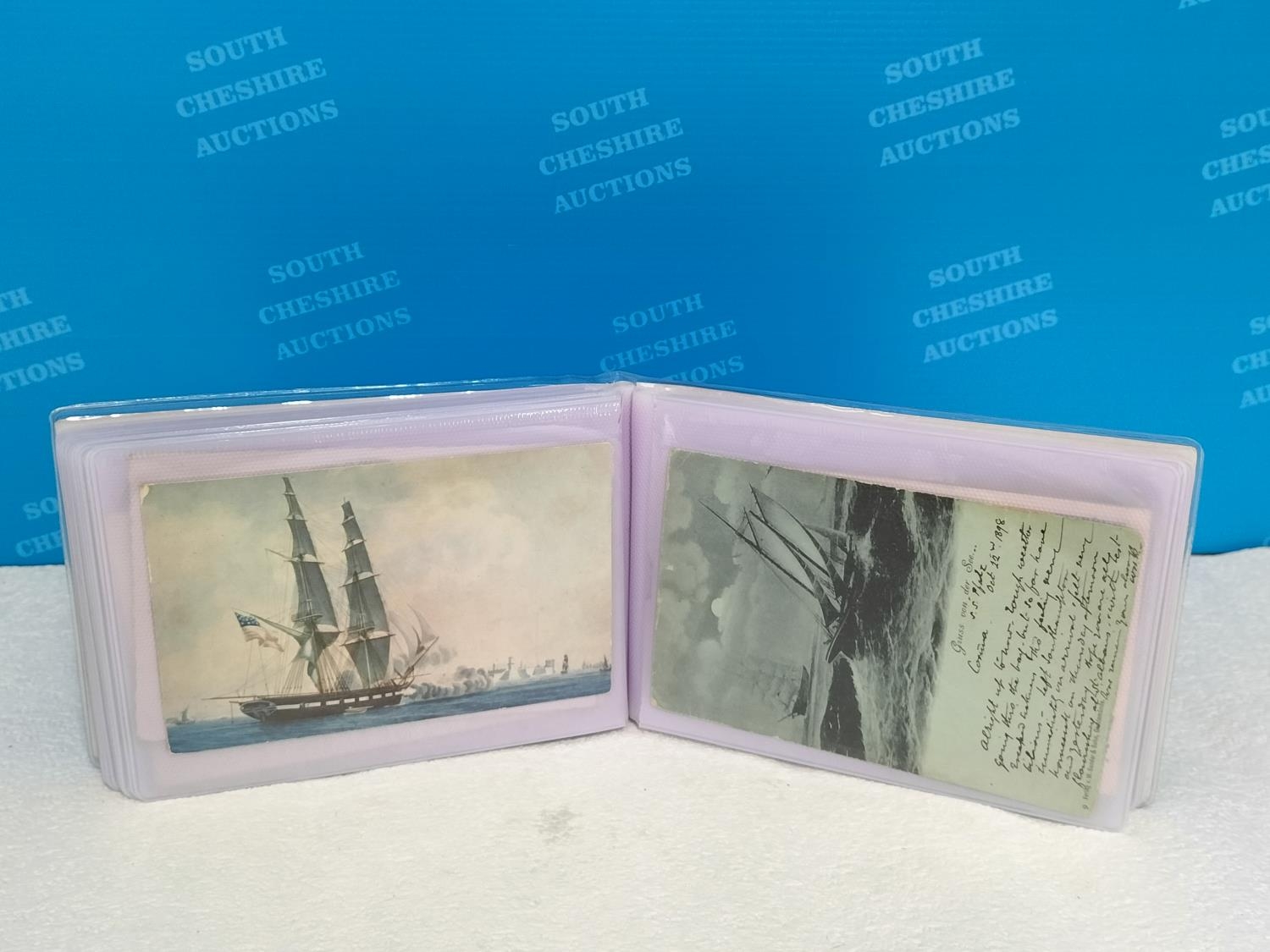 Album containing a Collection of 36 Vintage Sailing Ship Postcards, Some Used.